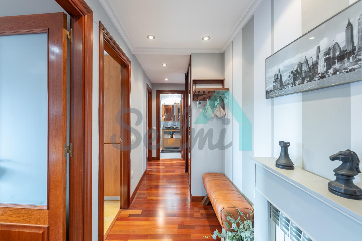Se vende amueblada y dispone de suelos de parqué y gres, ventanas de doble acristalamiento, armarios empotrados, calefacción central con contador individual, puerta de seguridad, videoportero, etc.