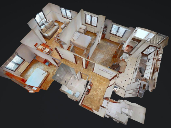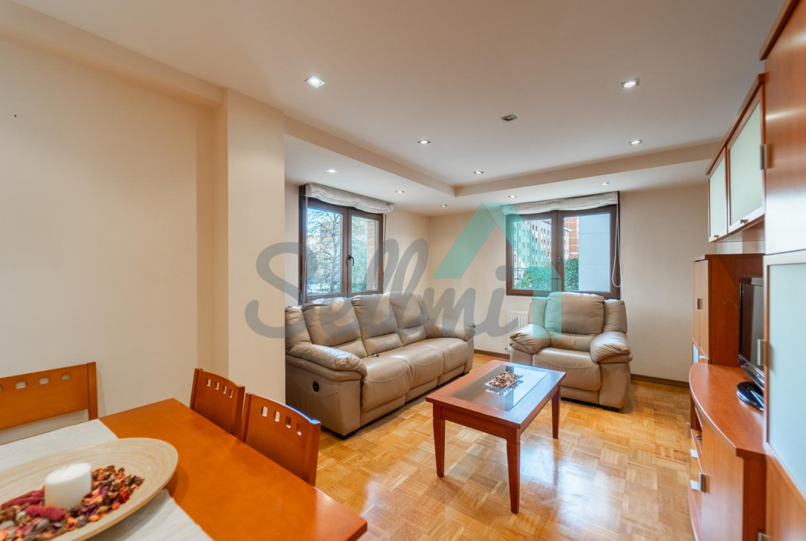 Se vende parcialmente amueblada y dispone de suelos de parqué y gres, ventanas de PVC con doble acristalamiento, calefacción individual de gas ciudad, puerta de seguridad, etc. Es exterior (en esquina) y muy luminoso, con orientación este y norte (vistas al Parque Electra).
