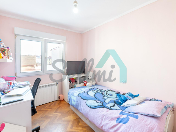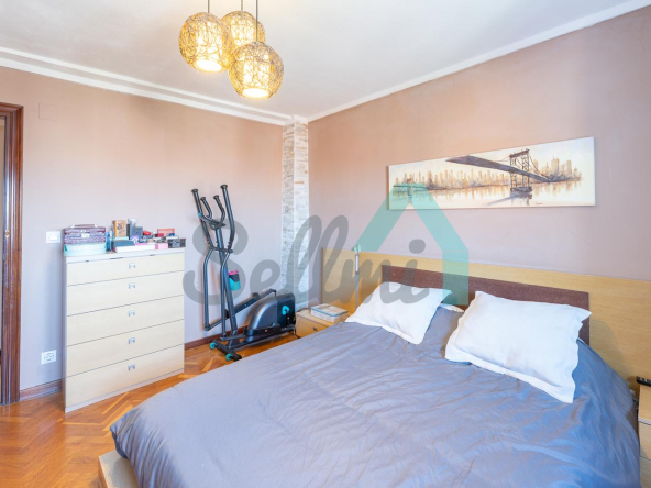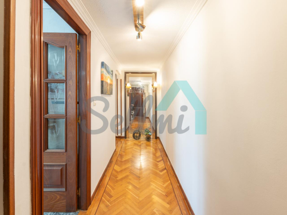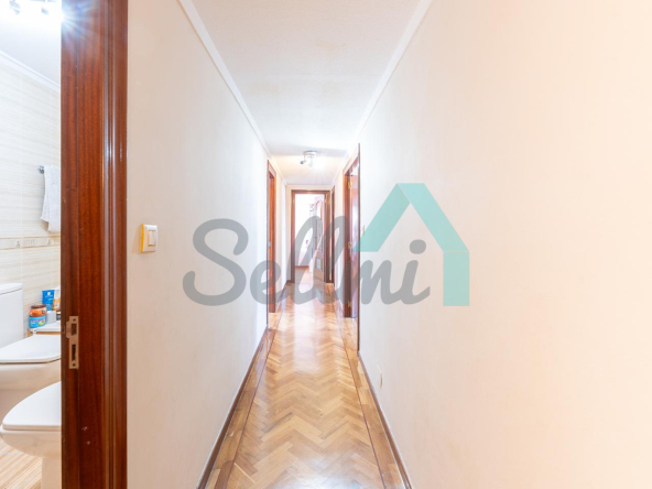 Dispone de suelos de parquet y gres, ventanas de doble acristalamiento, calefacción individual eléctrica, armarios empotrados, puerta de seguridad, etc. Es exterior y muy luminoso gracias a su altura, con orientación norte y sur.