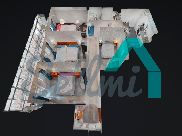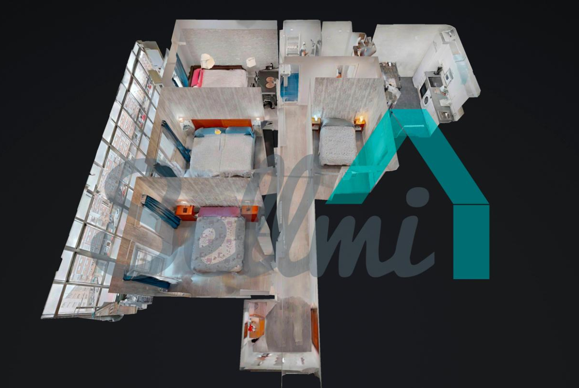 3 habitaciones y 2 baños.
