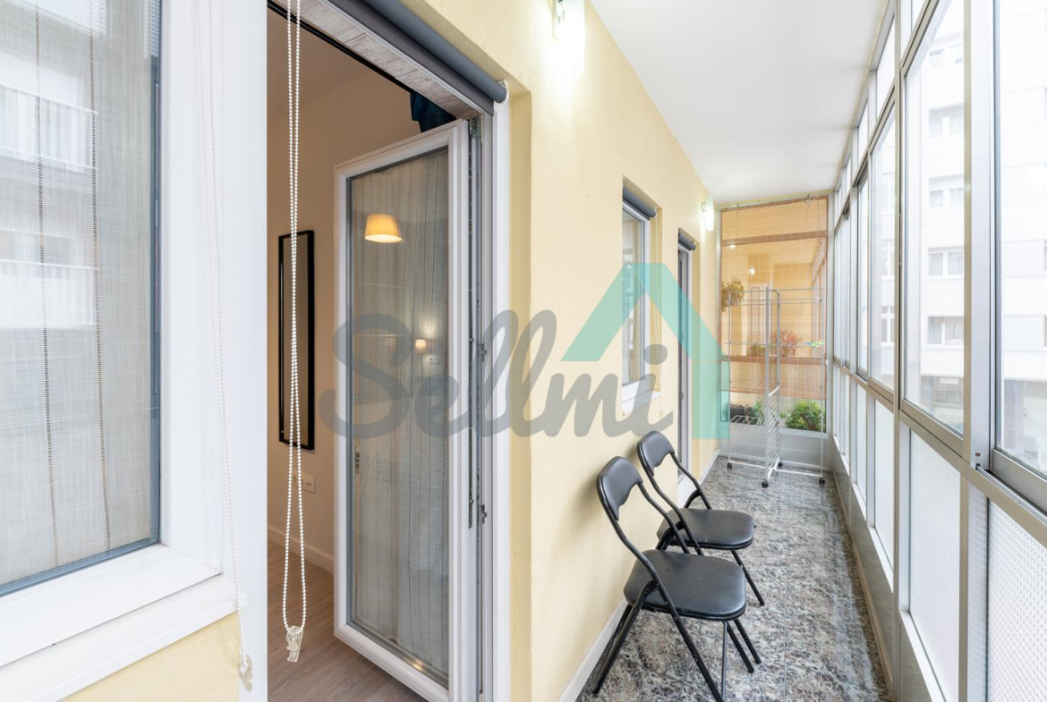 La vivienda, que ha sido totalmente reformada, tiene una superficie construida de 95 m2 distribuidos en hall de entrada, salón, cocina amueblada y equipada, tres habitaciones, dos baños completos (los dos con ducha) y una terraza acristalada con acceso desde el salón y desde dos de las habitaciones. Trastero incluido en el precio.