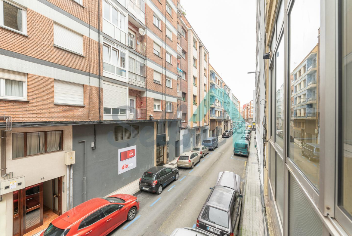 Piso en venta situado en la calle Adaro, en pleno centro de Gijón. Se ubica en la primera planta de un edificio construido en 1957, sin ascensor. Es exterior y muy luminoso, con orientación oeste.