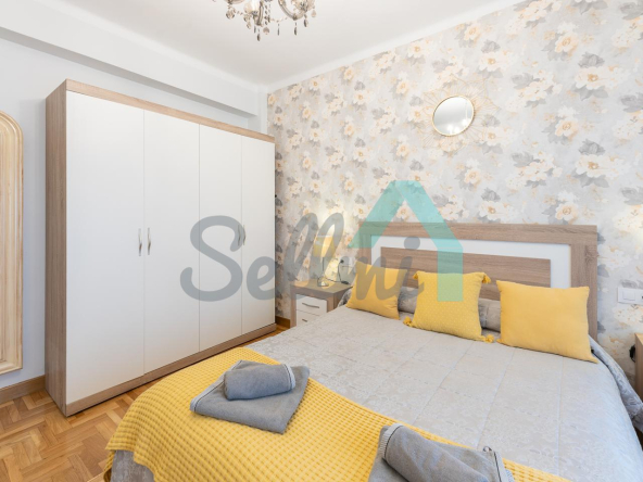 Se vende amueblada y dispone de techos altos, suelos de parqué y gres, ventanas de aluminio con doble acristalamiento, calefacción individual eléctrica, agua caliente por termo eléctrico, puerta de seguridad, etc. Es exterior, con orientación este y oeste.