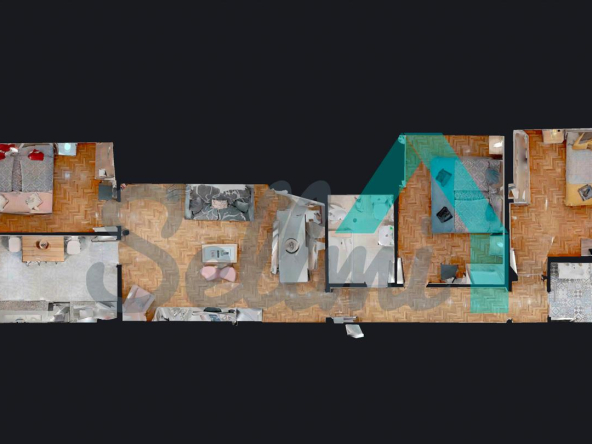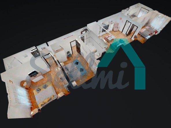 La vivienda, que se encuentra en perfecto estado, tiene una superficie construida de 97 m2 distribuidos en salón comedor, cocina amueblada y equipada, tres habitaciones y dos baños completos (los dos con ventana). Trastero (pequeña carbonara) incluido en el precio.