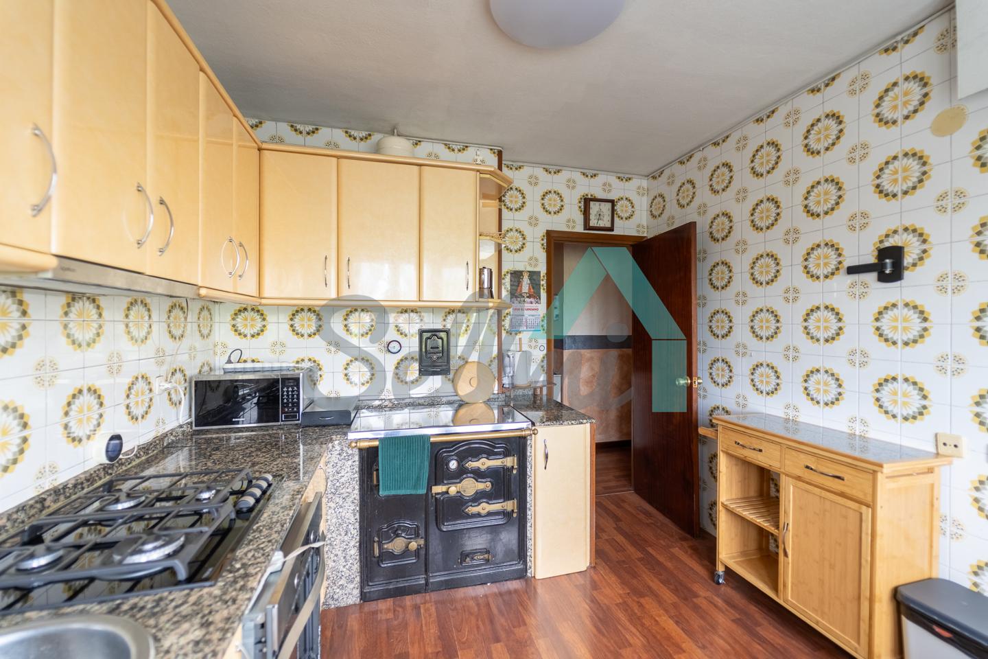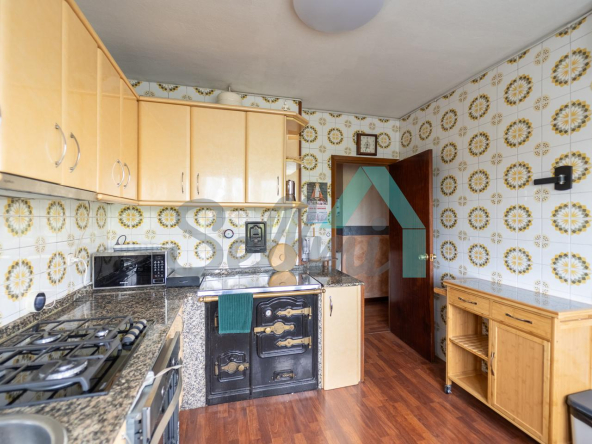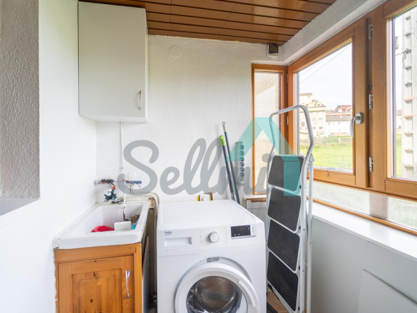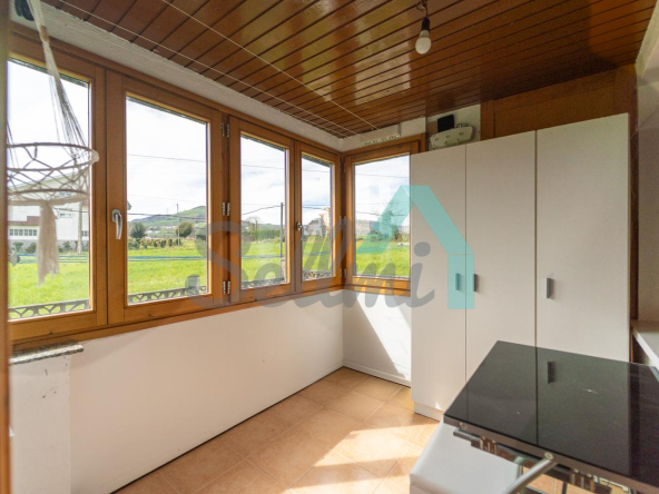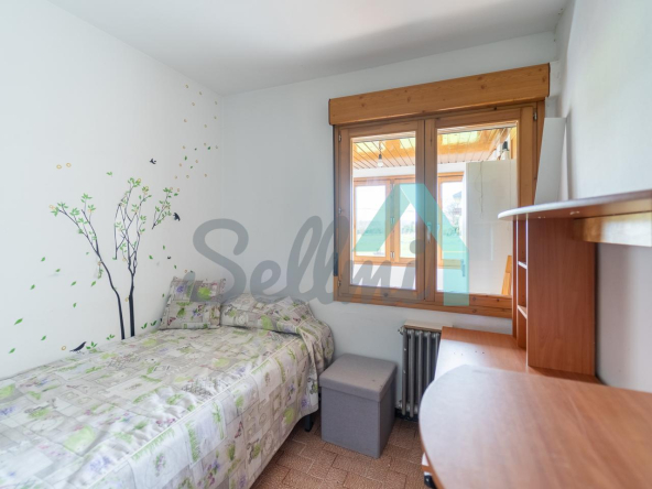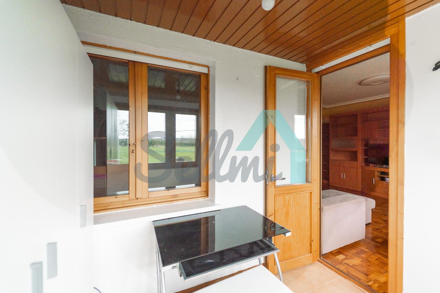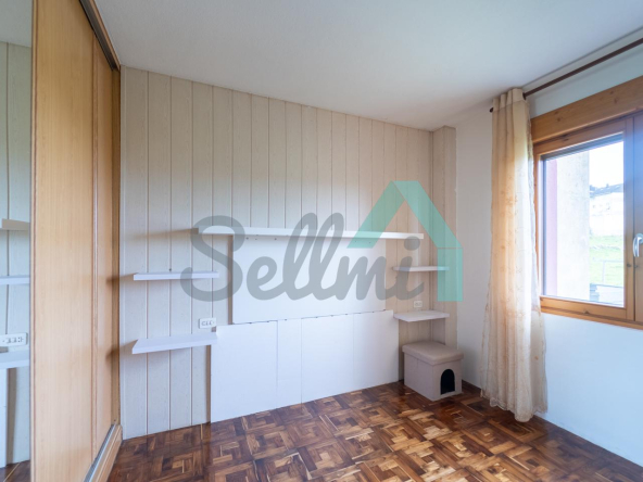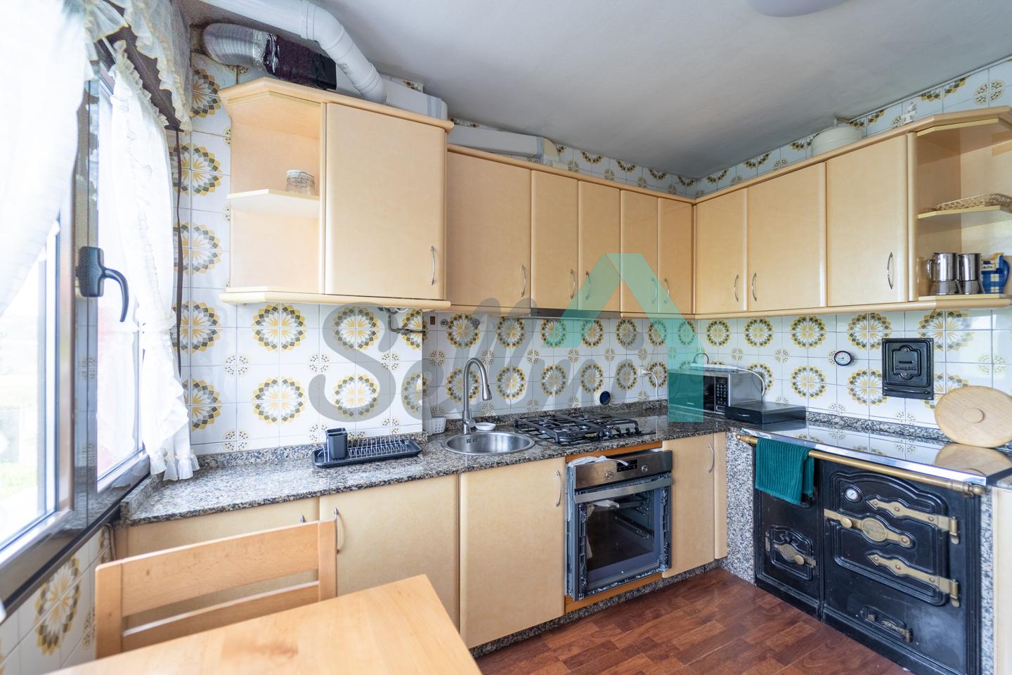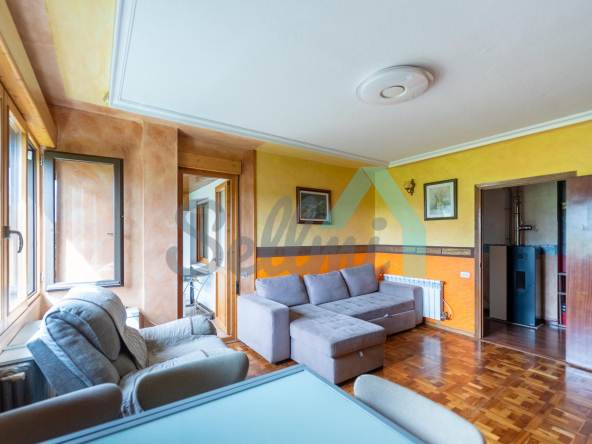 Dispone de suelos de parquet, tarima y gres, armarios empotrados, ventanas de madera con doble acristalamiento, calefacción individual (cocina de leña calefactora, caldera de pellets y un par de acumuladores eléctricos), puerta de seguridad, etc. Es totalmente exterior y muy luminosa.