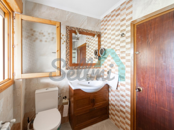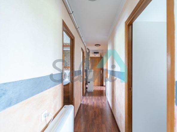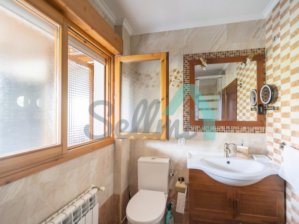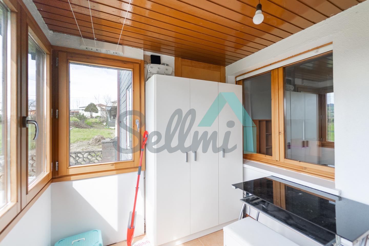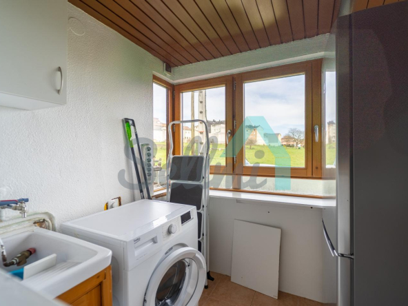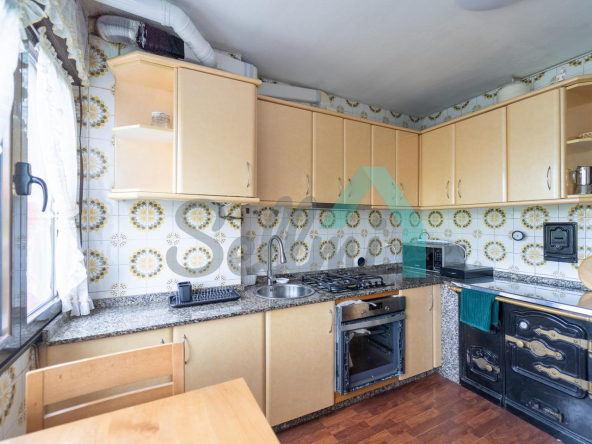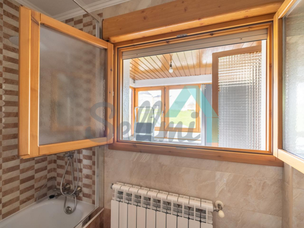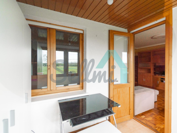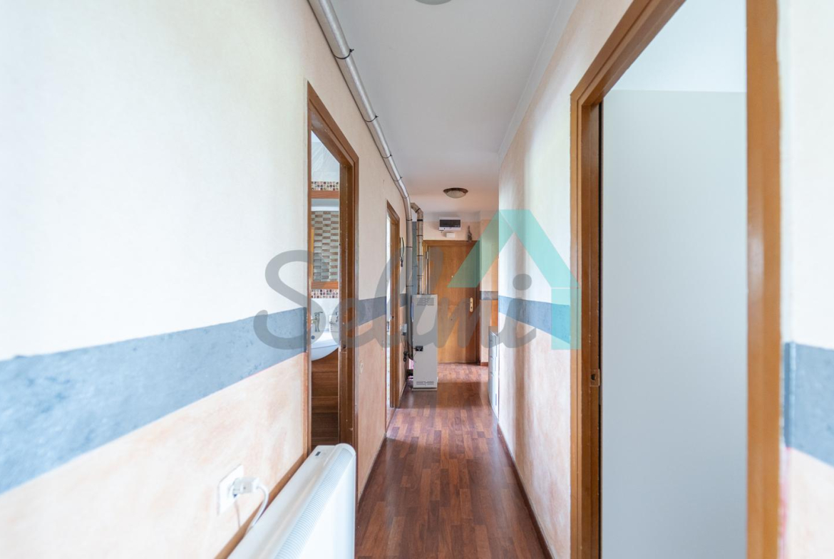 Dispone de suelos de parquet, tarima y gres, armarios empotrados, ventanas de madera con doble acristalamiento, calefacción individual (cocina de leña calefactora, caldera de pellets y un par de acumuladores eléctricos), puerta de seguridad, etc. Es totalmente exterior y muy luminosa.