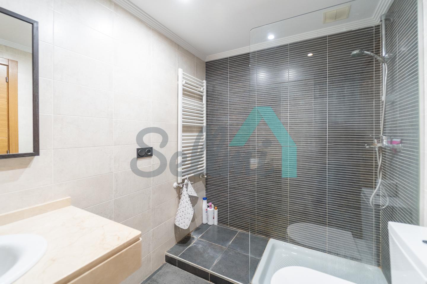 Dispone de suelos de tarima y gres, ventanas de doble acristalamiento, calefacción central con contador individual de gas ciudad, persianas eléctricas, alarma, sensor de agua y de fuego, preinstalación de aspiración central, domótica, armarios empotrados, puerta de seguridad, videoportero, etc.