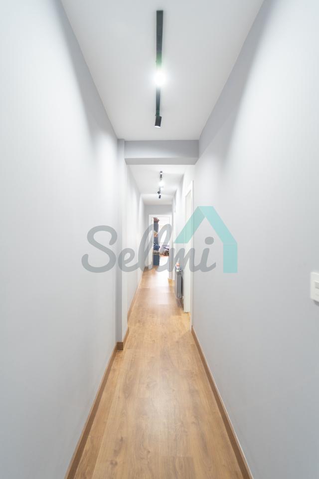 La vivienda, que ha sido totalmente reformada, tiene una superficie construida de 100 m² distribuidos en hall de entrada, salón comedor, cocina amueblada, tres habitaciones y dos baños. En la distribución actual, una de las habitaciones se ha unido al dormitorio principal y unos de los baños se utiliza como cuarto de lavandería. Trastero incluido en el precio.