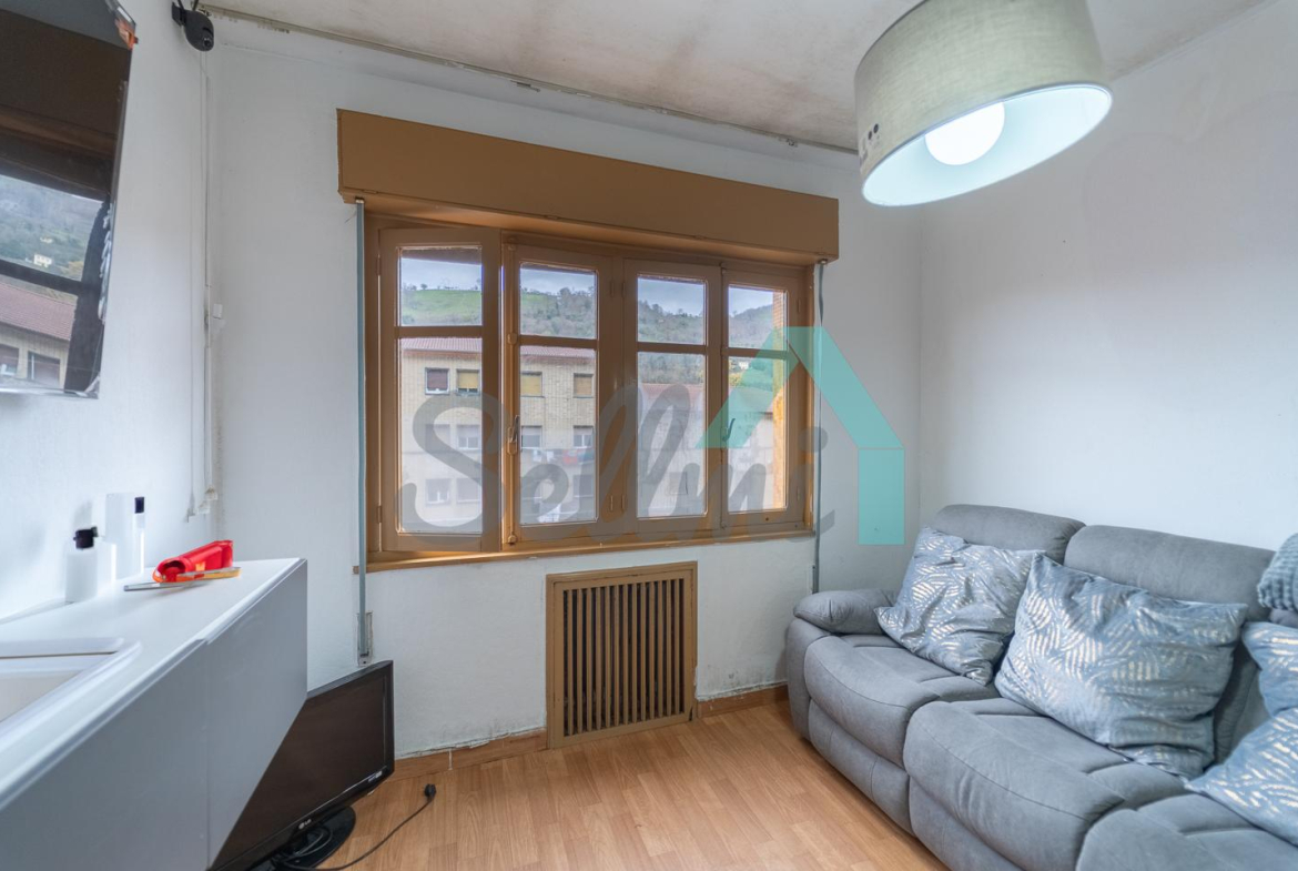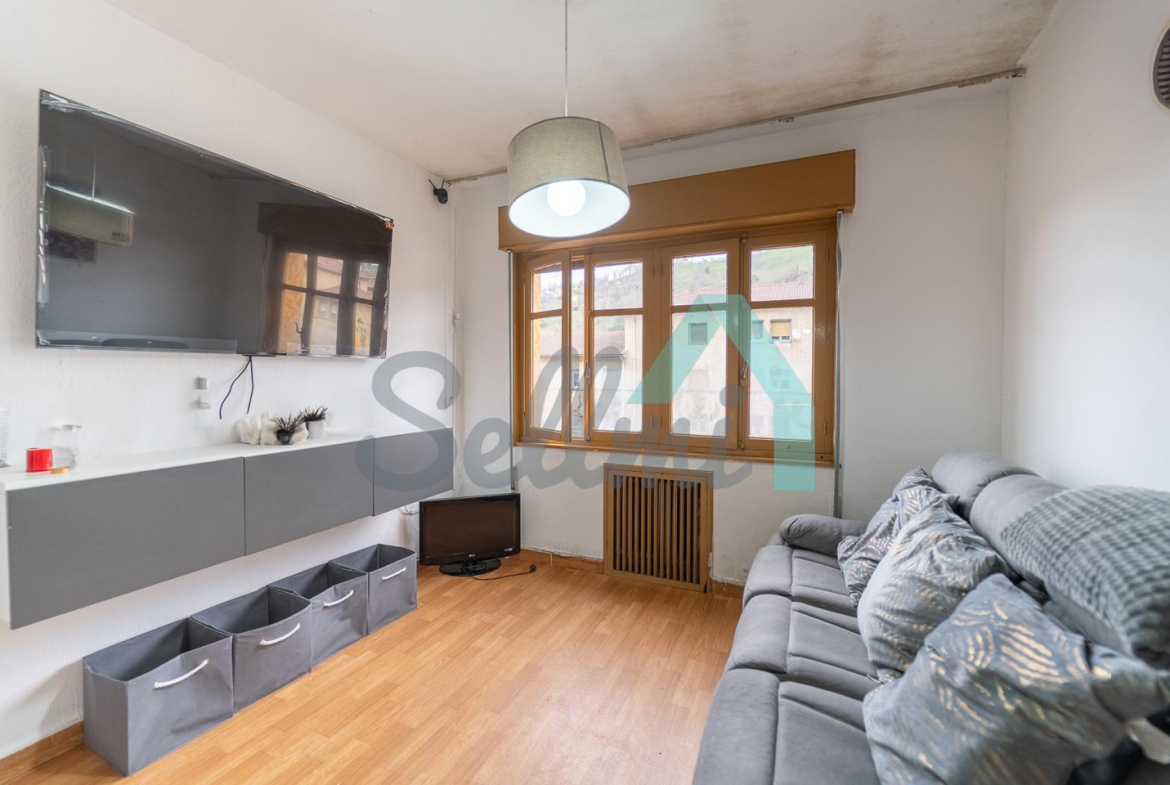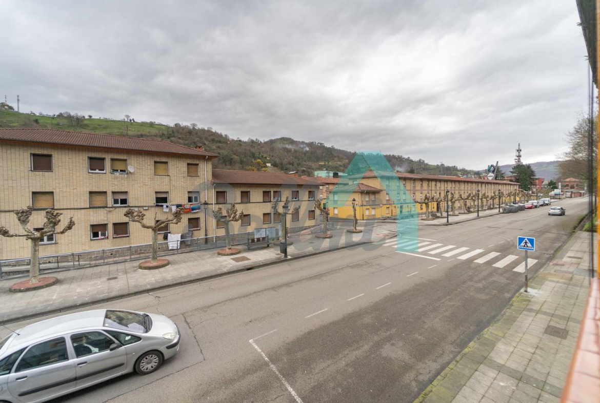 Piso en venta situado en Ciaño, Langreo. Ocupa toda la primera planta de un edificio construido en 1966, sin ascensor. Es exterior y muy luminoso, con orientación sur y norte.