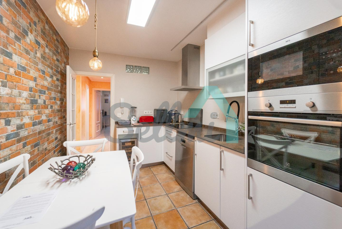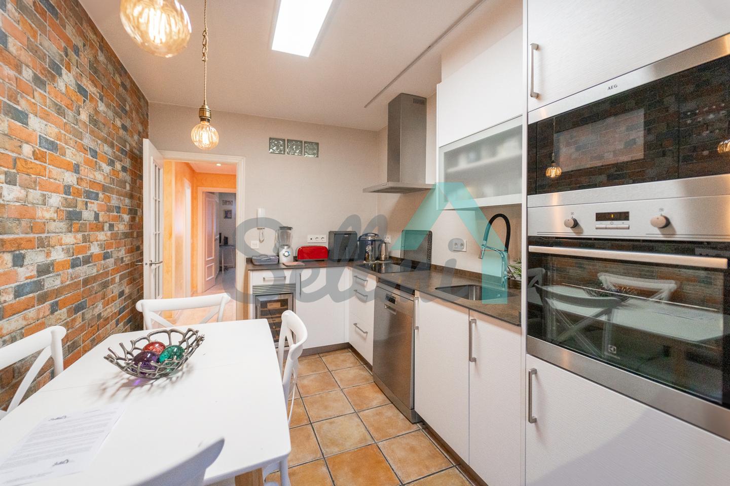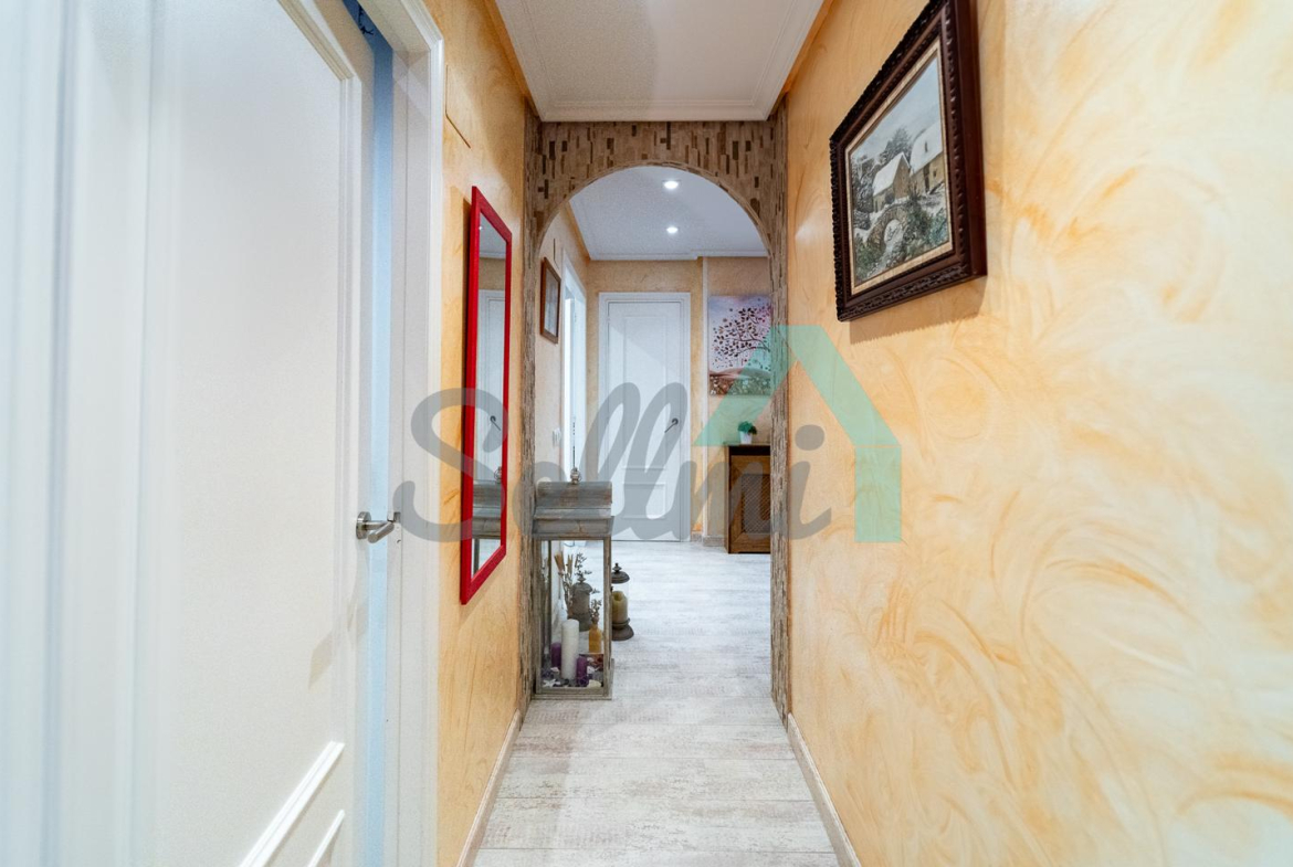 La vivienda, que ha sido totalmente reformada y se encuentra en perfecto estado, tiene una superficie construida de 108 m² distribuidos en hall de entrada, salón comedor, dos terrazas, cocina amueblada y equipada, tres habitaciones y dos baños completos. En el precio de venta se incluye un trastero de 16 m2.
