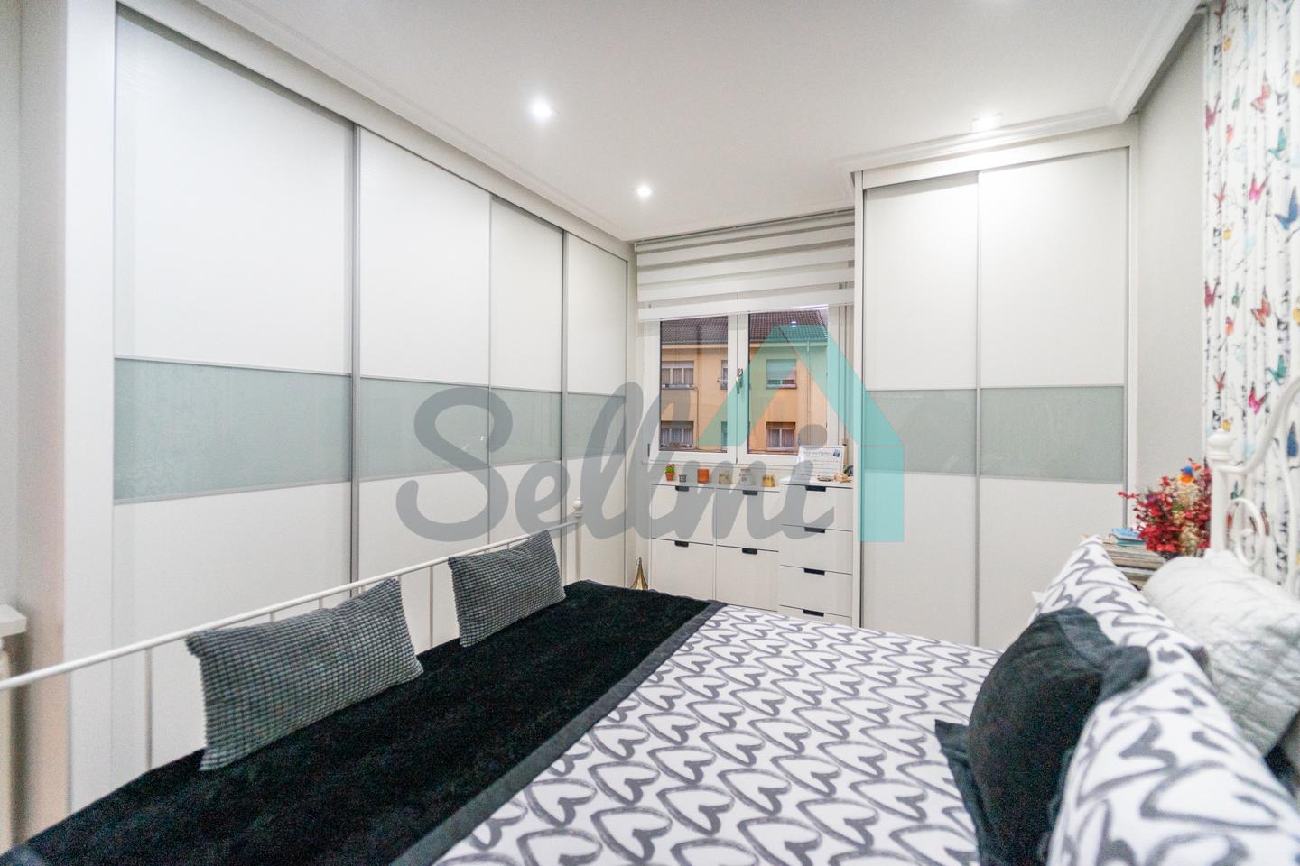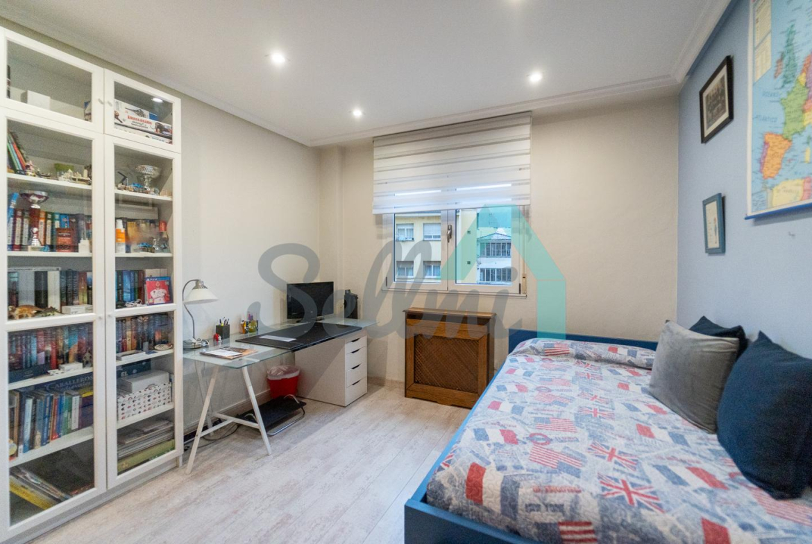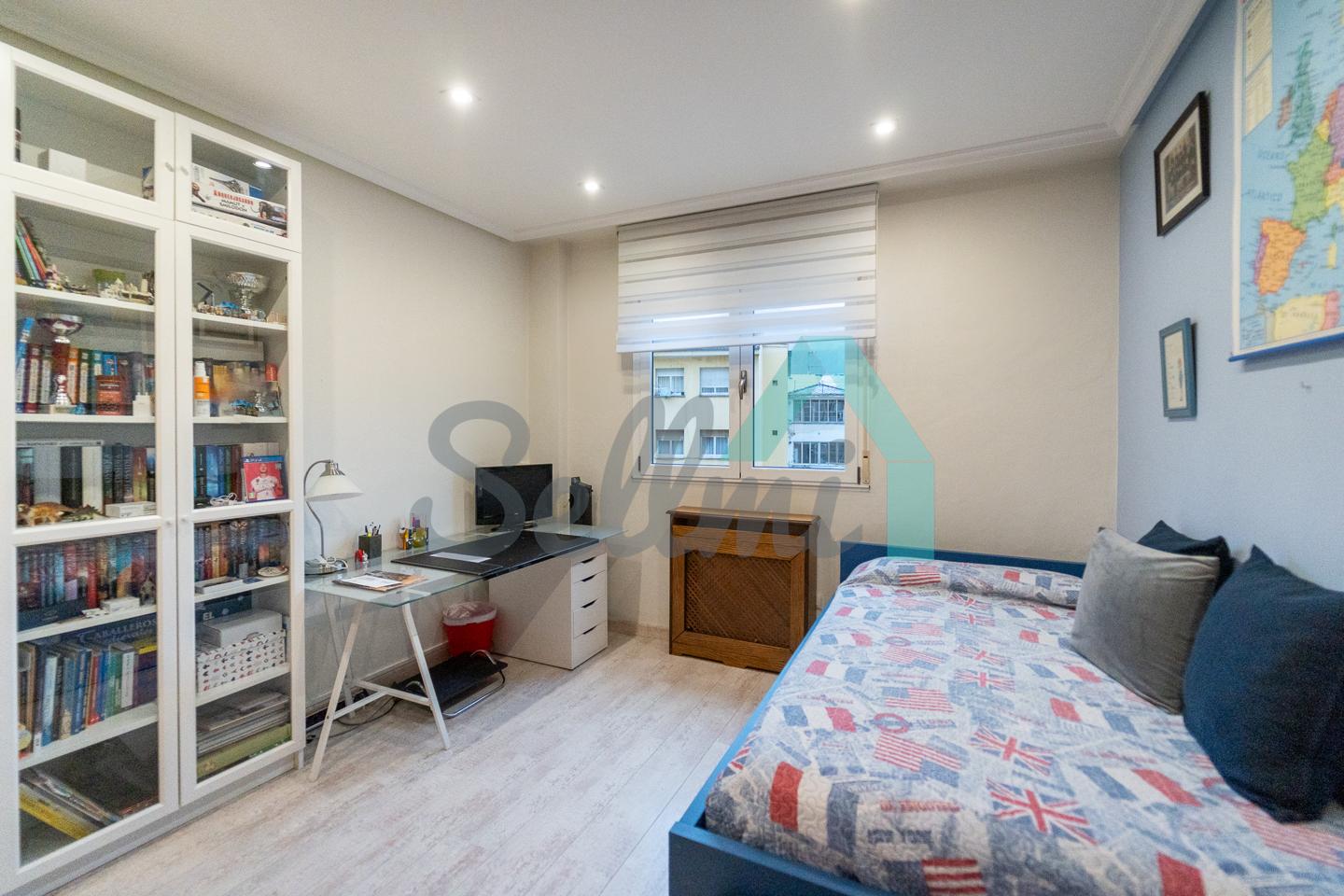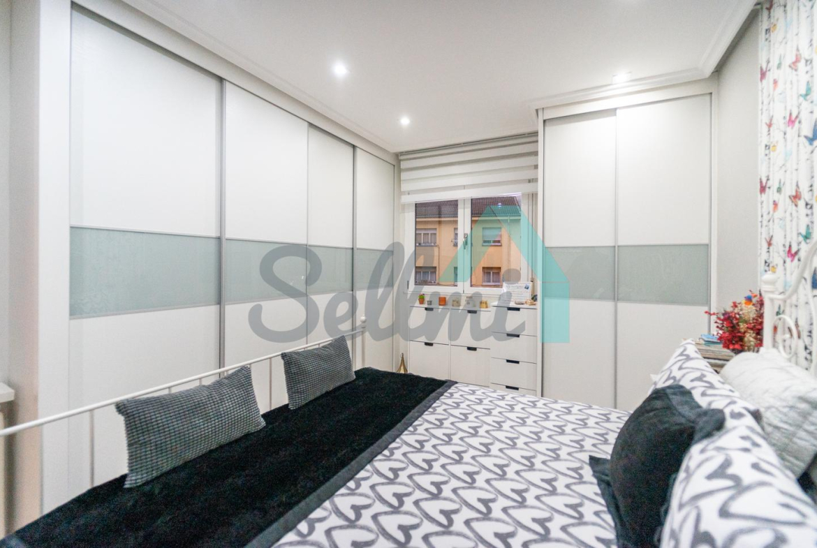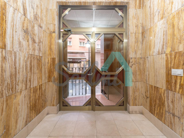 Dispone de suelos de tarima y gres, ventanas de doble acristalamiento, calefacción individual eléctrica, armarios empotrados, puerta de seguridad, etc. Es exterior y muy luminoso, con orientación este (calle) y oeste (patio de manzana).
