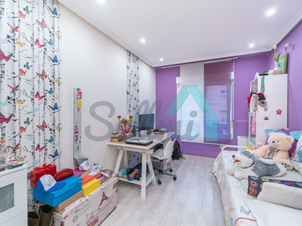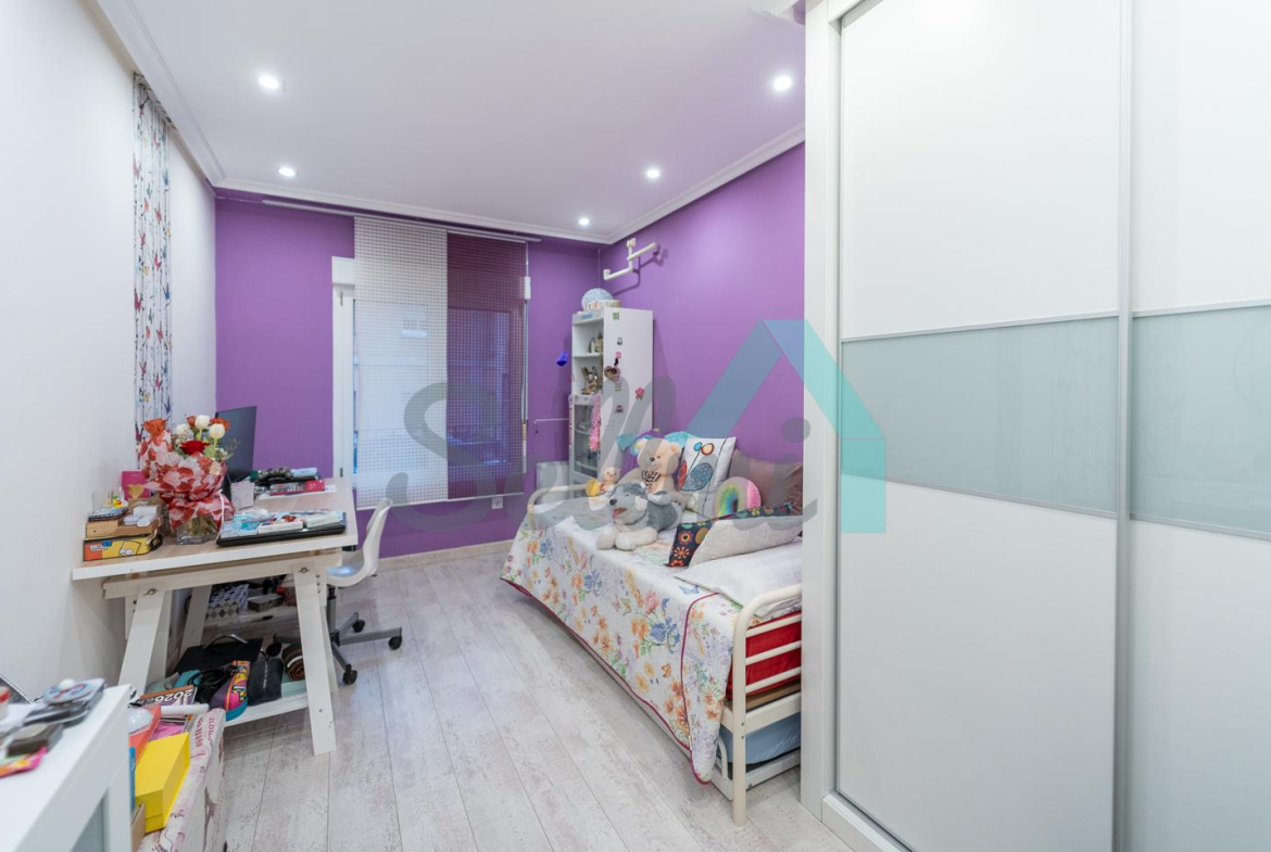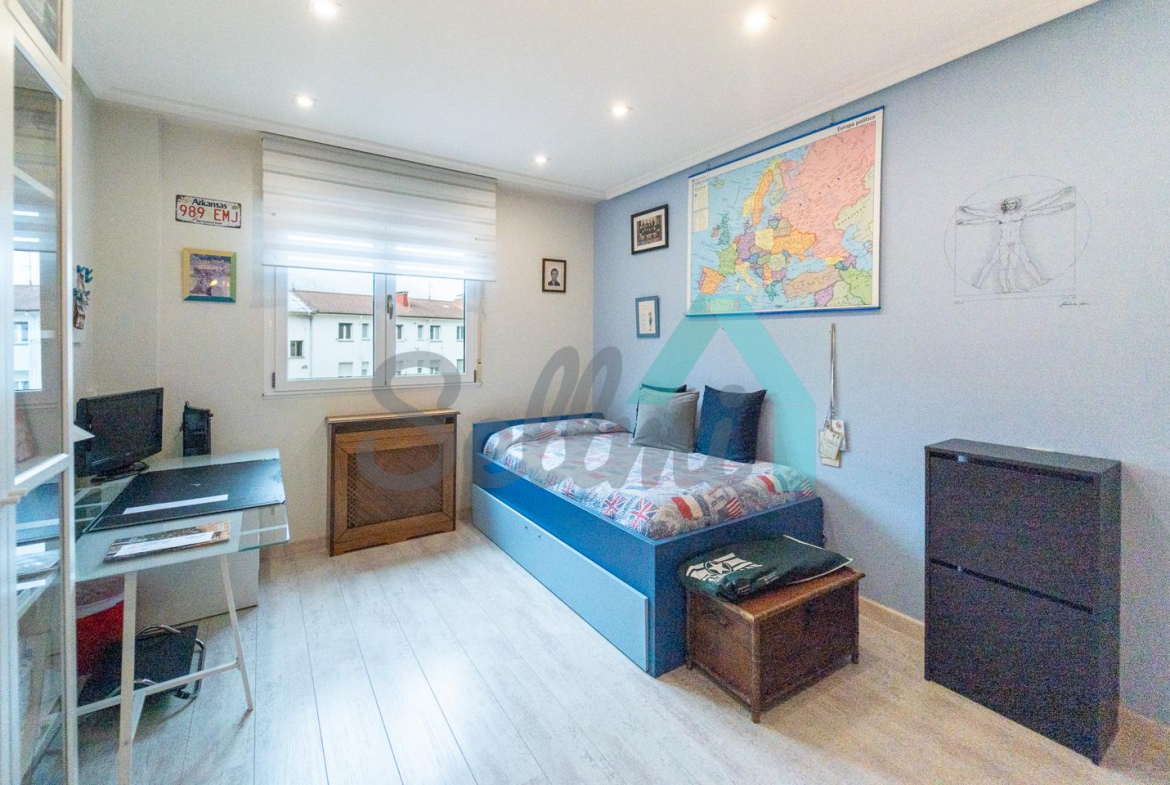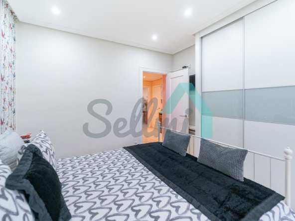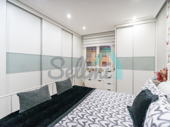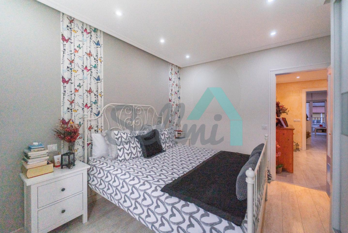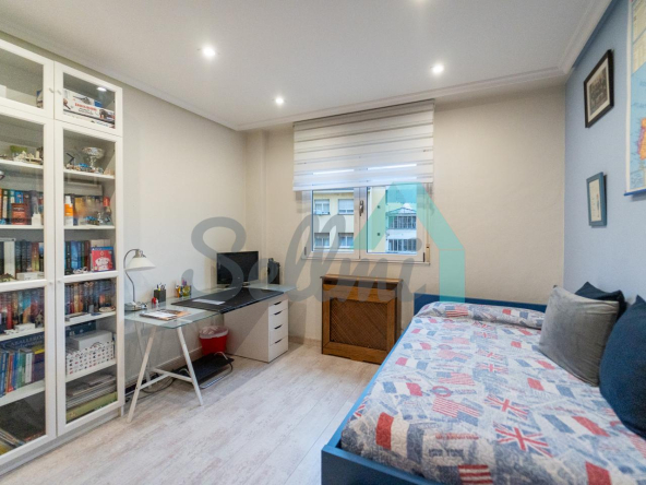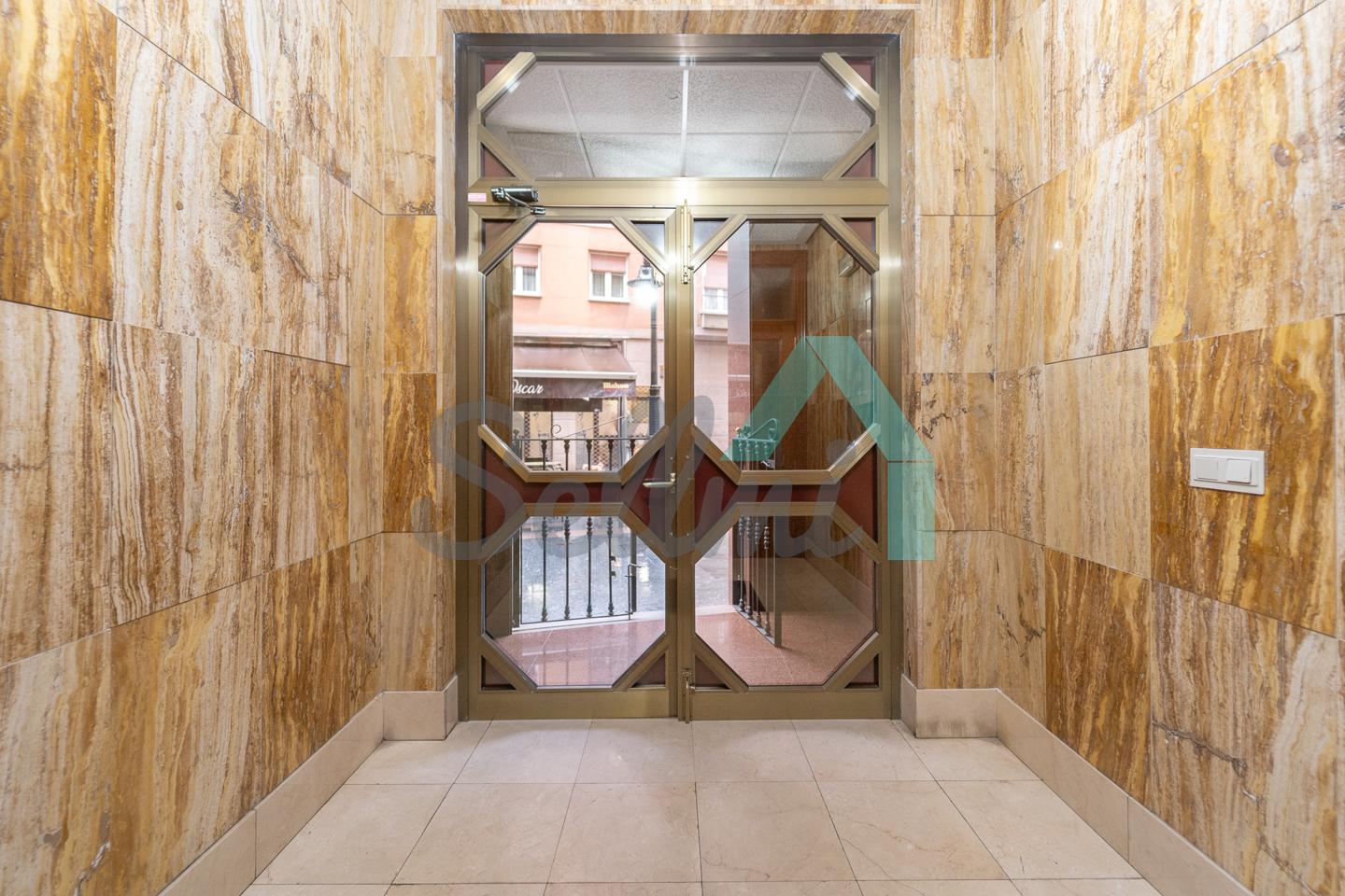 Dispone de suelos de tarima y gres, ventanas de doble acristalamiento, calefacción individual eléctrica, armarios empotrados, puerta de seguridad, etc. Es exterior y muy luminoso, con orientación este (calle) y oeste (patio de manzana).