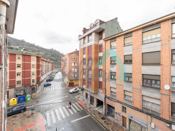 Piso en venta situado en la calle Langreo, en el centro de Mieres y cerca del Parque Jovellanos. Está ubicado en la tercera planta de un edificio construido en 1960, sin ascensor. Es exterior y muy luminoso, con orientación norte.