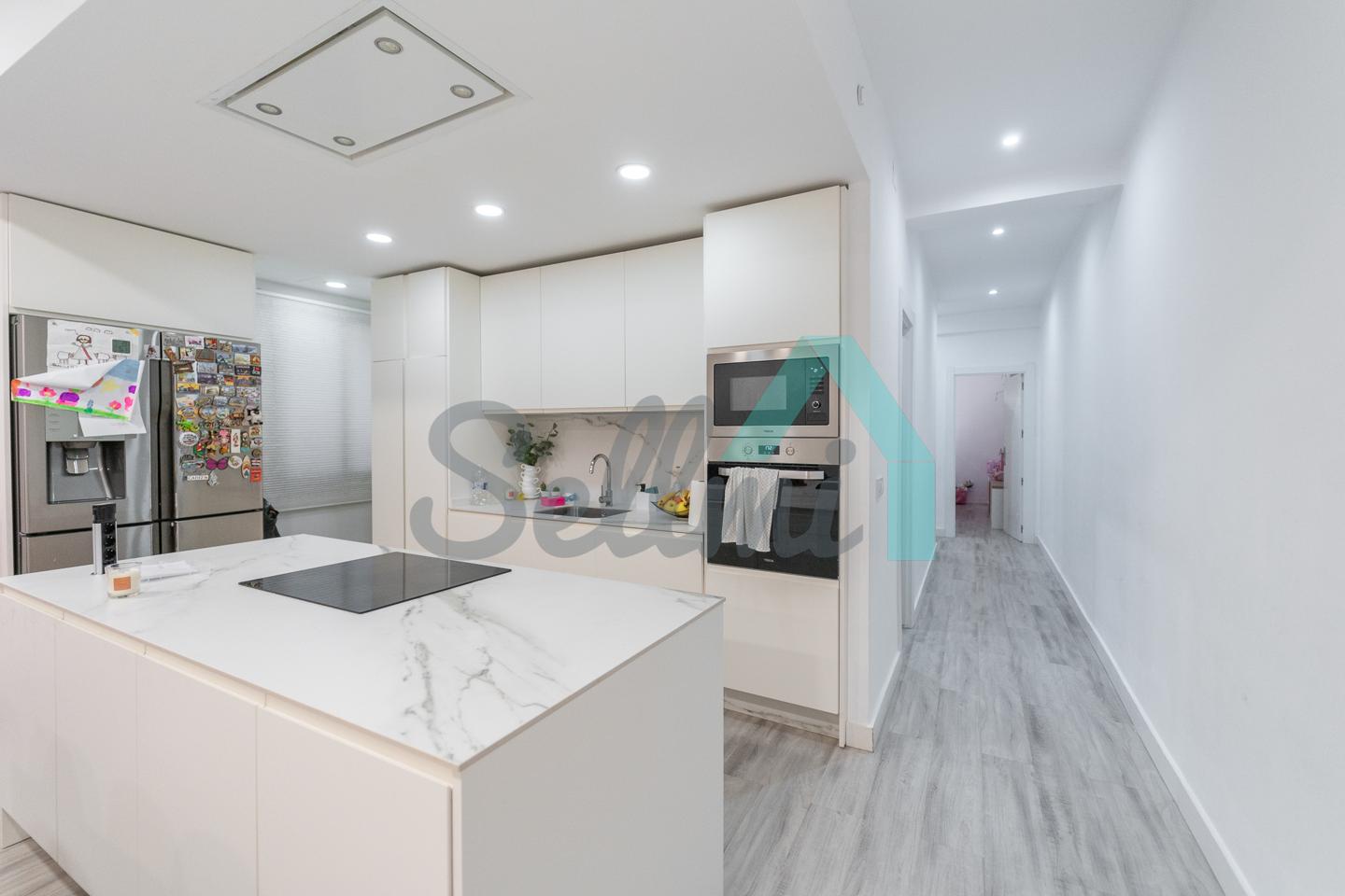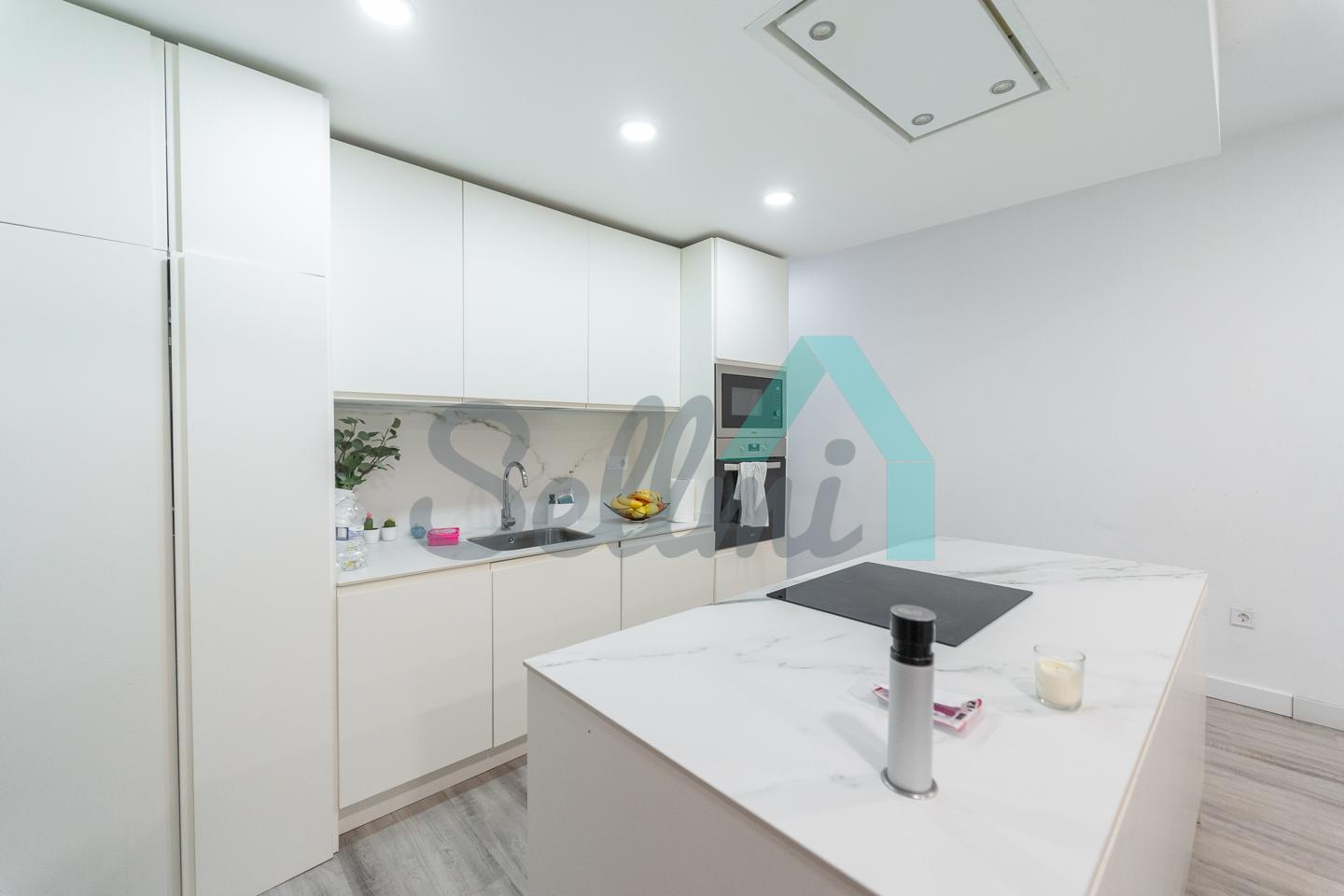 La vivienda, que ha sido totalmente reformada, tiene una superficie construida de 103 m2 distribuidos en hall de entrada, salón comedor con cocina amueblada y equipada, tres habitaciones y dos baños completos (con rejilla de ventilación uno de ellos y extractor el otro).