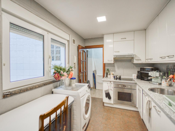 Dispone de calefacción individual de gas natural (caldera nueva), suelos de tarima y gres, ventanas de doble acristalamiento, puerta de seguridad, etc.