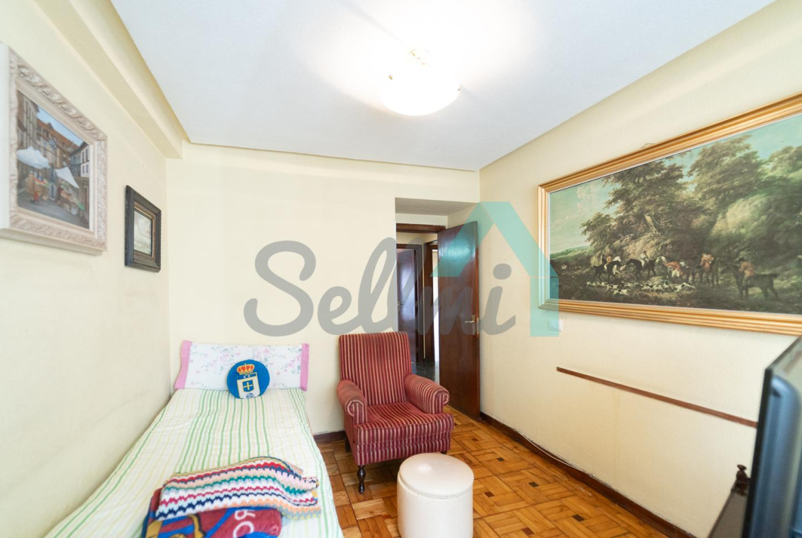 Dispone de calefacción central, ventanas de madera, armarios empotrados, suelos de parquet y gres, videoportero, etc. Es exterior, con orientación noroeste.