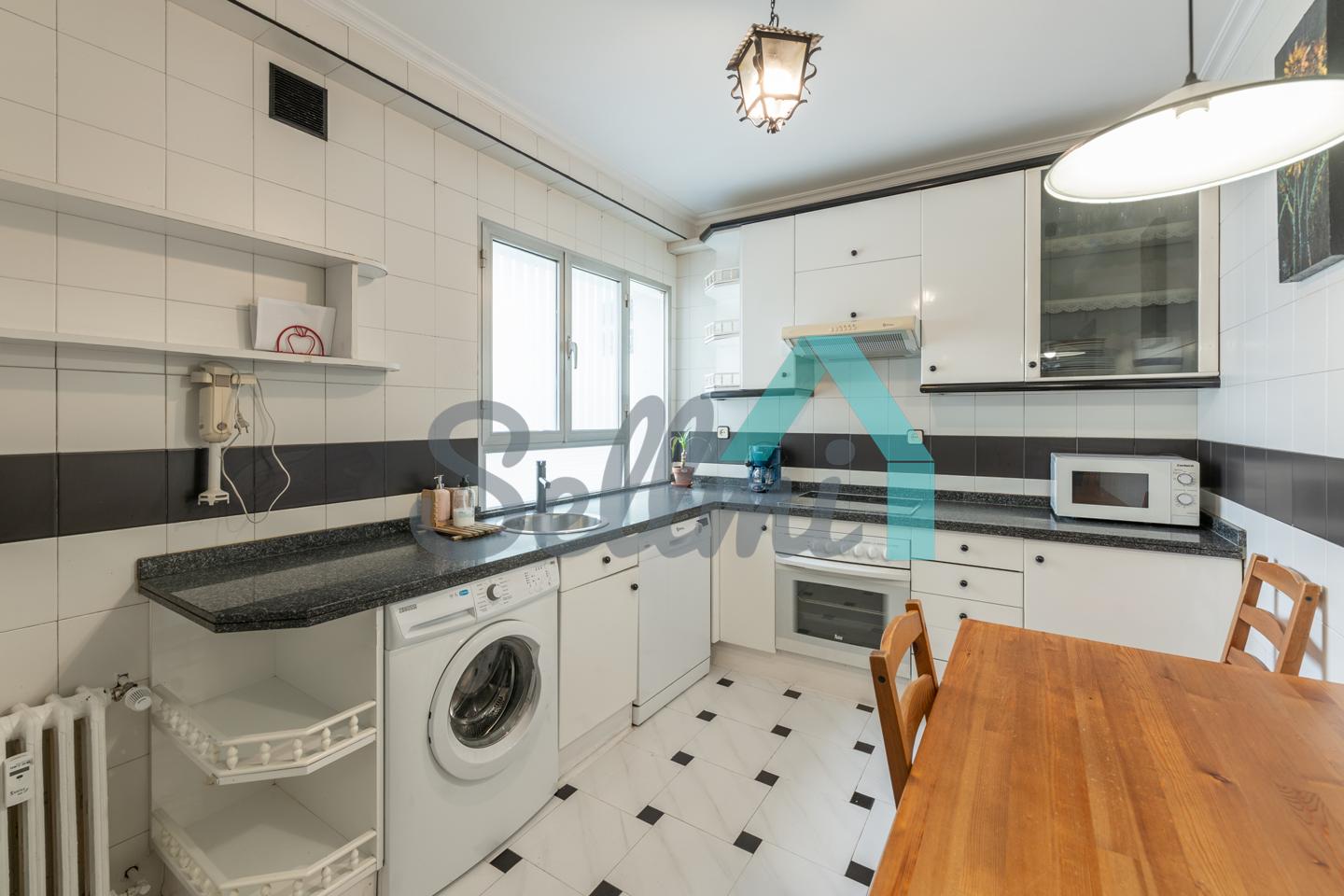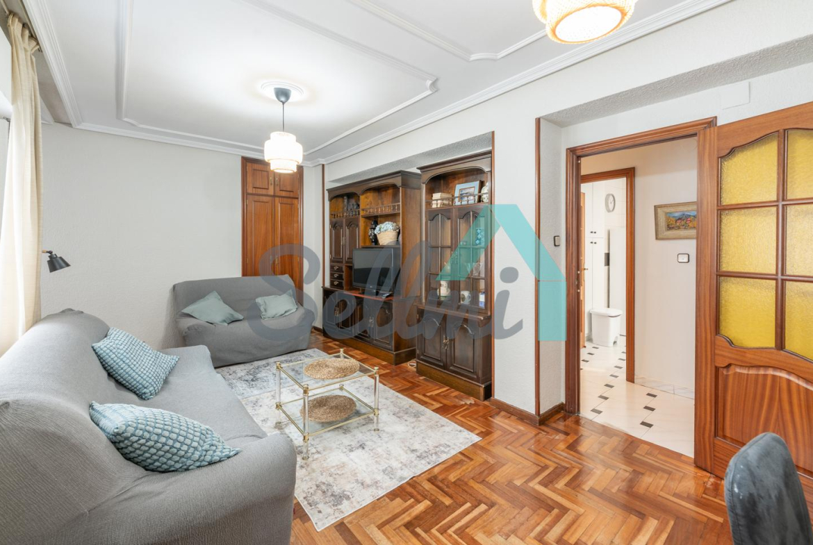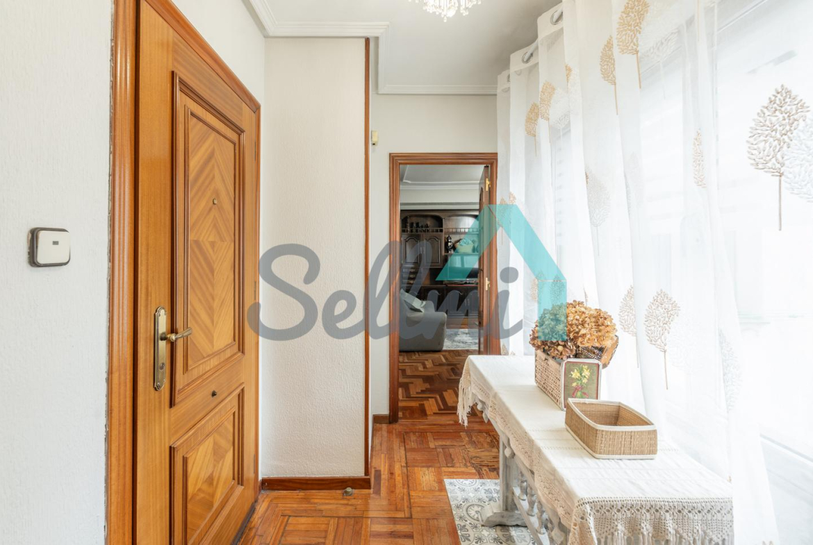Dispone de calefacción central con contador individual, suelos de parquet y gres, ventanas de aluminio con doble acristalamiento, puerta de seguridad (dos puertas de entrada), etc.