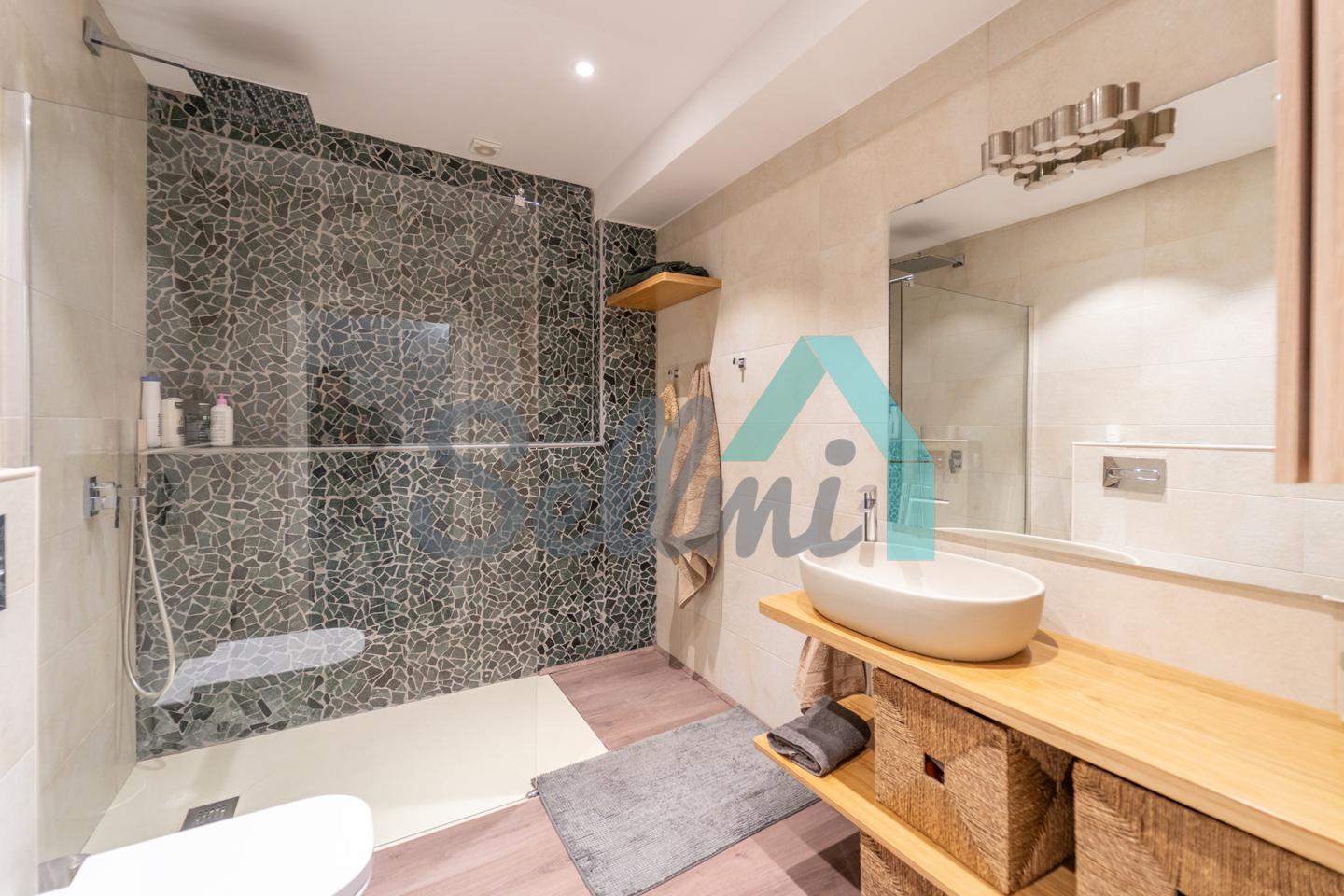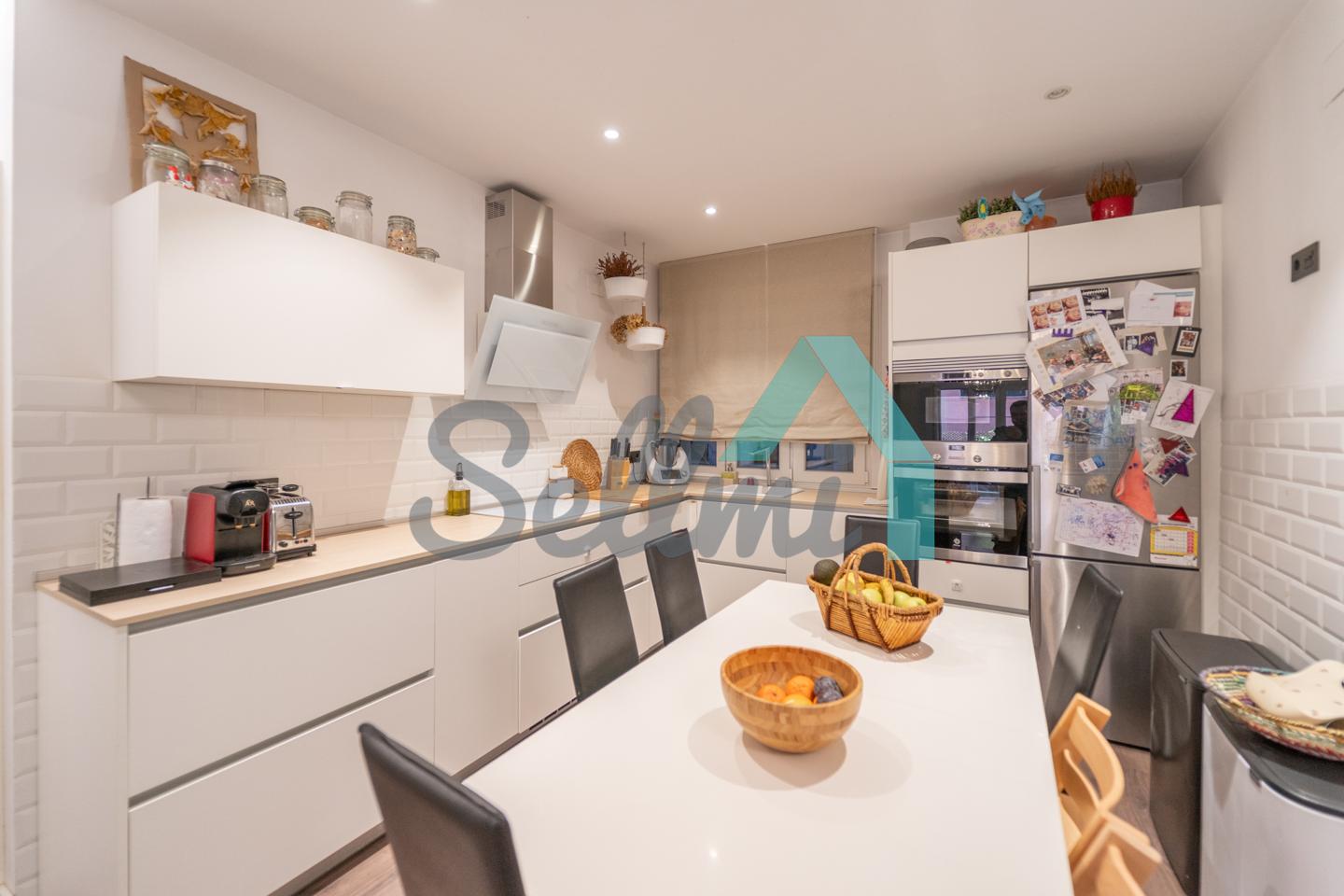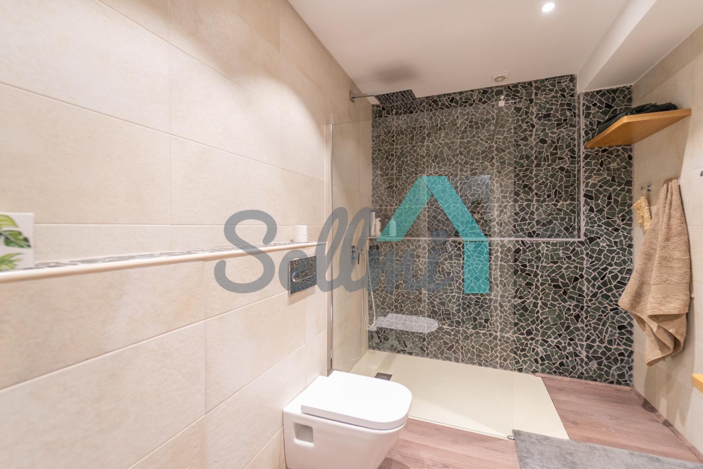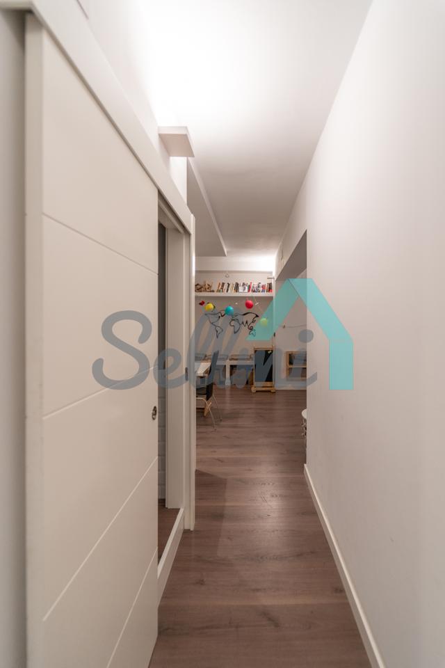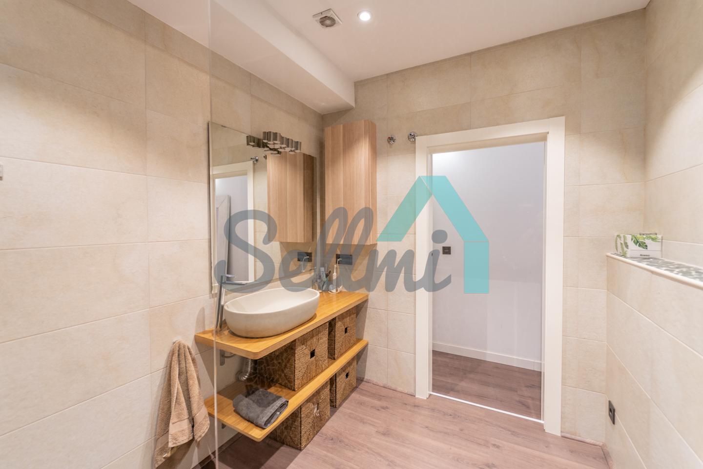 La vivienda, que ha sido totalmente reformada y se encuentra en perfecto estado, tiene una superficie construida de 135 m² distribuidos en hall de entrada, salón comedor con cocina amueblada y equipada, terraza de 20 m², tres habitaciones, dos baños completos, un aseo, cuarto de lavandería y despensa. Cuenta además con un pequeño trastero en el edificio.
