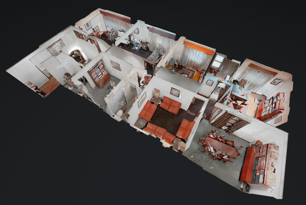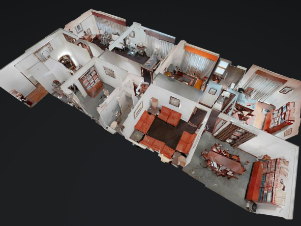 La vivienda, que actualmente está instalada como oficina, tiene una superficie construida de 147 m² distribuidos en hall de entrada, amplio salón comedor, cocina (actualmente anulada y sin instalaciones), cuatro habitaciones y dos baños completos.
