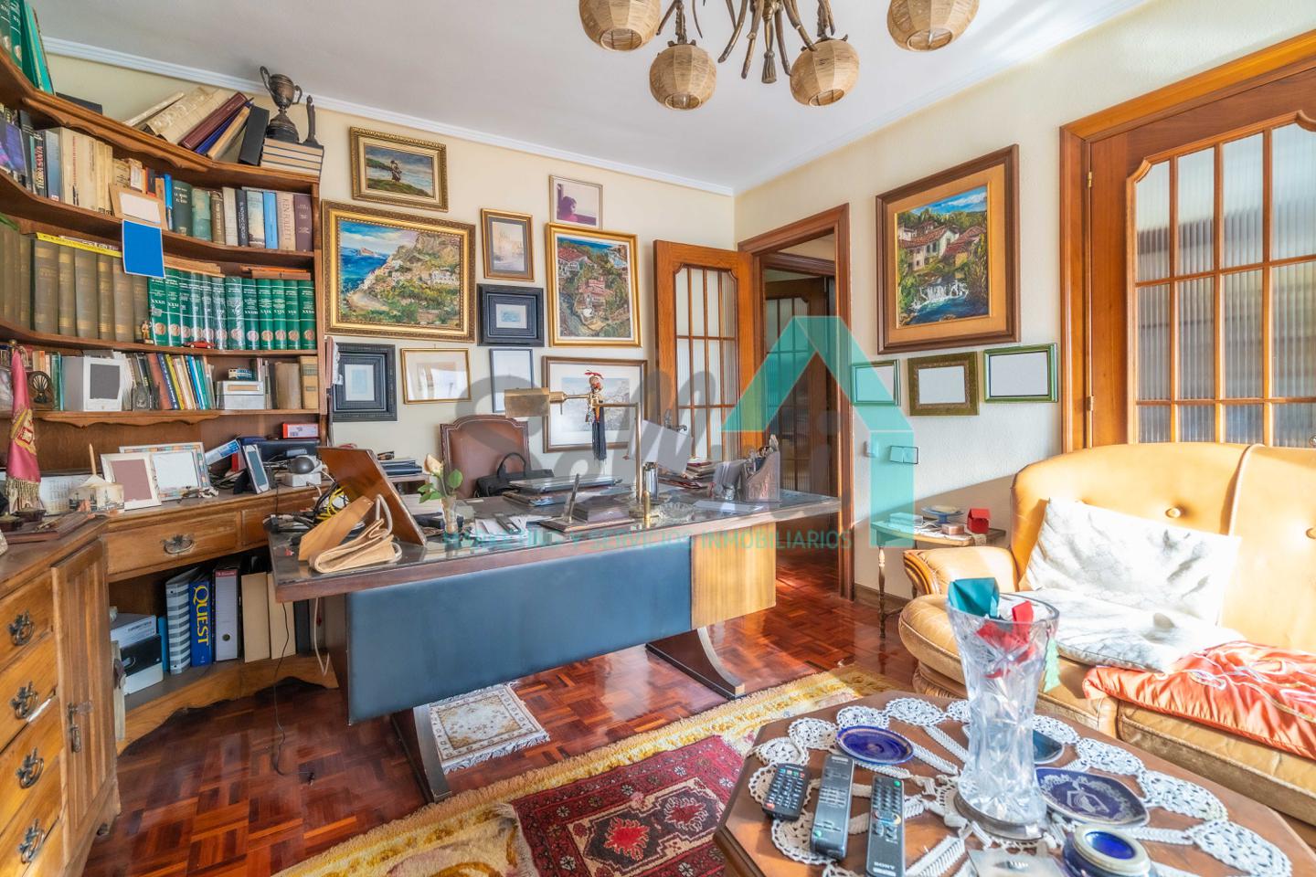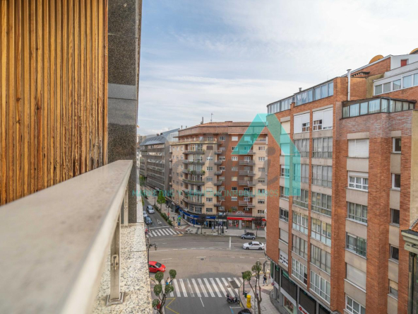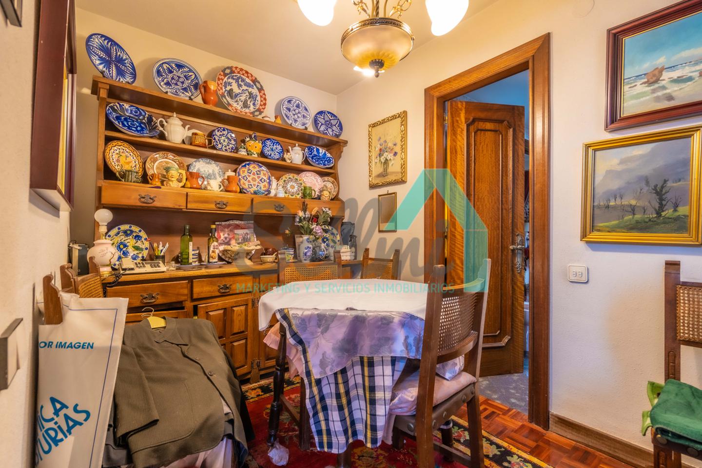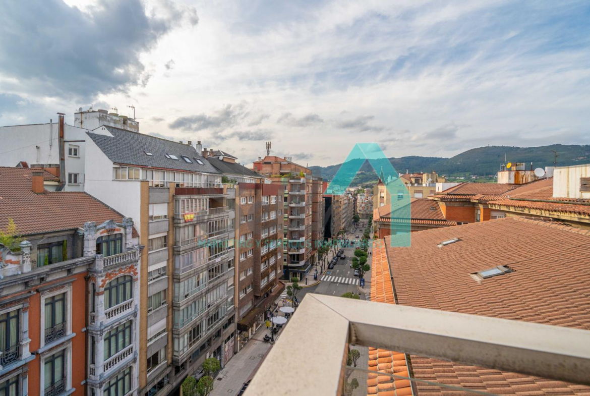 Piso en venta situado en la Calle Cervantes esquina con la Avenida de Galicia, en pleno centro de Oviedo. Está ubicado en un edificio construido en 1974, sin barreras arquitectónicas y con portero físico, servicios centrales y dos ascensores.