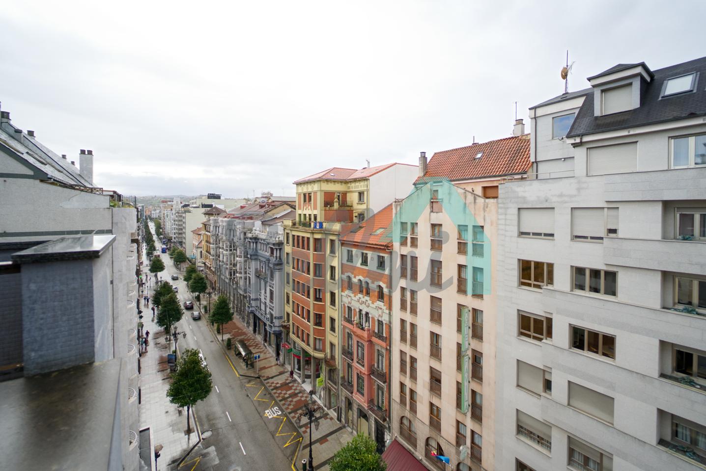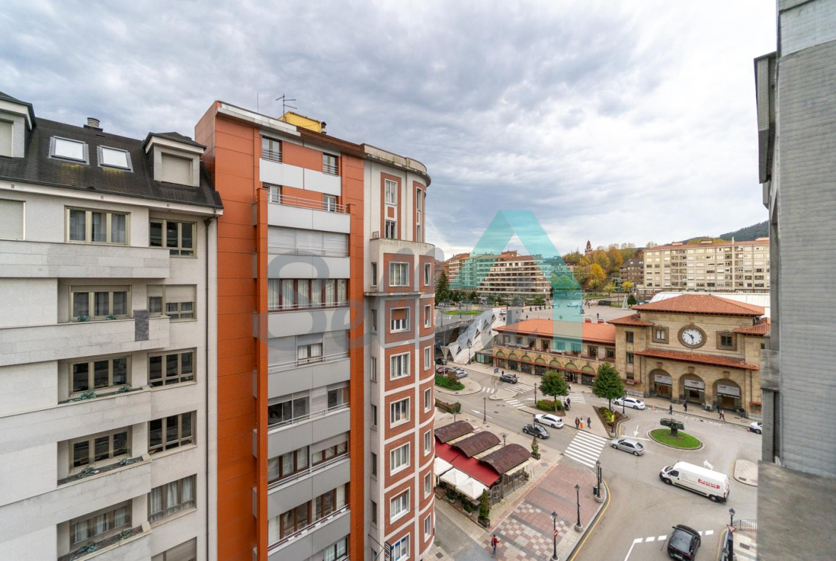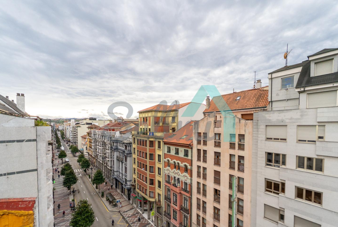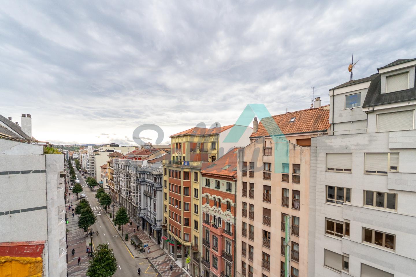 Piso en venta situado en pleno centro de Oviedo, en la calle Uría y junto a la estación de tren. Se ubica en la séptima planta de un edificio construido en 1967, sin barreras arquitectónicas y que cuenta con servicios centrales, conserje y dos ascensores. Es exterior y muy luminoso, con orientación suroeste.