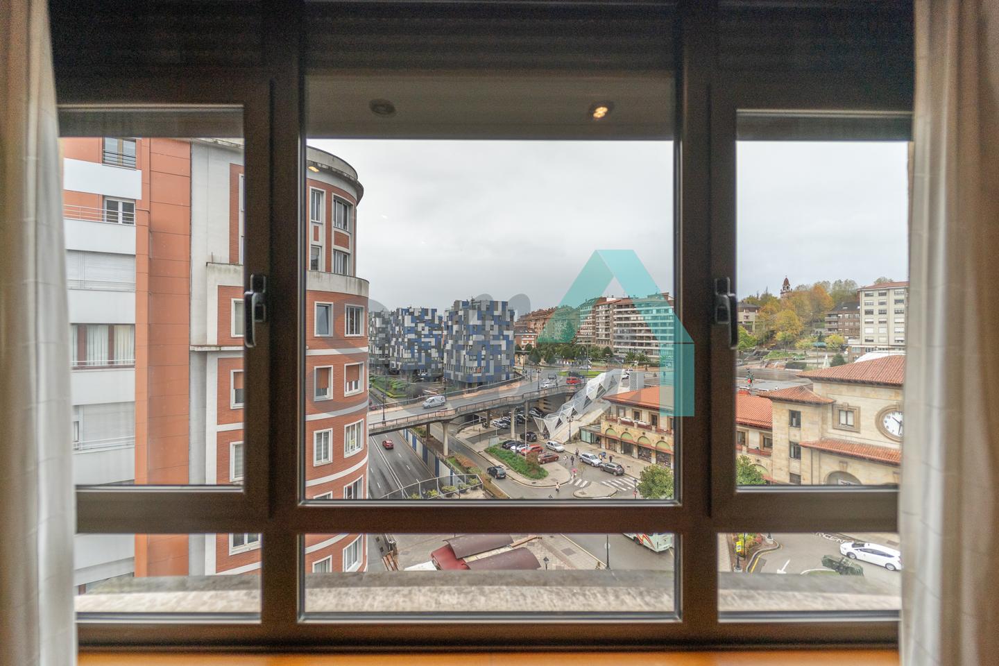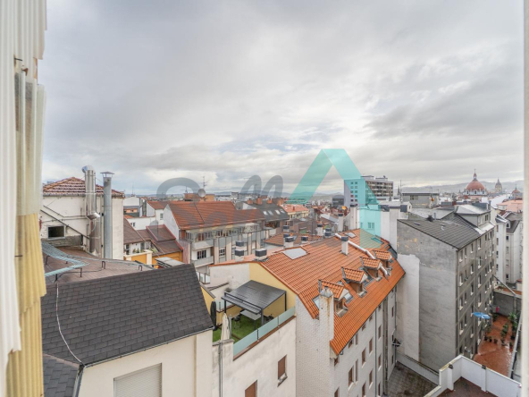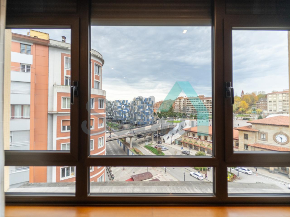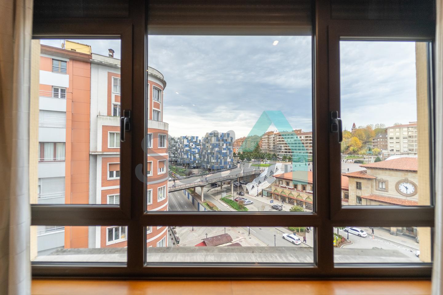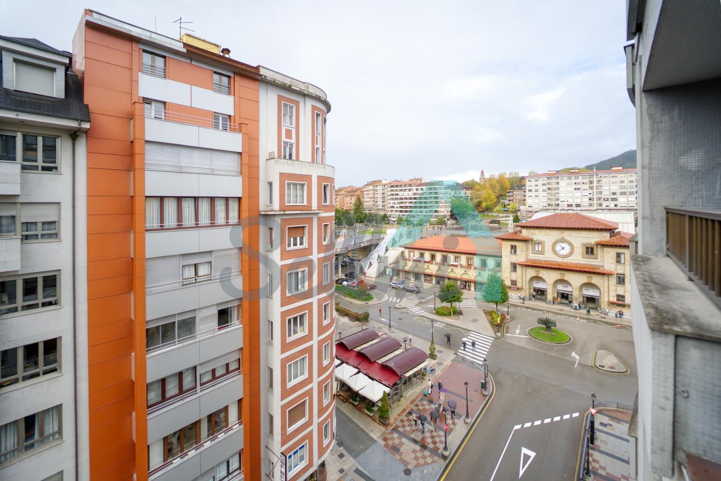 Piso en venta situado en pleno centro de Oviedo, en la calle Uría y junto a la estación de tren. Se ubica en la séptima planta de un edificio construido en 1967, sin barreras arquitectónicas y que cuenta con servicios centrales, conserje y dos ascensores. Es exterior y muy luminoso, con orientación suroeste.