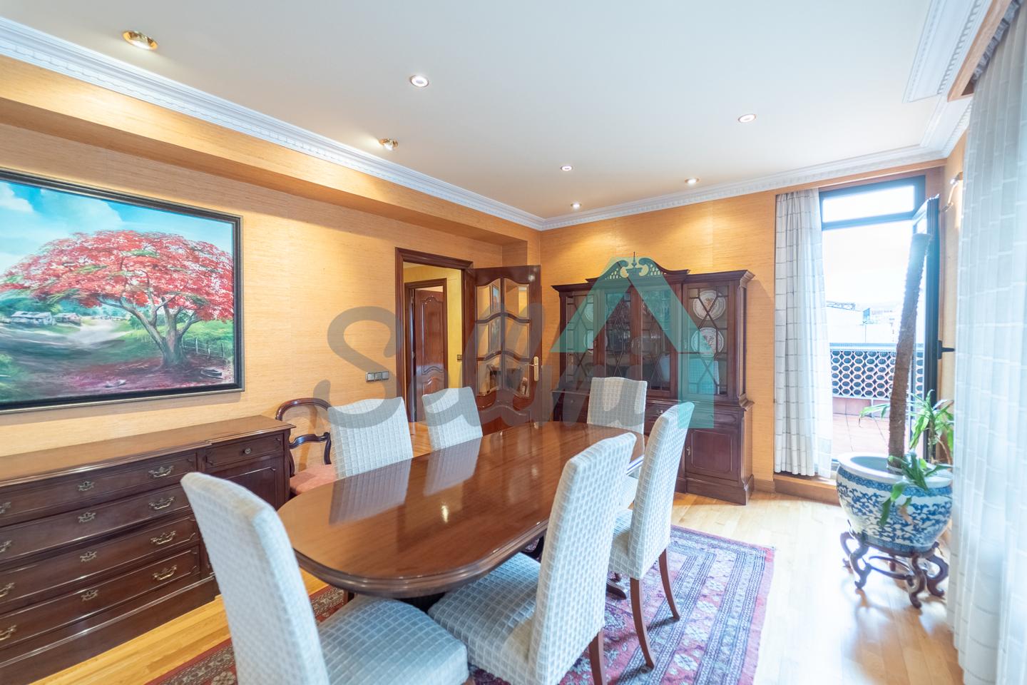 La vivienda, que ha sido reformada y se encuentra en perfecto estado, tiene una superficie construida de 154 m² distribuidos en amplio hall de entrada con ventana, distribuidor/sala de estar, salón comedor de 36 m2 con balcón, cocina amueblada y equipada, cuatro habitaciones, dos baños completos (uno de ellos con cabina de hidromasaje), un aseo/cuarto de lavadora y una terraza con acceso desde el salón y desde uno de los dormitorios.
