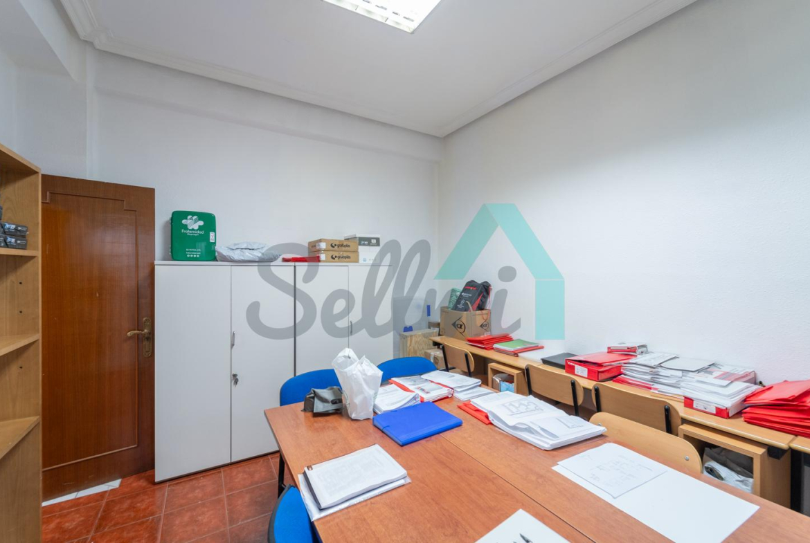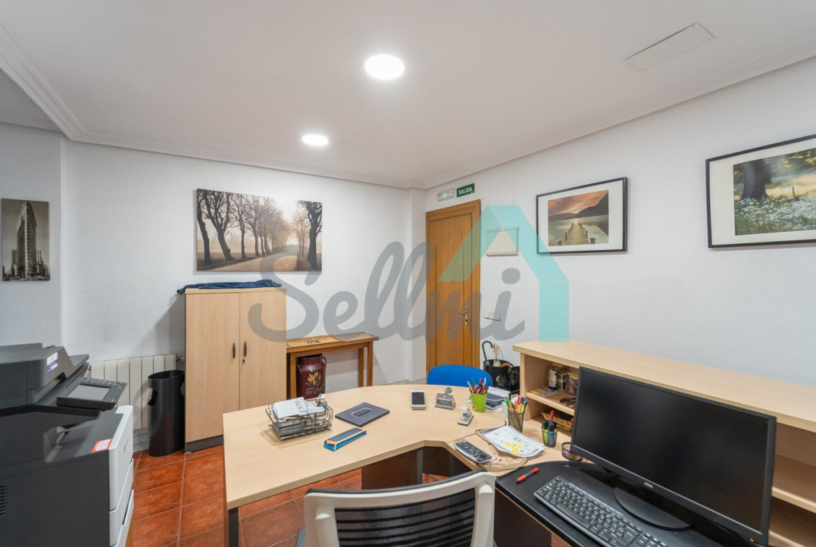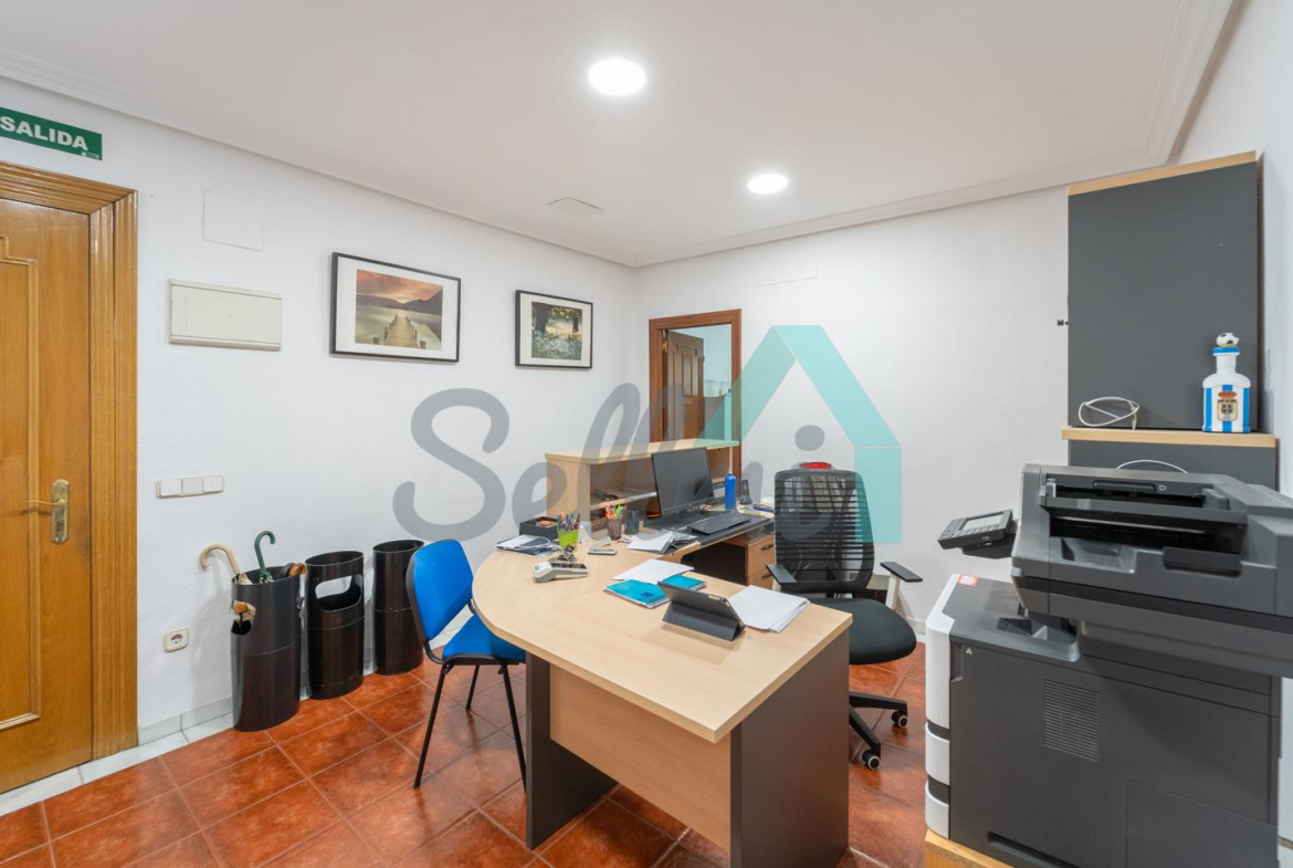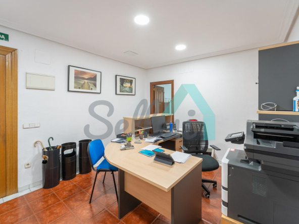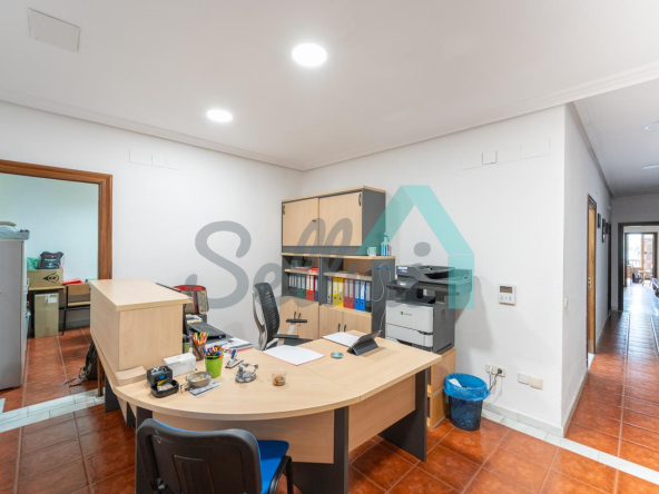 La vivienda, que actualmente está instalada como oficina, tiene una superficie construida de 156 m2 distribuidos en hall de entrada/zona de recepción, seis estancias de diferentes tamaños y dos baños completos.