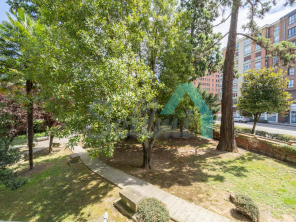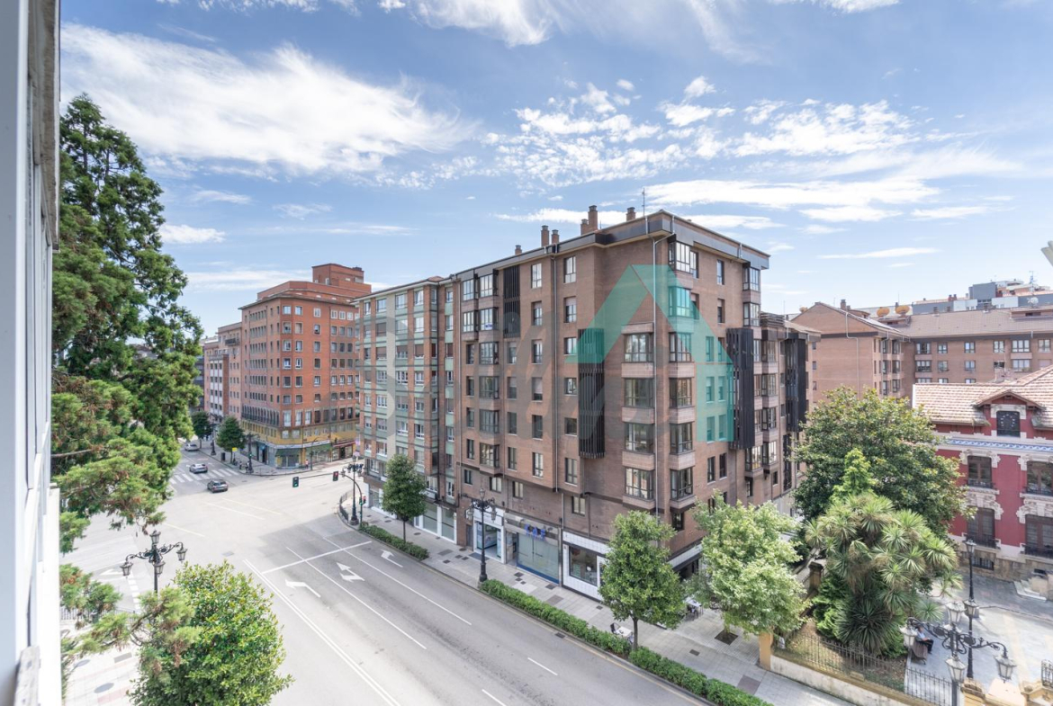Piso en venta en la Avenida de Galicia, en Oviedo, junto a Villa Magdalena y a un paso de la Plaza de América. Está ubicado en la cuarta planta de un edificio construido en 1958, obra del arquitecto Ignacio Álvarez Castelao y que cuenta con servicios centrales, ascensor, acceso rodado directo al montacargas y jardín privado.