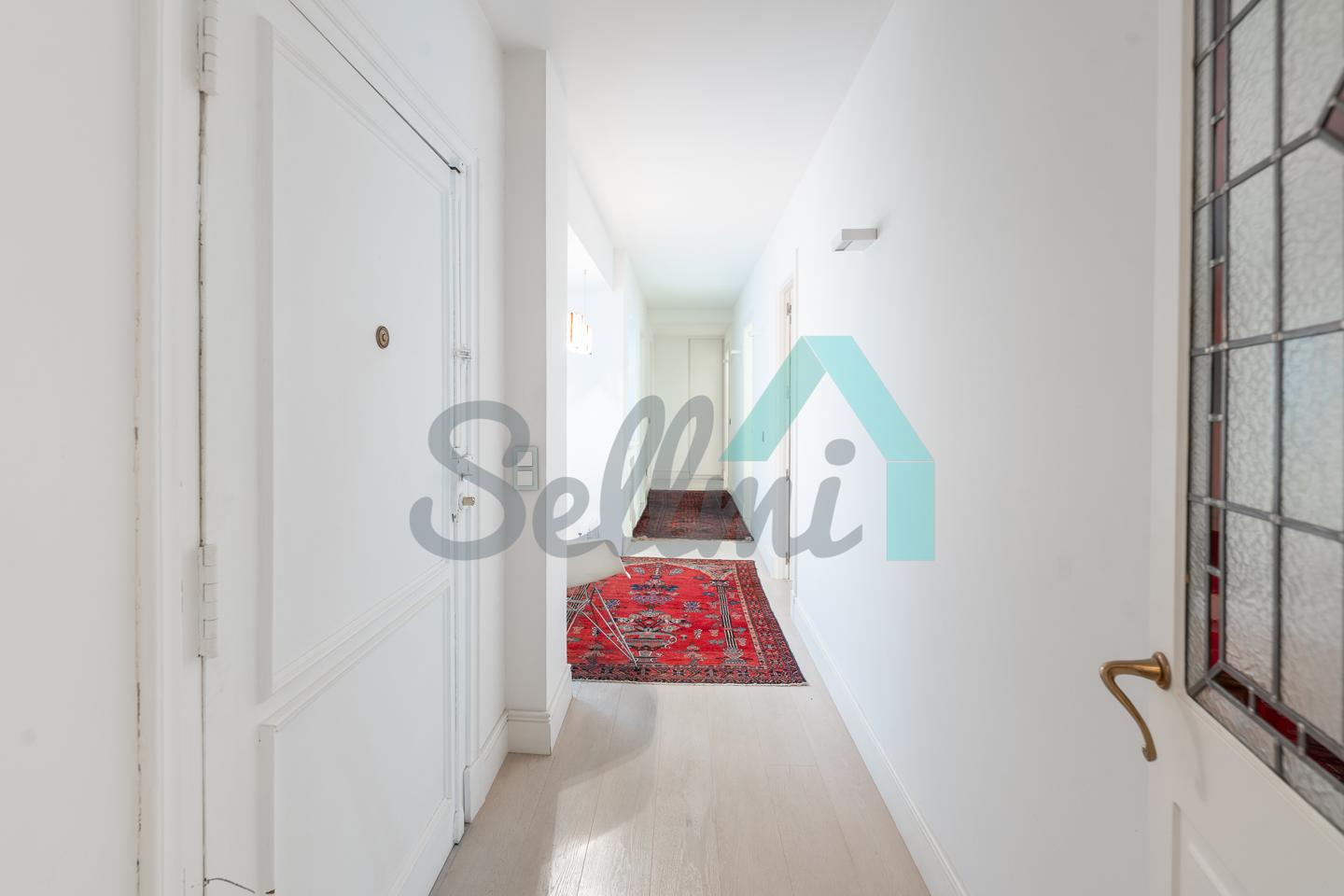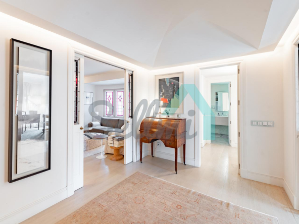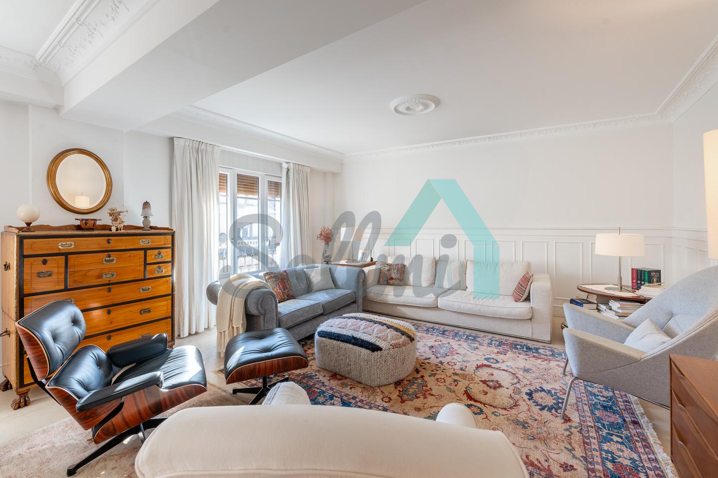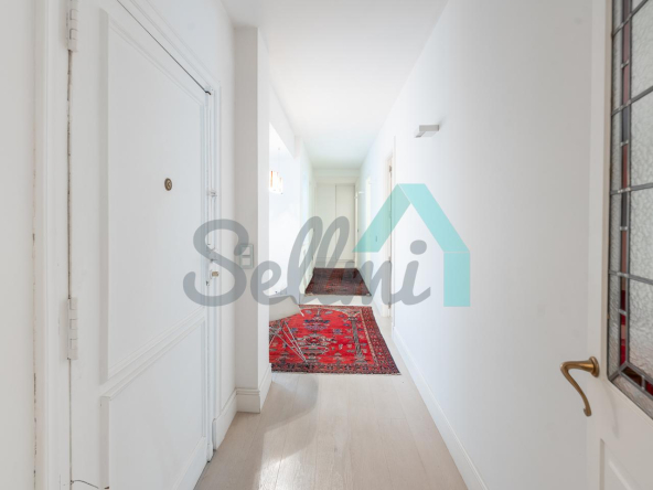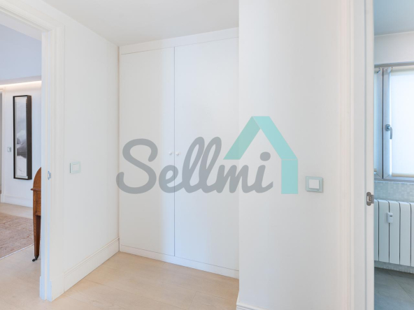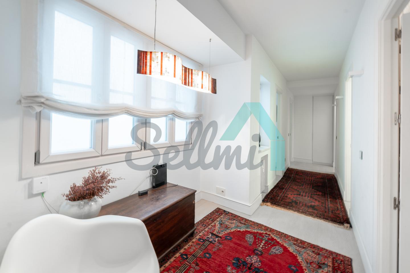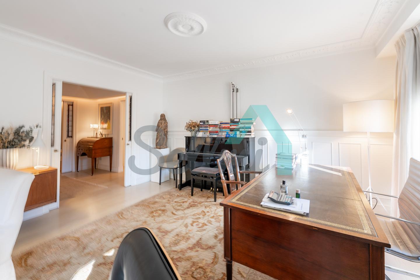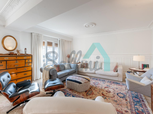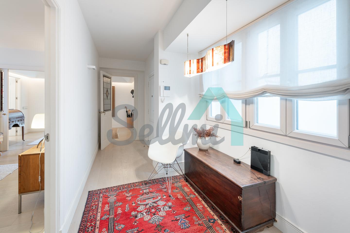 Dispone de dos puertas de acceso, suelos de tarima y gres, ventanas de doble acristalamiento, armarios empotrados, calefacción central con contador individual, techos con molduras originales, videoportero, etc.
