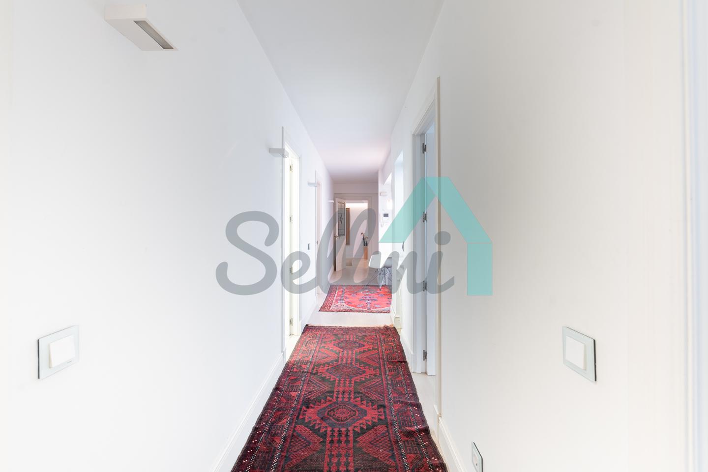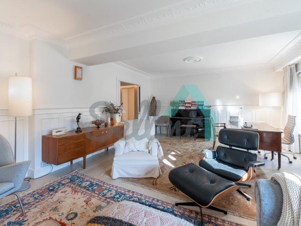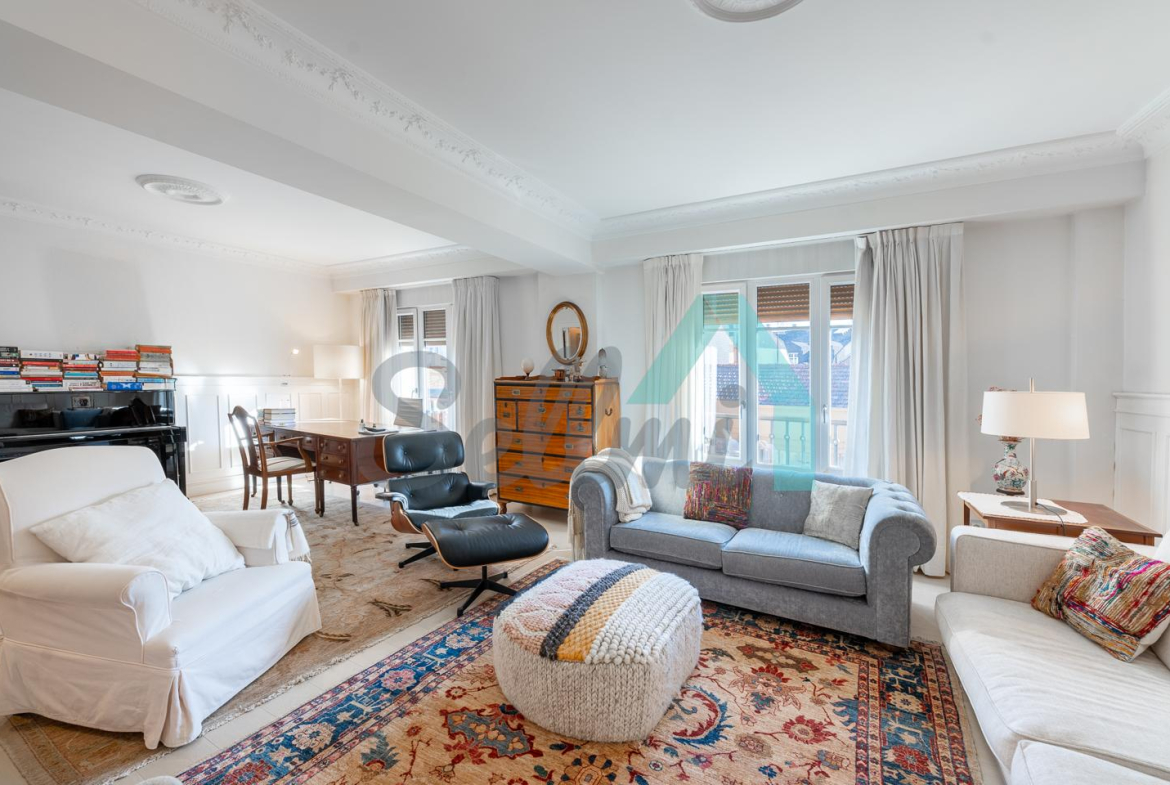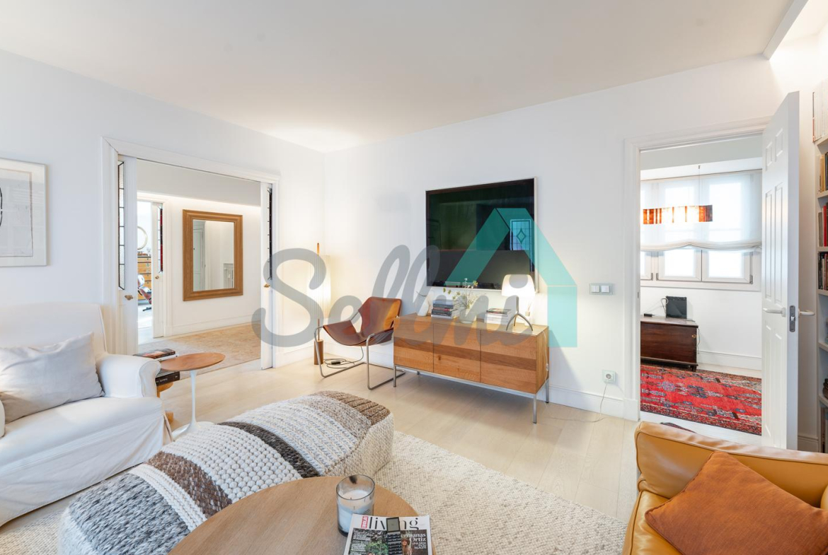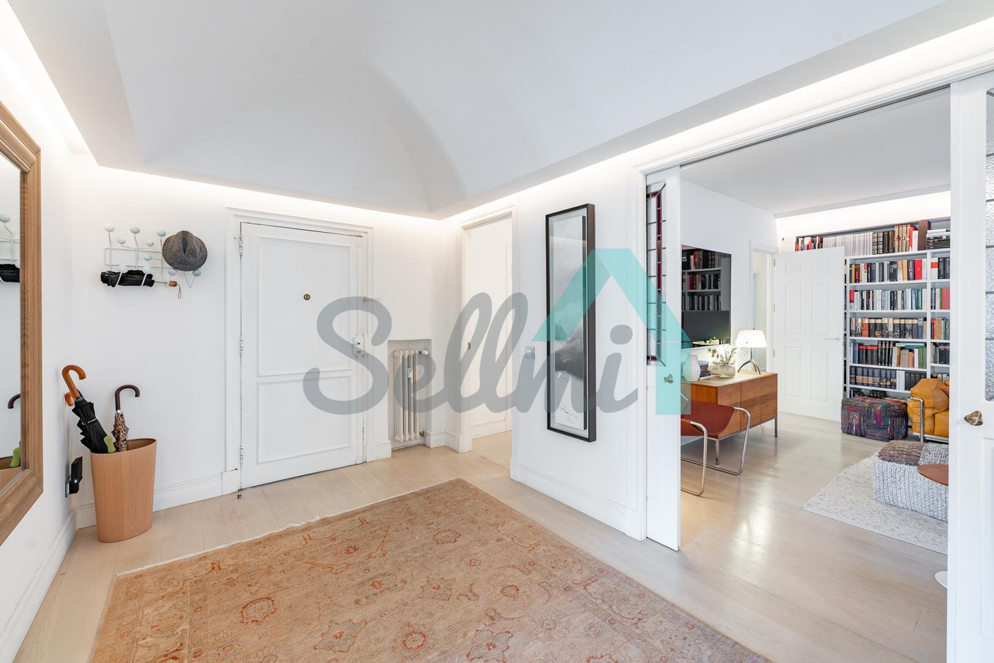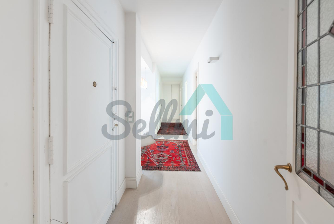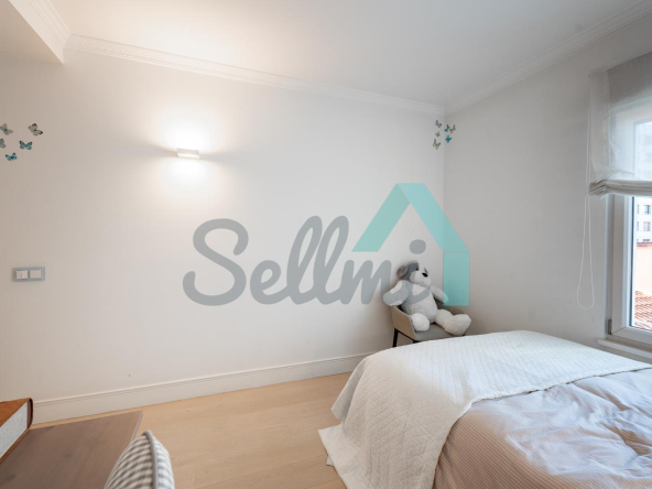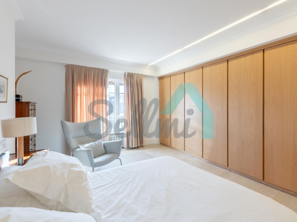 Dispone de dos puertas de acceso, suelos de tarima y gres, ventanas de doble acristalamiento, armarios empotrados, calefacción central con contador individual, techos con molduras originales, videoportero, etc.