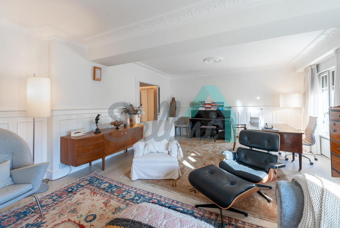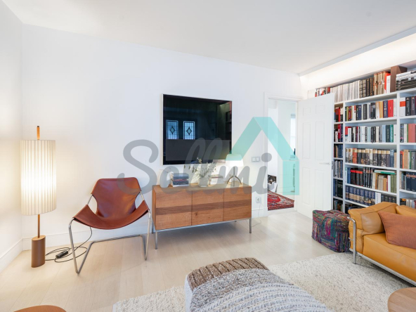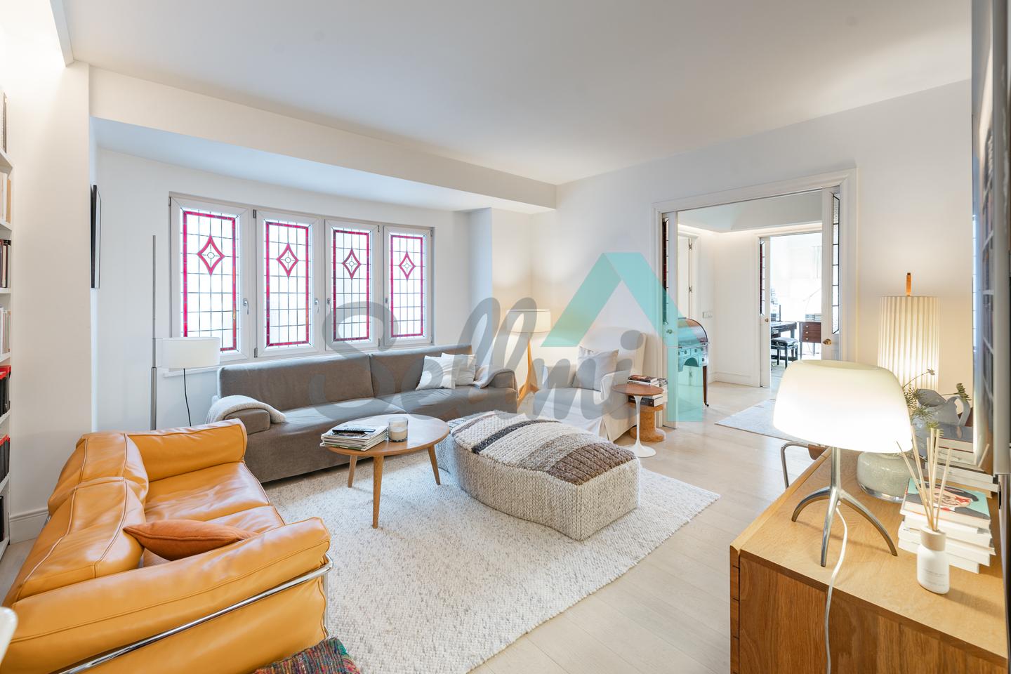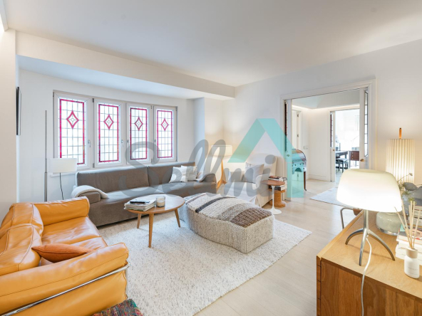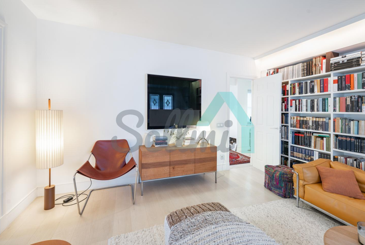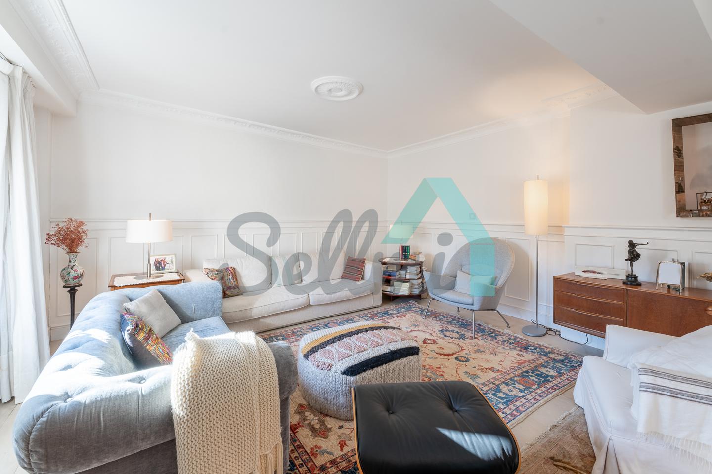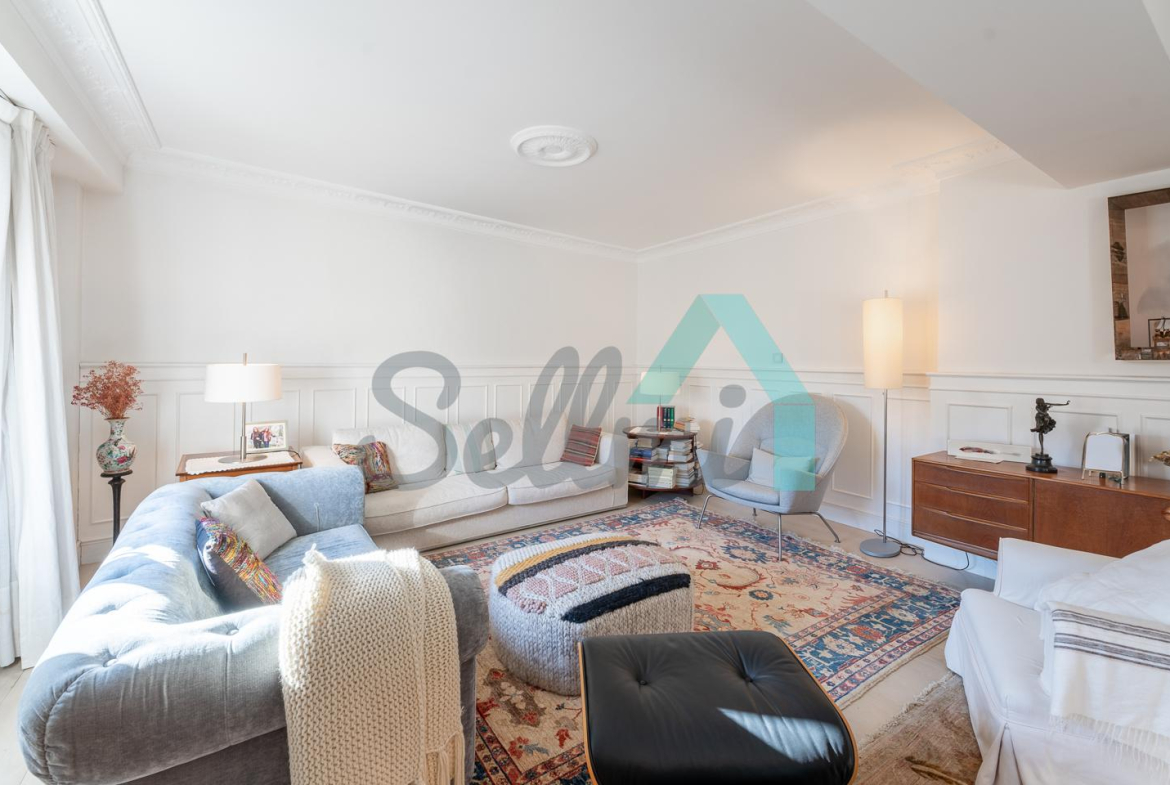 Dispone de dos puertas de acceso, suelos de tarima y gres, ventanas de doble acristalamiento, armarios empotrados, calefacción central con contador individual, techos con molduras originales, videoportero, etc.