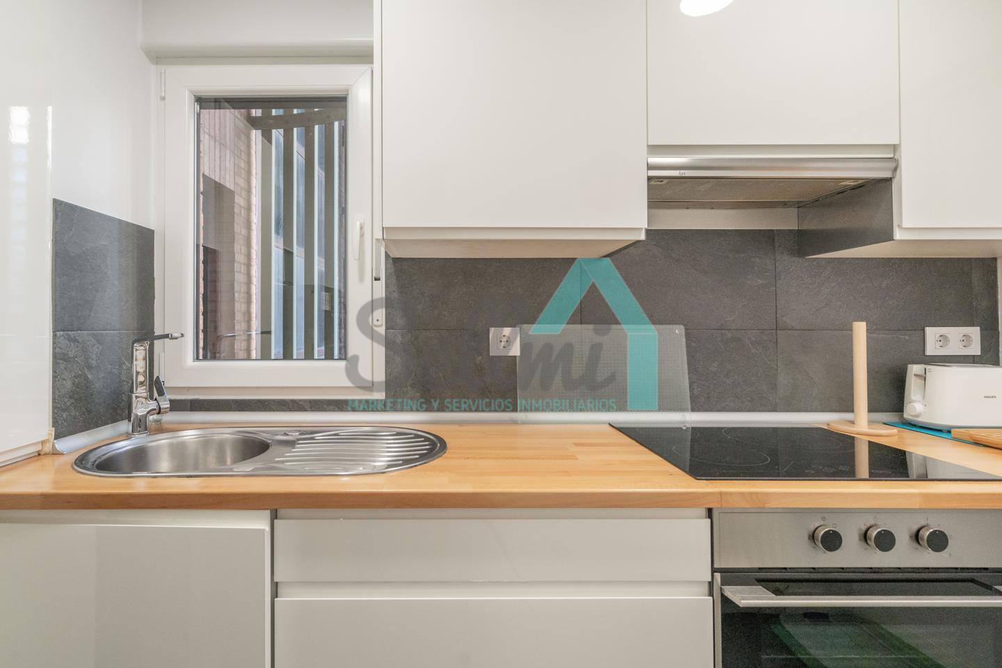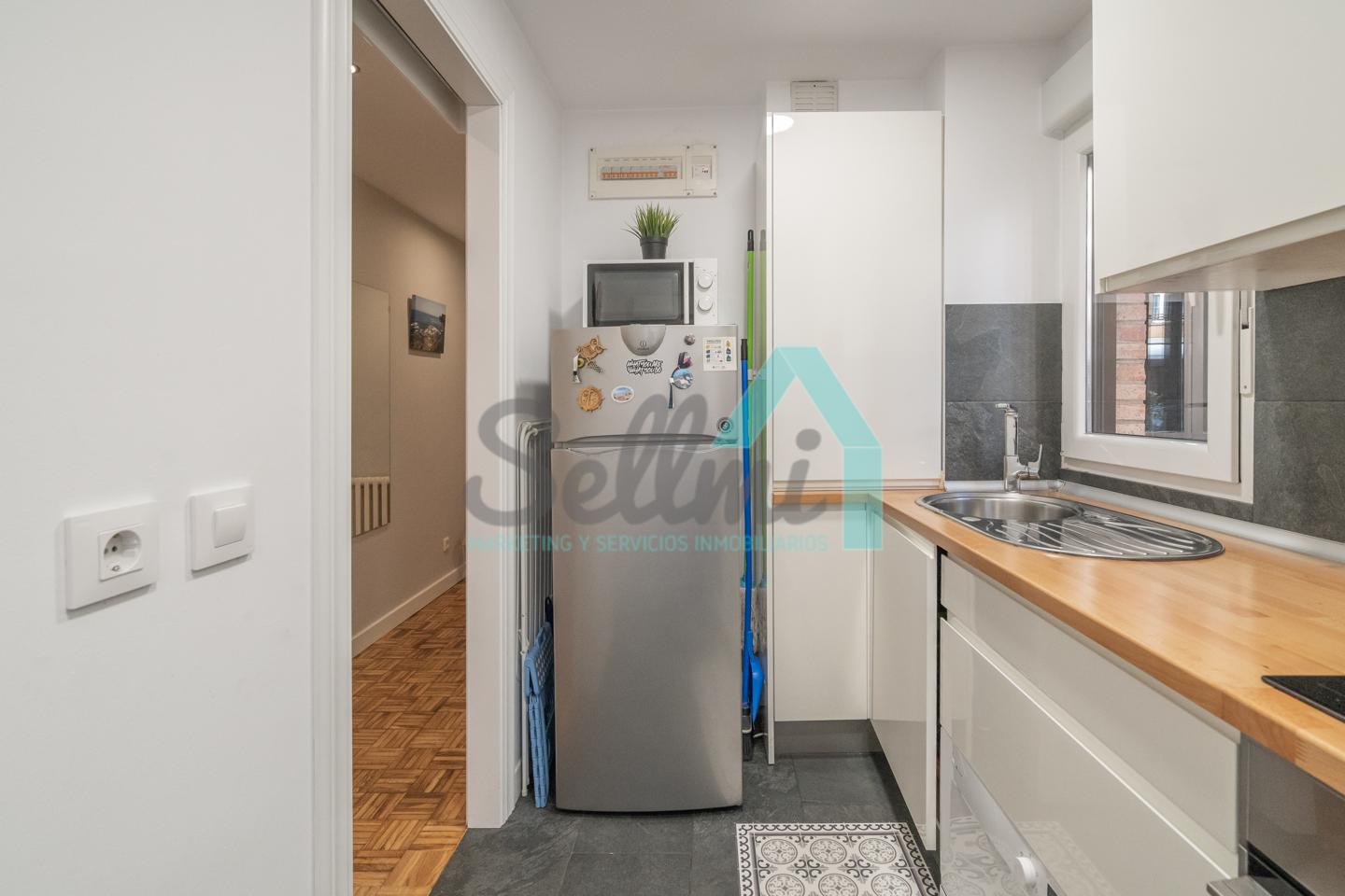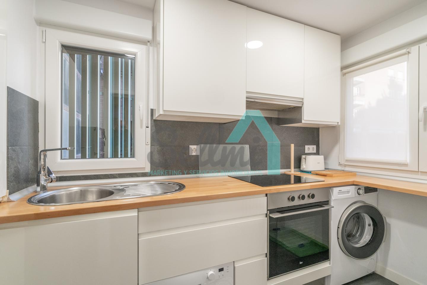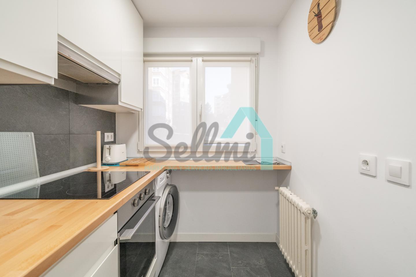 Tiene una superficie construida de 55 m² distribuidos en hall de entrada, salón comedor, cocina amueblada, una habitación y un baños completo. Plaza de garaje opcional por 50 € al mes. El piso es totalmente exterior, con orientación sur, este y norte.