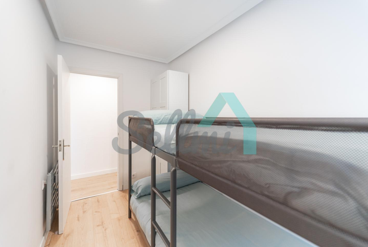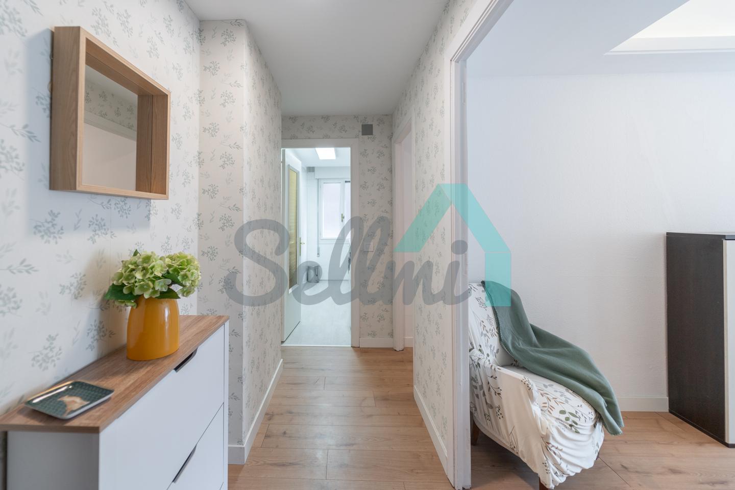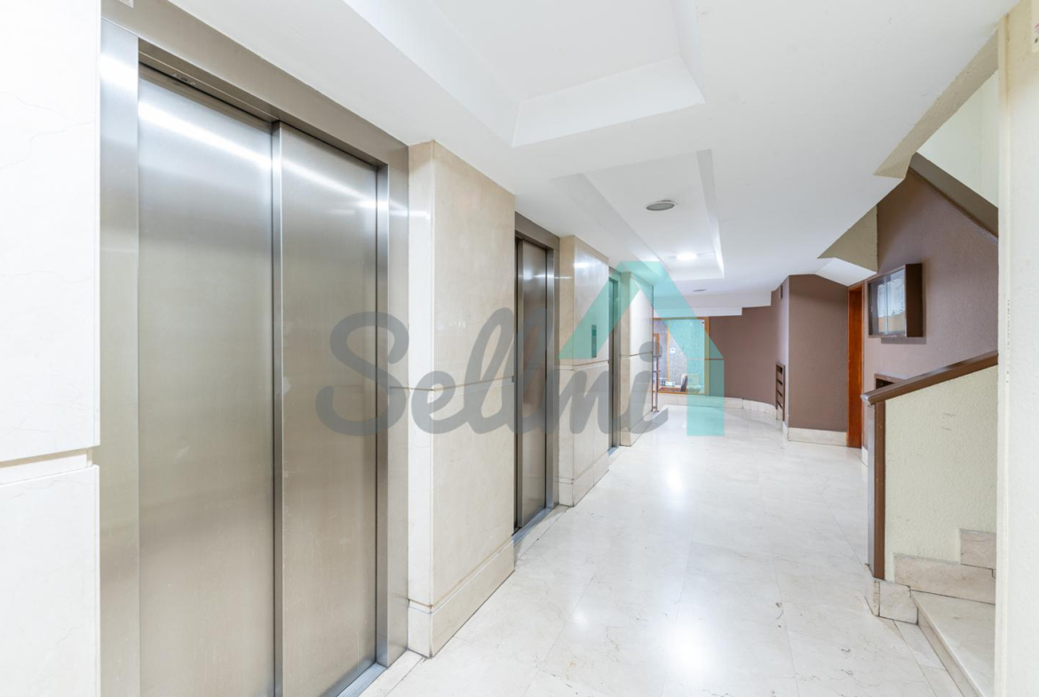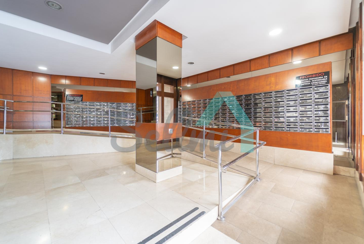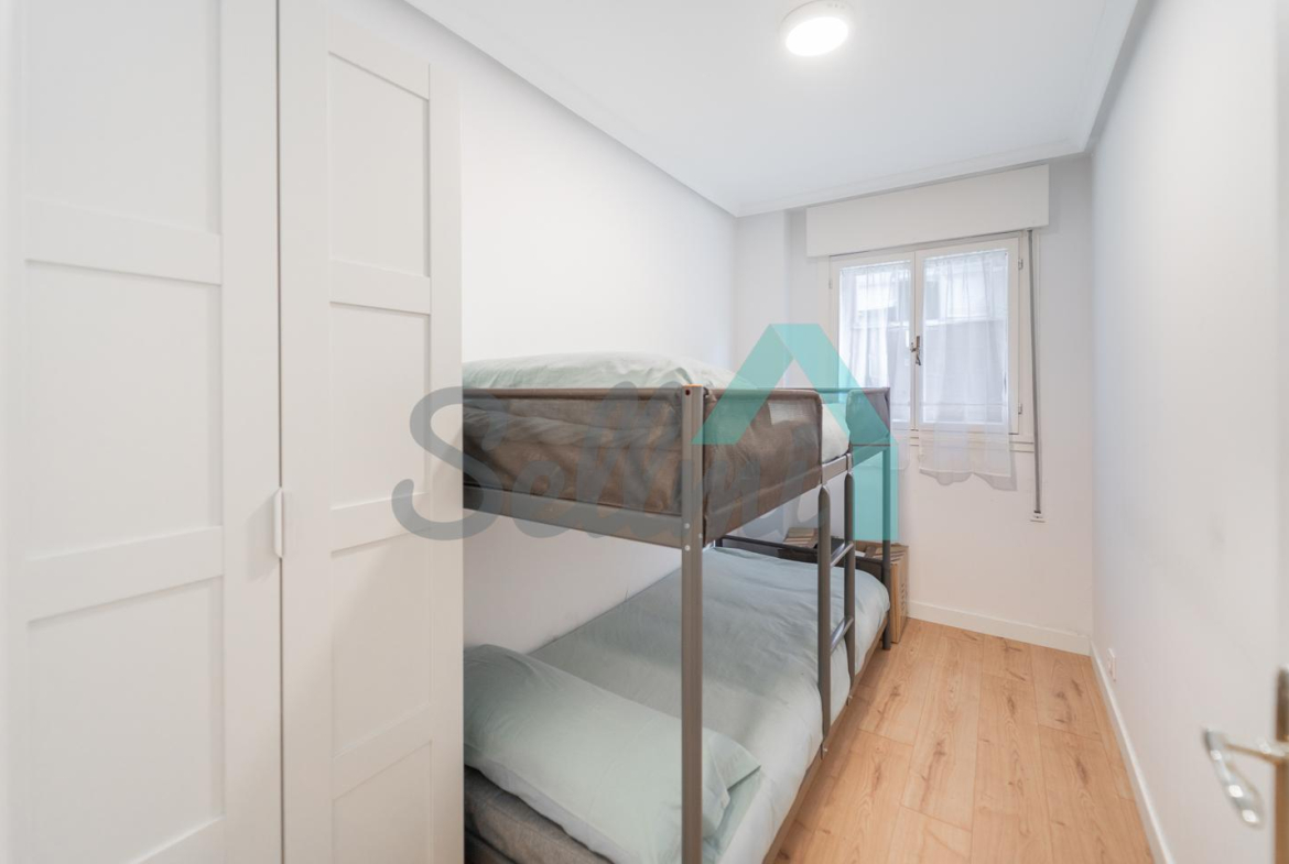 Dispone de calefacción central con contador individual, armarios empotrados, ventanas de madera, suelos de tarima y gres, puerta de seguridad, videoportero, etc. Es posterior y muy luminoso, con orientación sur y vistas a amplio patio de manzana.