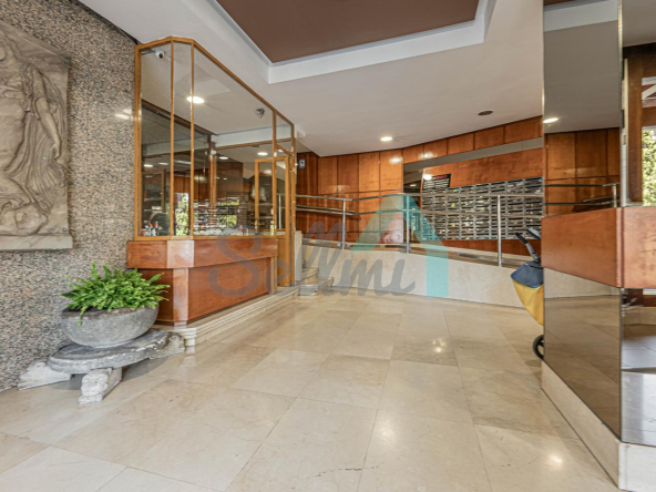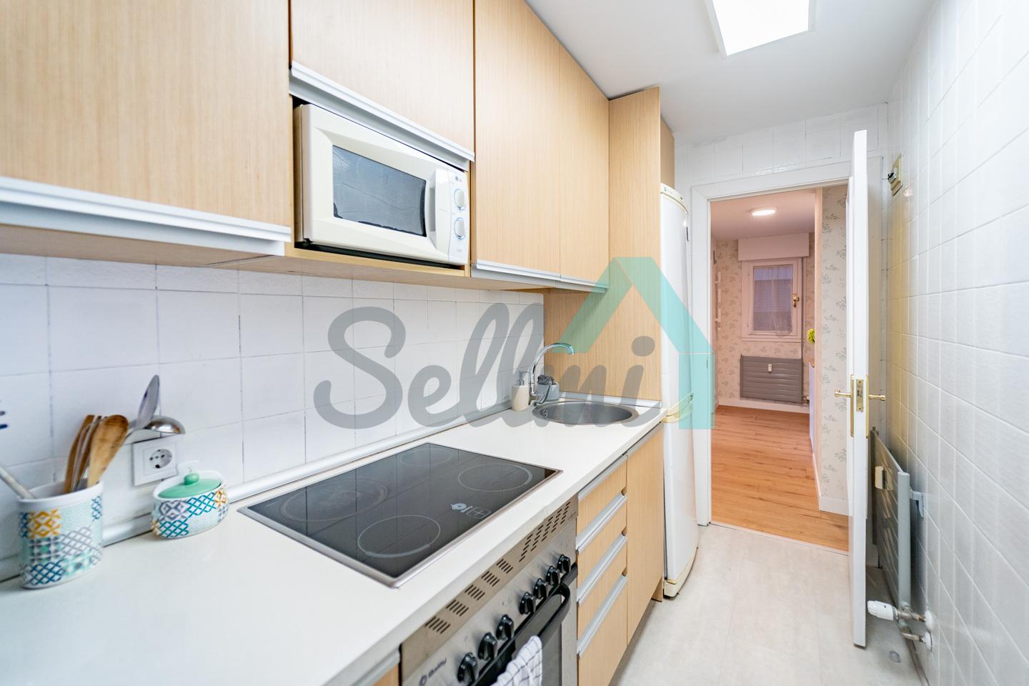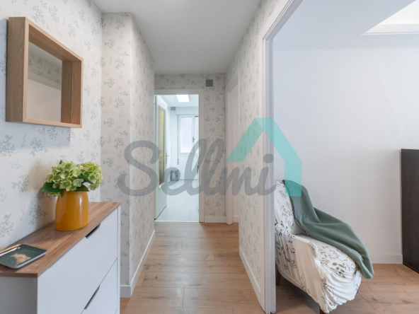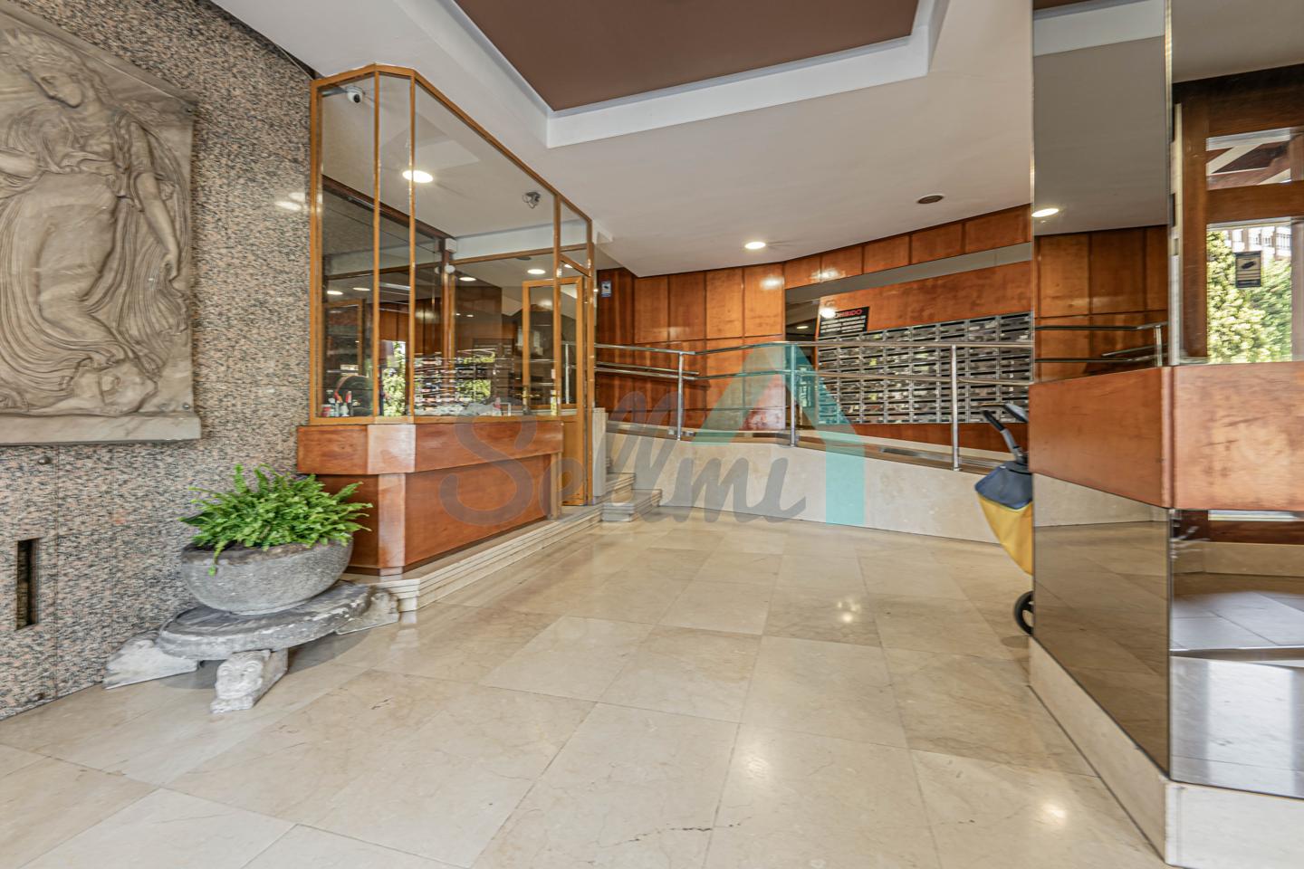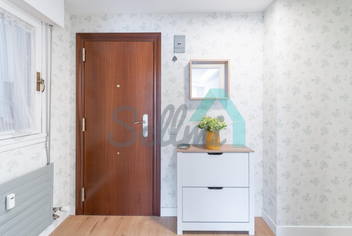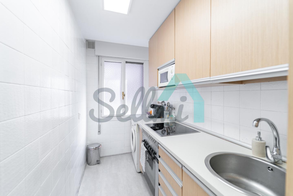 Dispone de calefacción central con contador individual, armarios empotrados, ventanas de madera, suelos de tarima y gres, puerta de seguridad, videoportero, etc. Es posterior y muy luminoso, con orientación sur y vistas a amplio patio de manzana.
