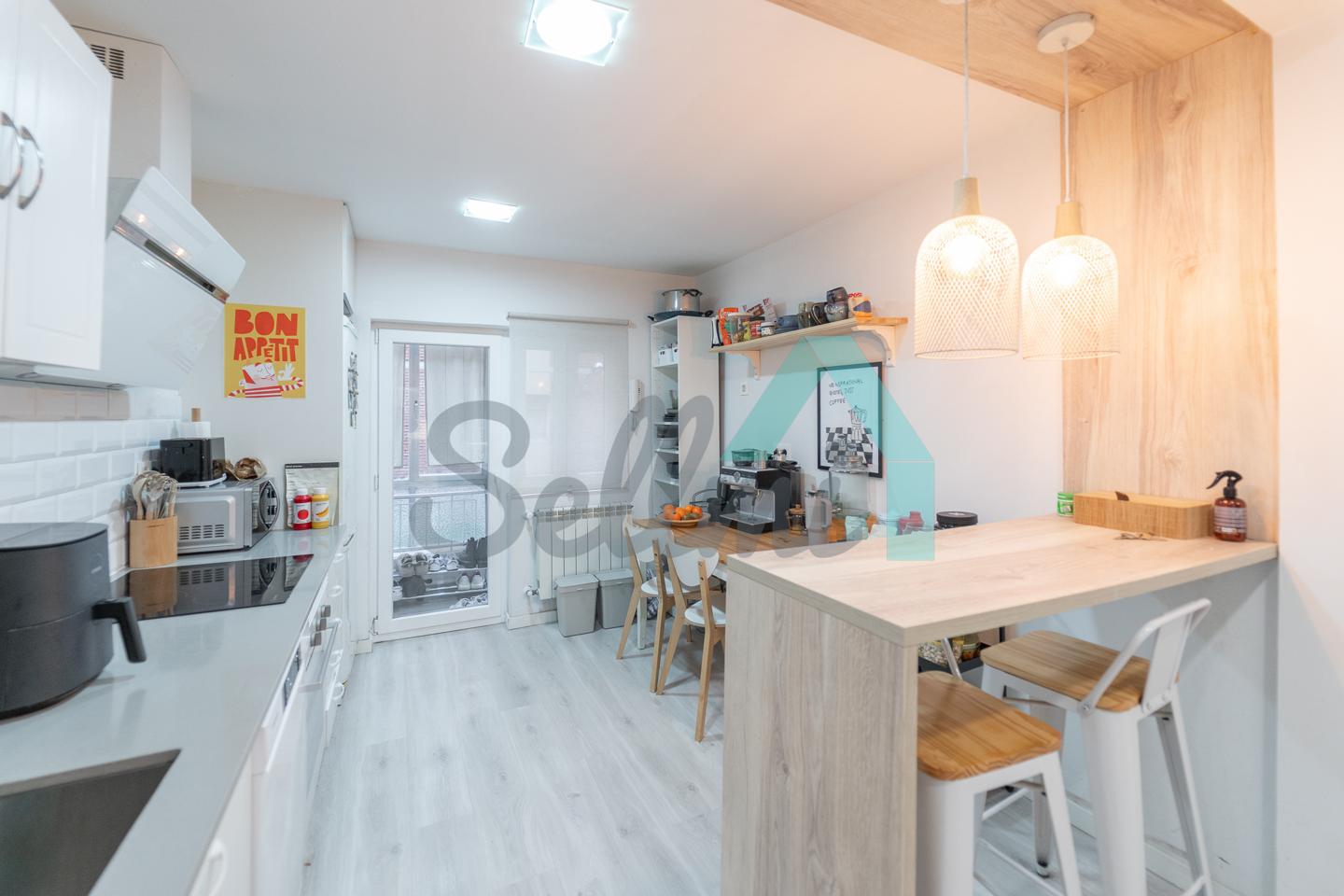 Dispone de suelos de tarima y gres, calefacción individual de gas ciudad, ventanas de PVC con doble acristalamiento, puerta de seguridad, etc.