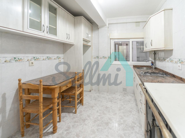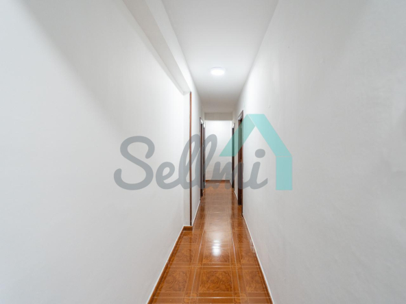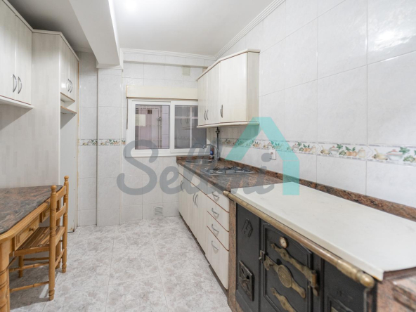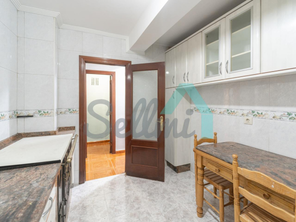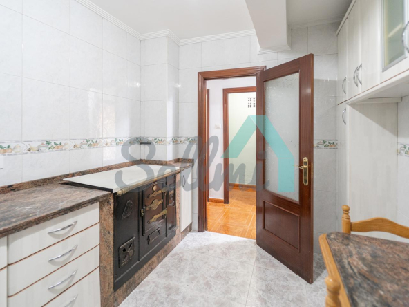 Dispone de suelos de gres, ventanas de aluminio con doble acristalamiento, agua caliente y cocina con gas natural, puerta de seguridad, etc. No tiene calefacción.