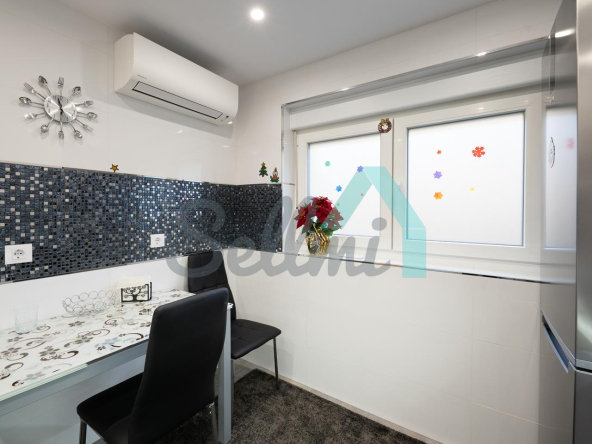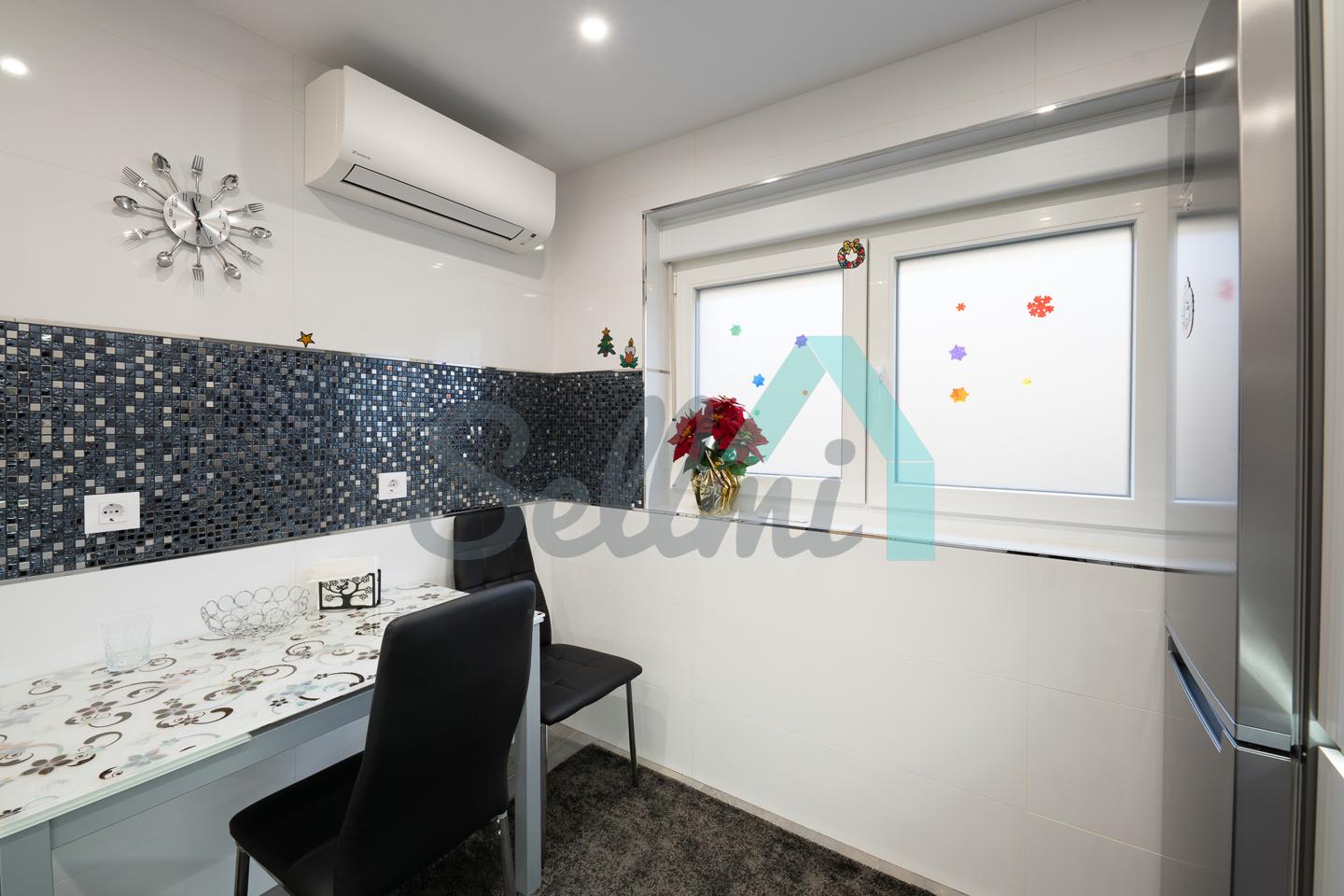 La vivienda, que ha sido totalmente reformada, tiene una superficie construida de 78 m² distribuidos en hall de entrada, salón, cocina amueblada y equipada, despensa, tres habitaciones y un baño completo. Plaza de garaje incluida en el precio. Además, el edificio cuenta con aparcamiento privado en el exterior.