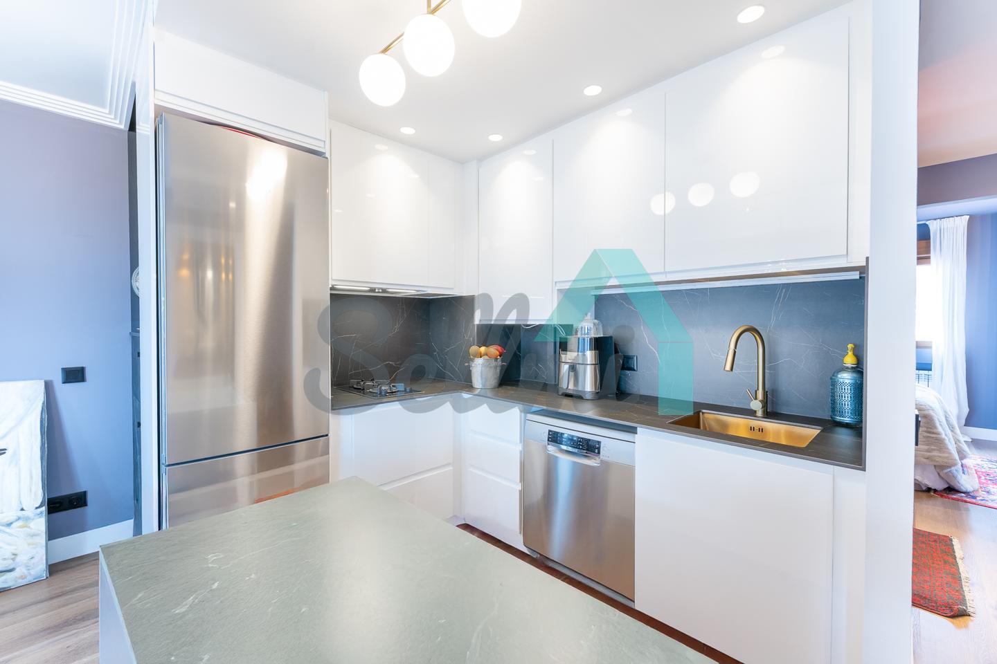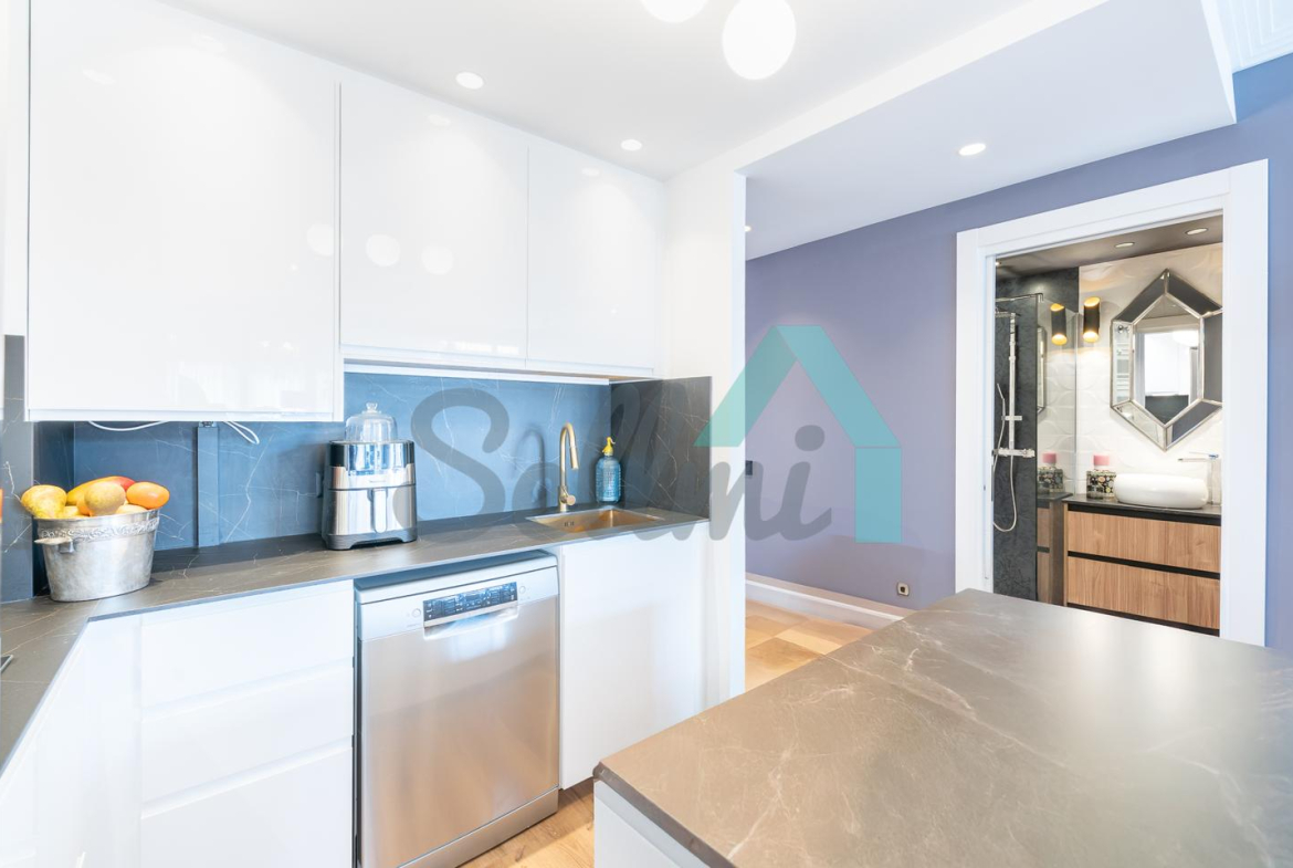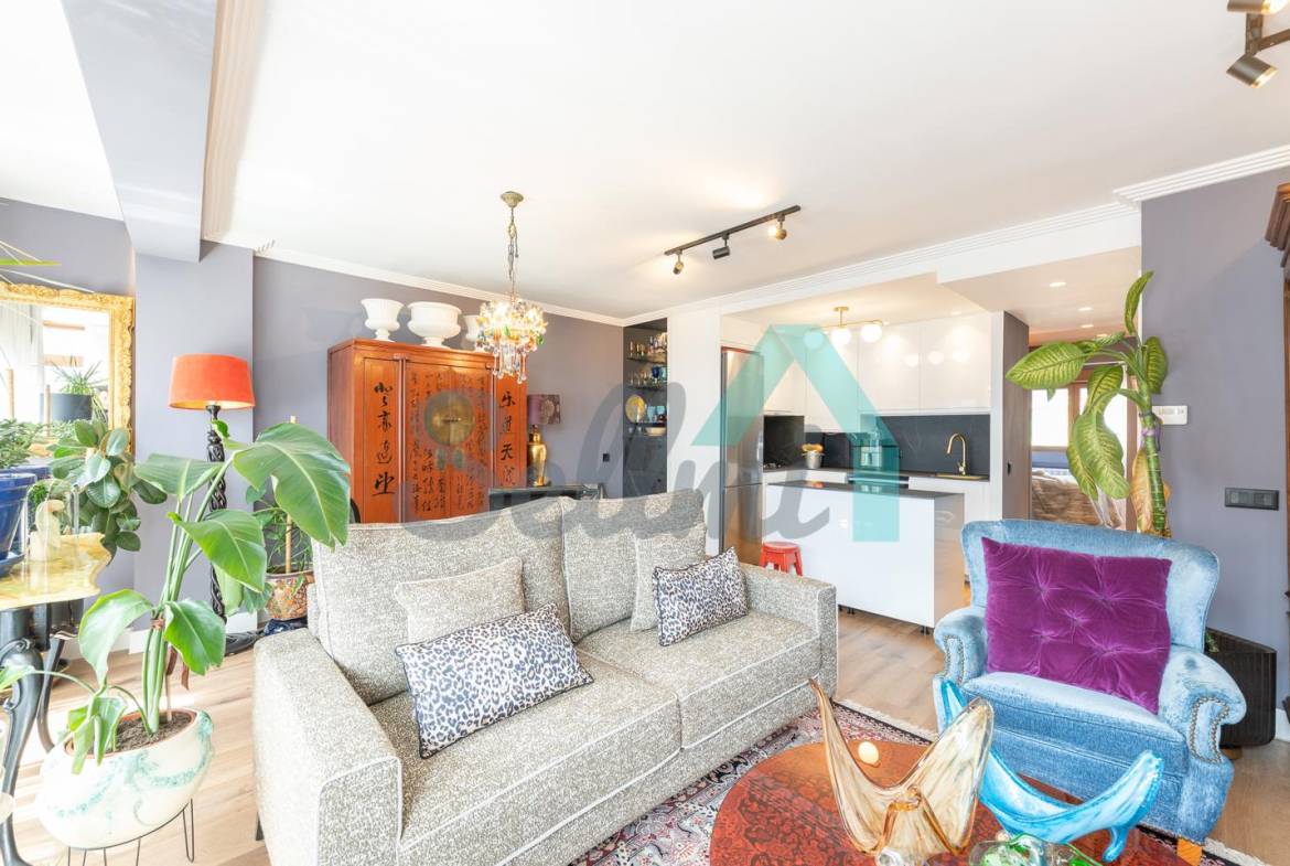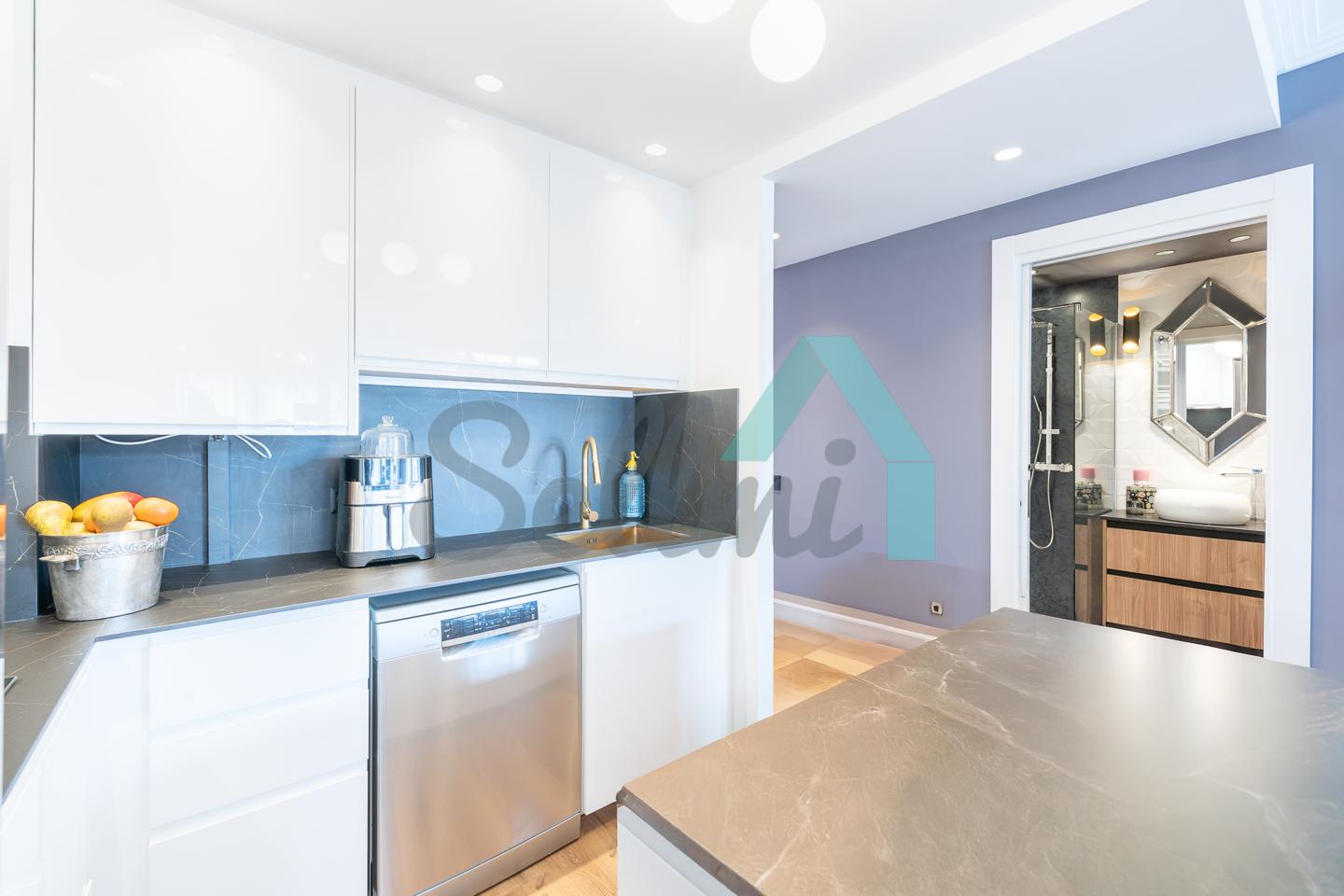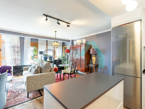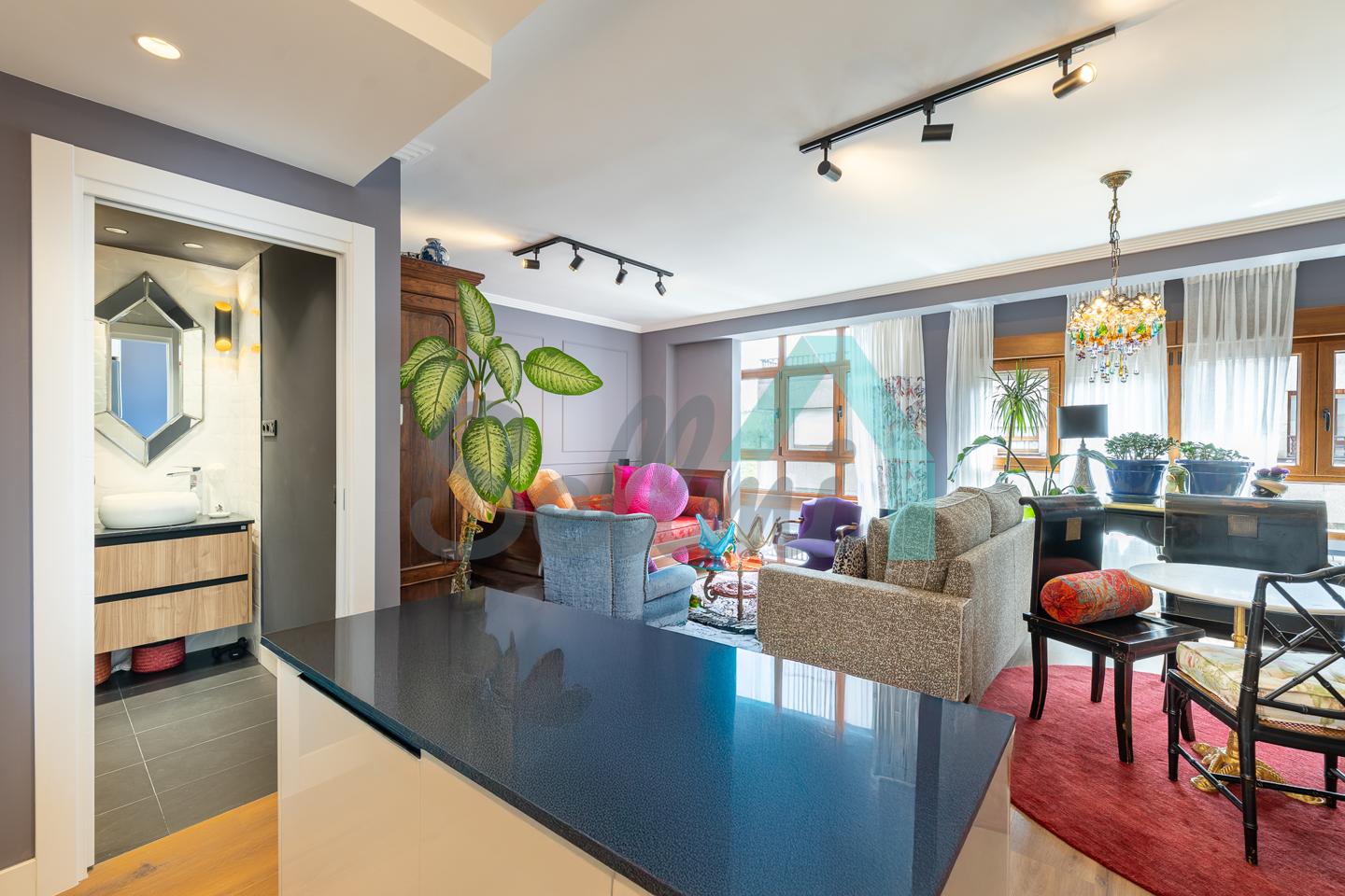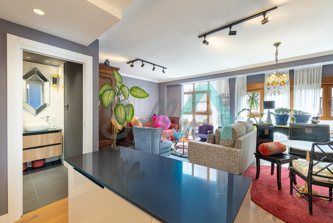 La vivienda, que ha sido reformada integralmente hace cuatro meses, tiene una superficie construida de 80 m² (69 m2 útiles) distribuidos en hall de entrada, salón comedor con cocina amueblada y equipada, una habitación y dos baños completos. Trastero abuhardillado de 3 m2 incluido en el precio.
