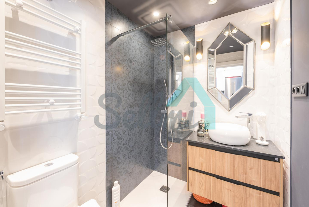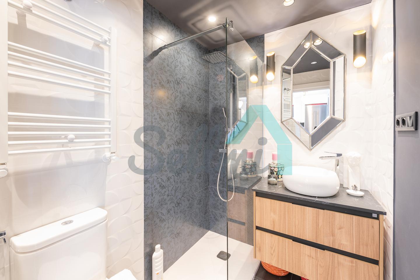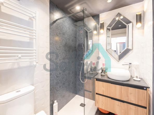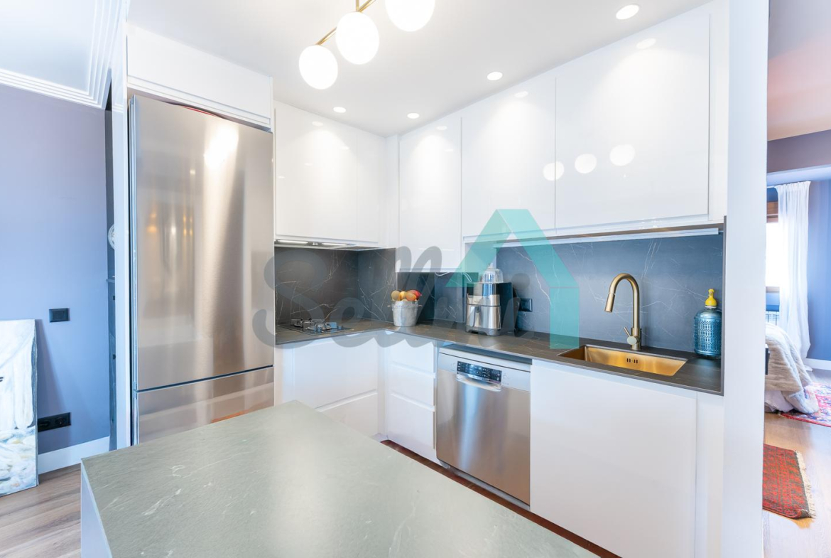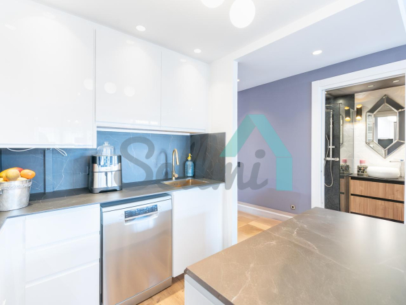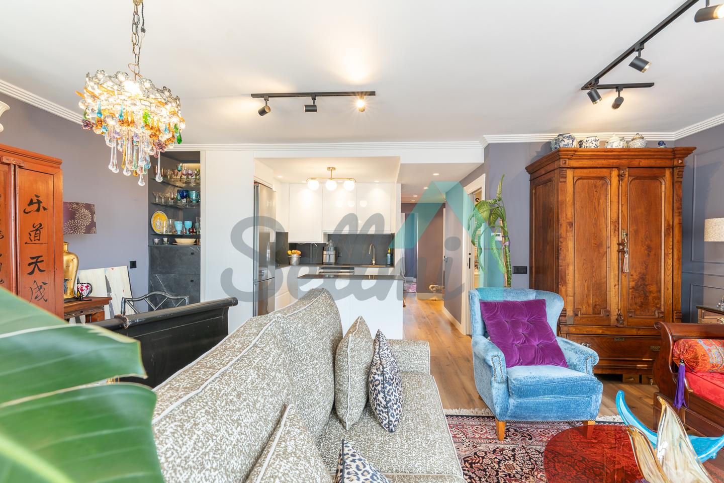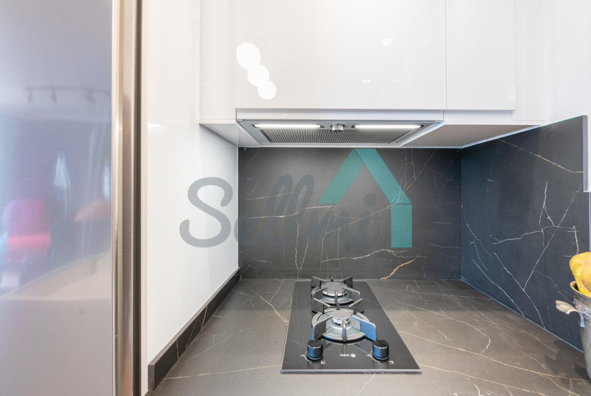 La vivienda, que ha sido reformada integralmente hace cuatro meses, tiene una superficie construida de 80 m² (69 m2 útiles) distribuidos en hall de entrada, salón comedor con cocina amueblada y equipada, una habitación y dos baños completos. Trastero abuhardillado de 3 m2 incluido en el precio.