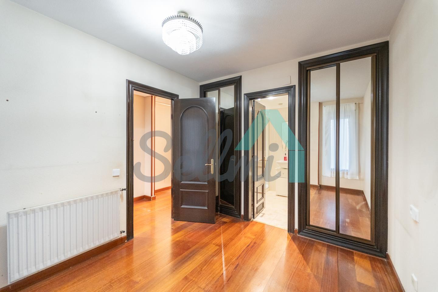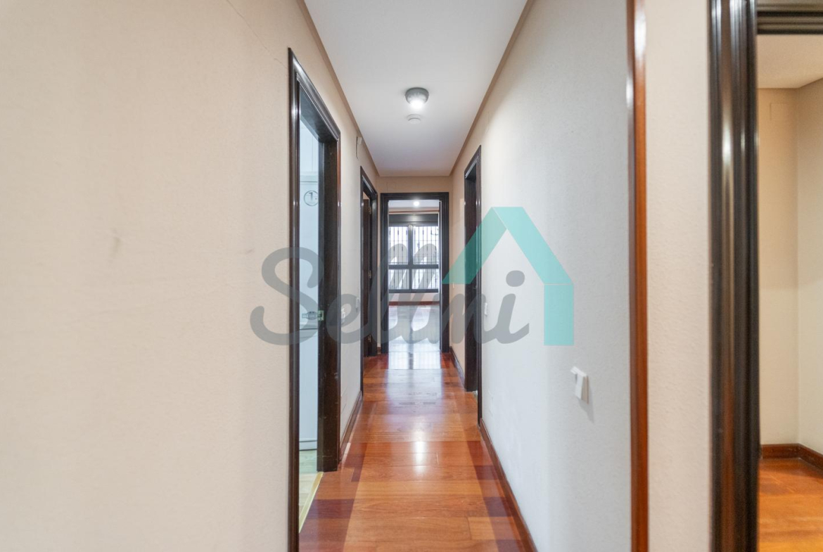 Dispone de calefacción central, suelos de parquet y gres, armarios empotrados, ventanas de doble acristalamiento, puerta de seguridad, etc.
