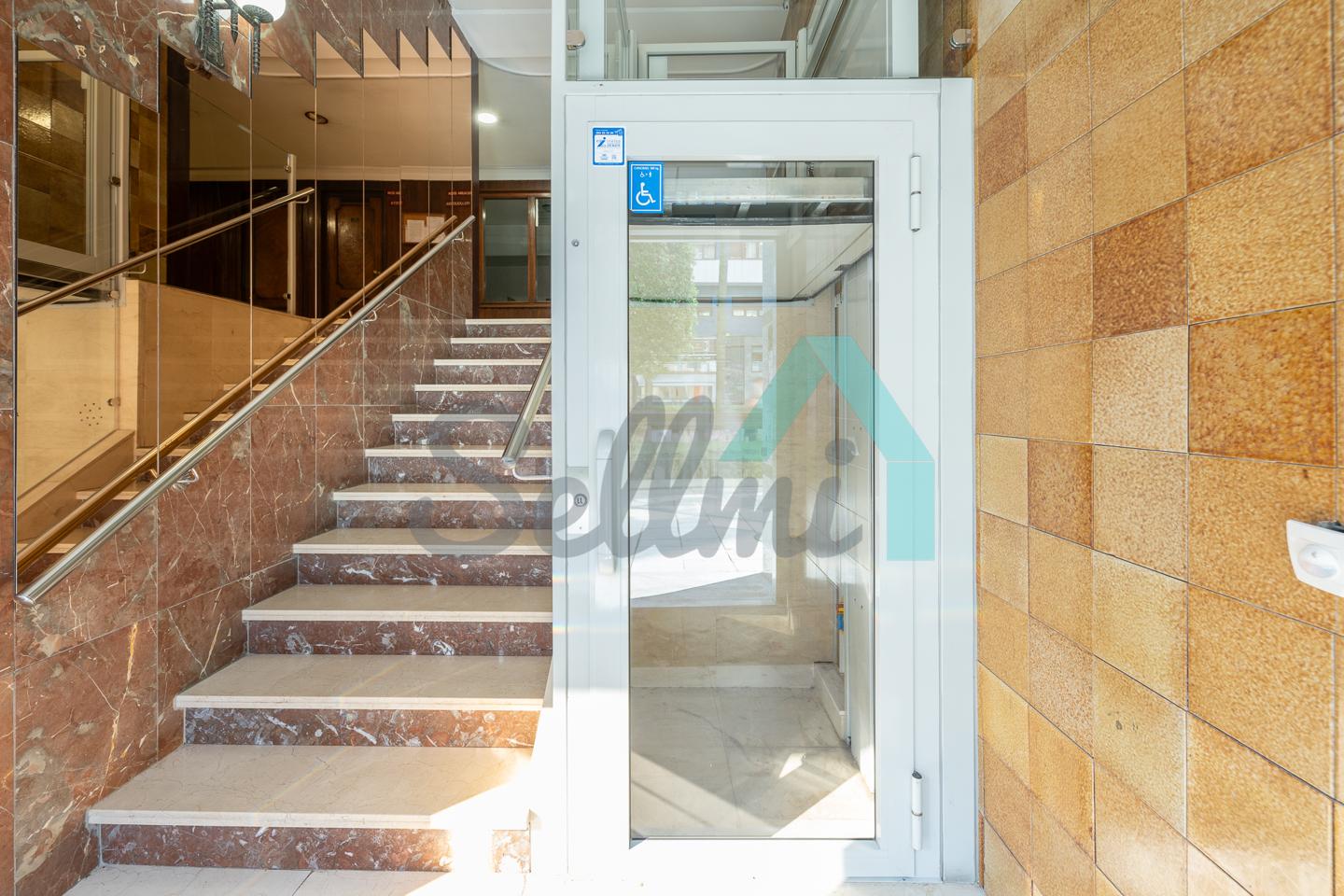 Piso en venta en la zona de Milán-Elorza, Oviedo. Se ubica en la primera planta de un edificio construido en 1977, con salvaescaleras, ascensor, portero físico y servicios centrales, situado en una calle peatonal y rodeado de todo tipo de servicios.