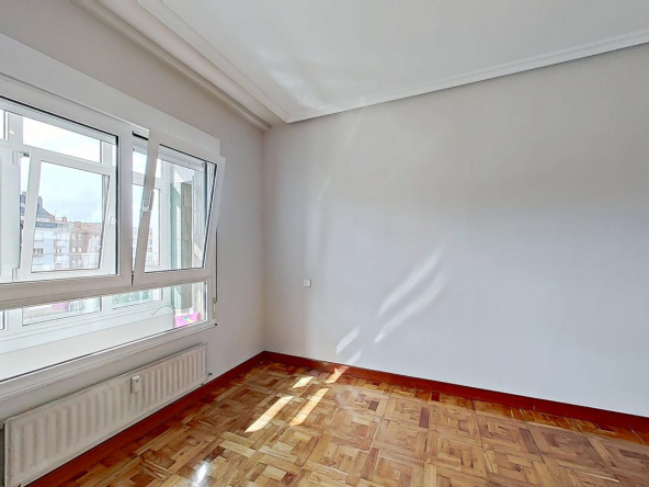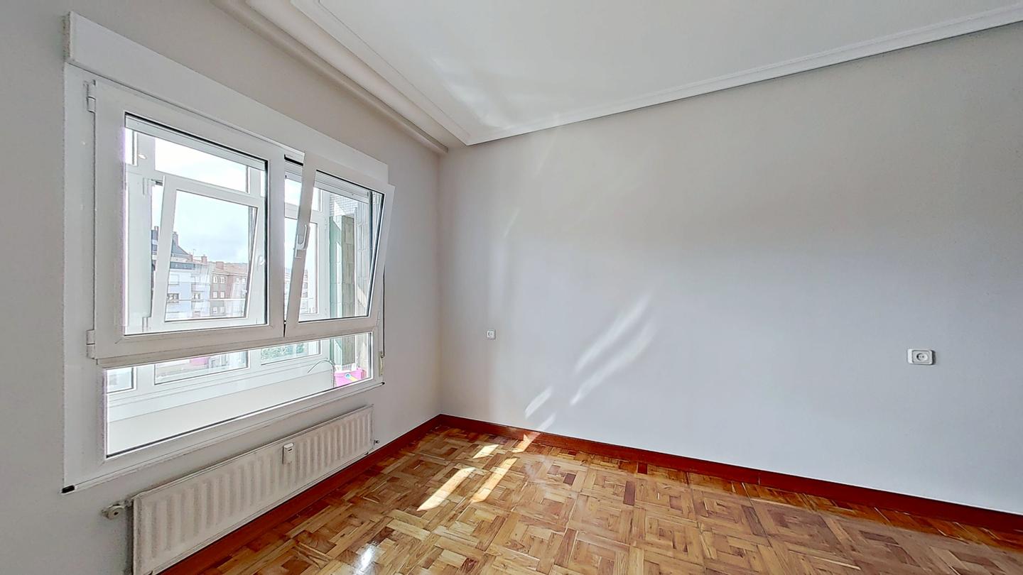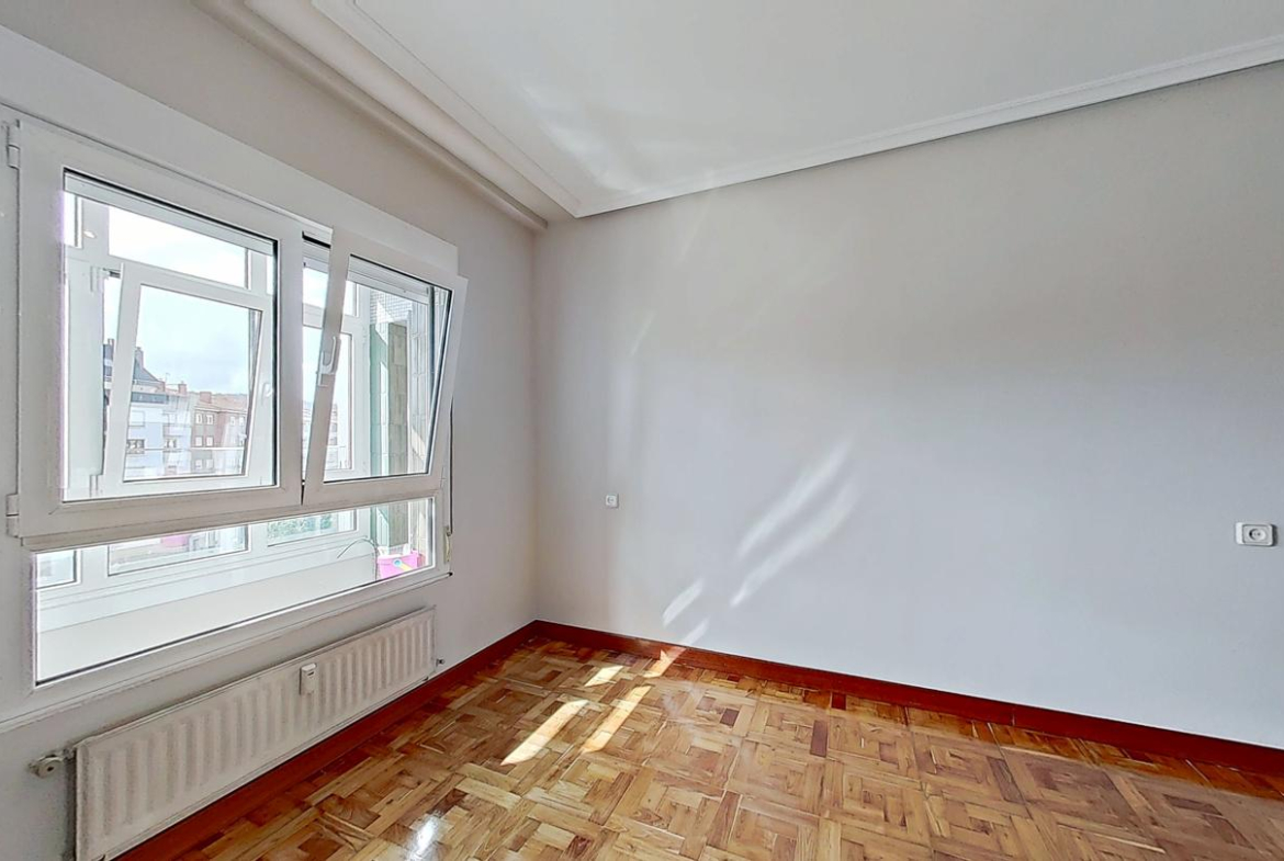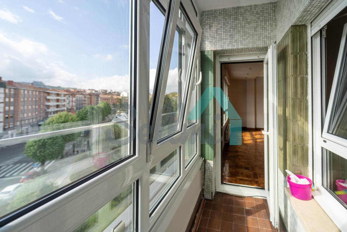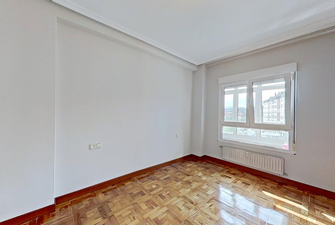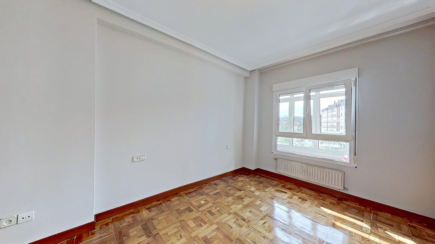 Piso en venta situado en la zona Palacio de los Deportes, Oviedo. Está ubicado en la cuarta planta de un edificio construido en 1978, sin barreras arquitectónicas y que cuenta con servicios centrales y dos ascensores. El edificio cuenta con fachada ventilada y portal renovado.