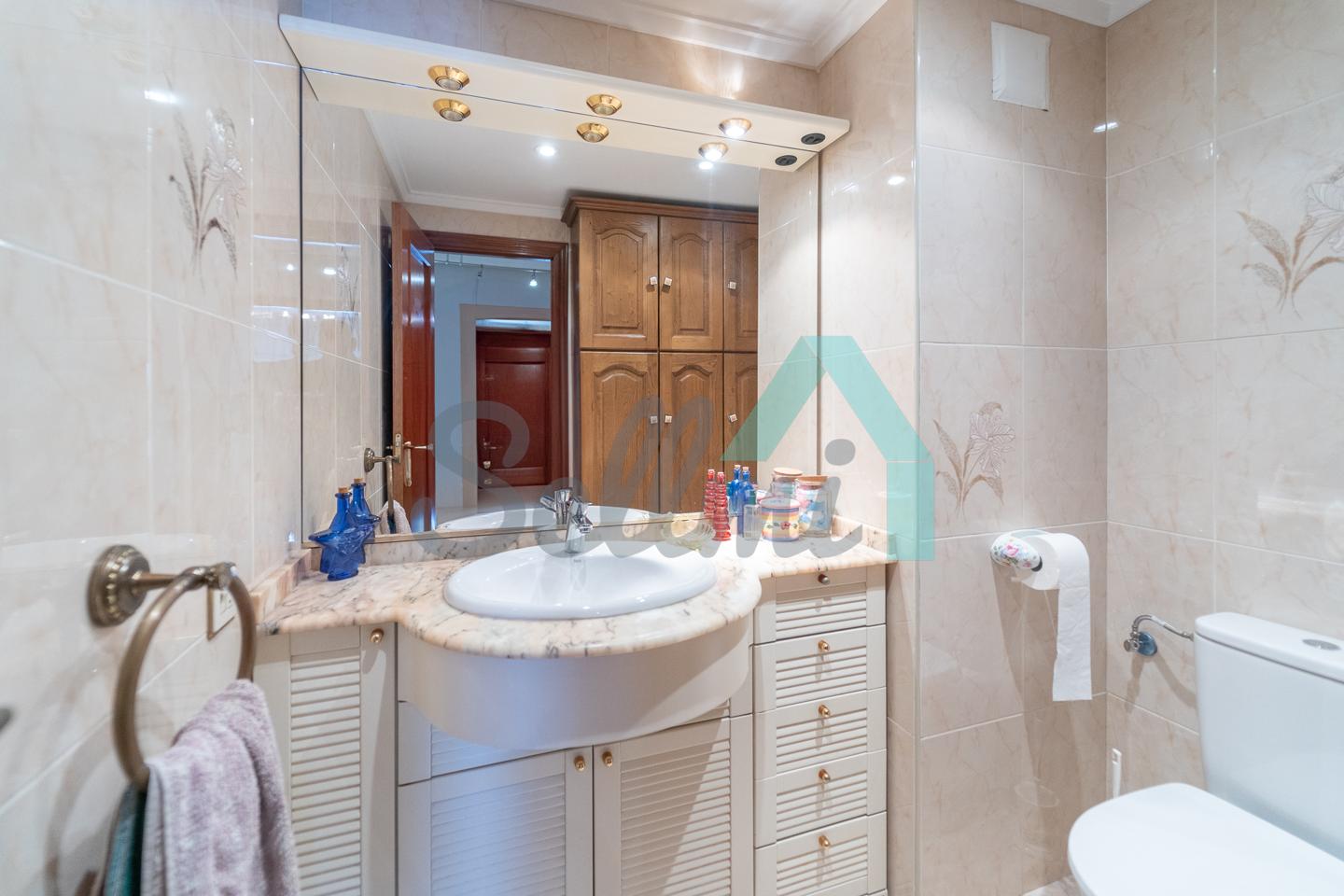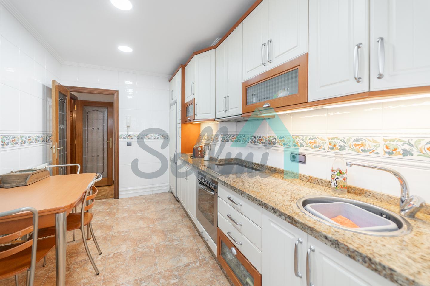 Dispone de suelos de parqué y gres, ventanas de PVC con doble acristalamiento, calefacción central con contador individual (caldera de gas natural), armarios empotrados, puerta de seguridad, etc. Es exterior y muy luminoso, con orientación sureste.