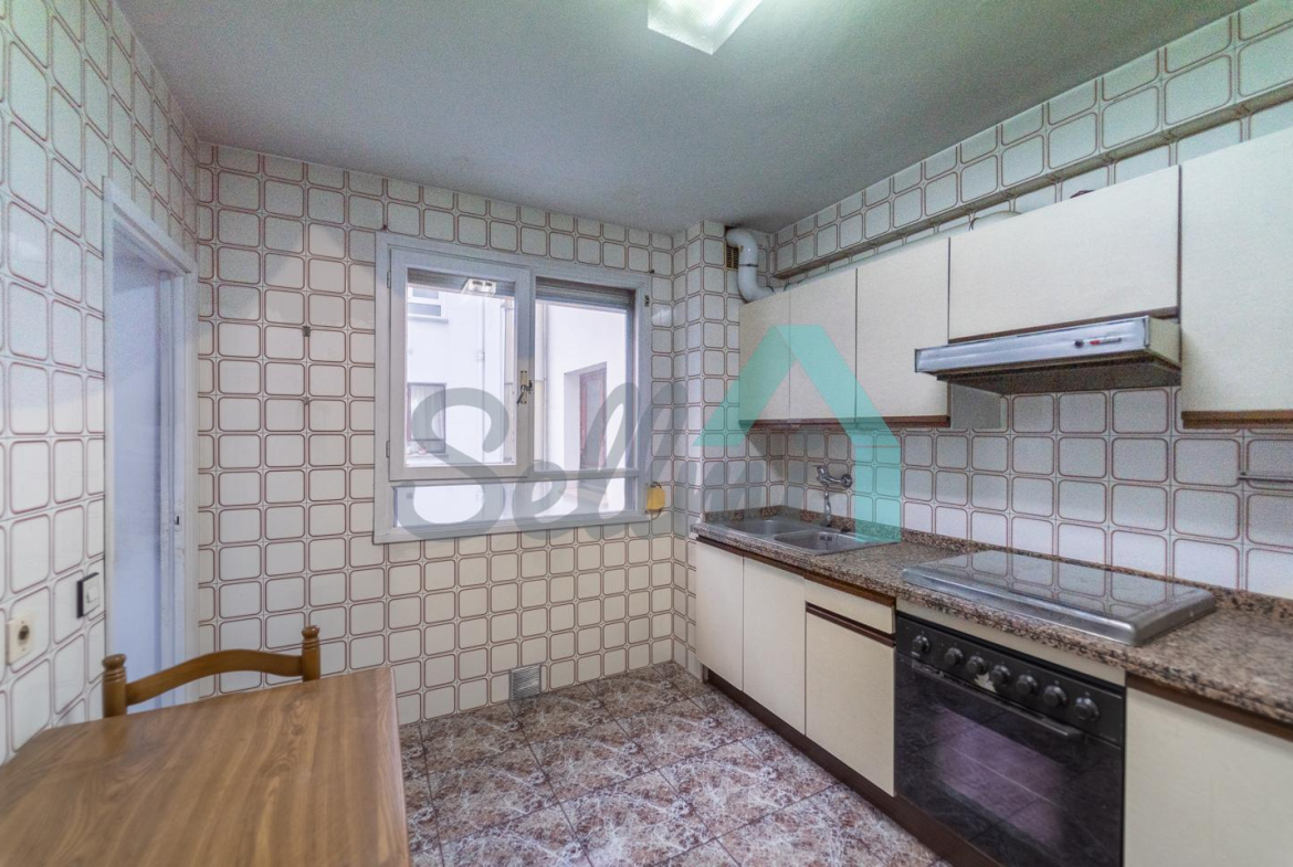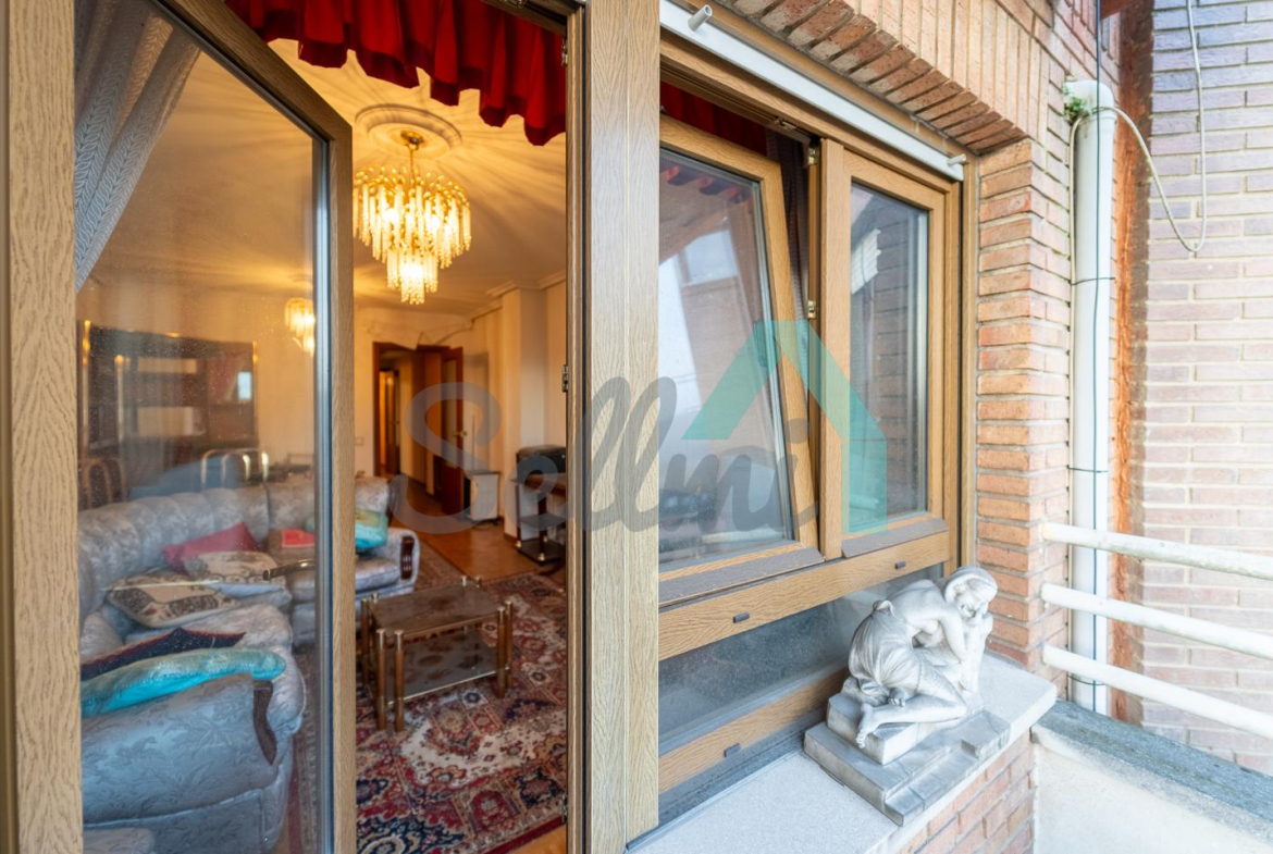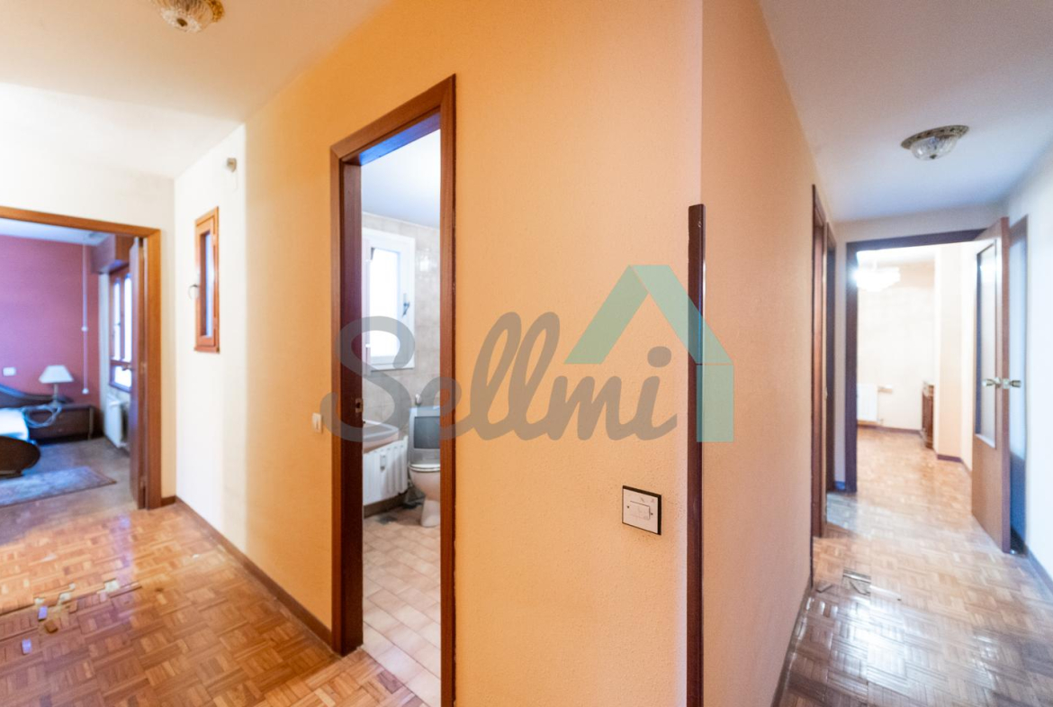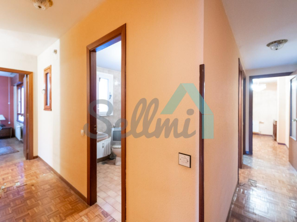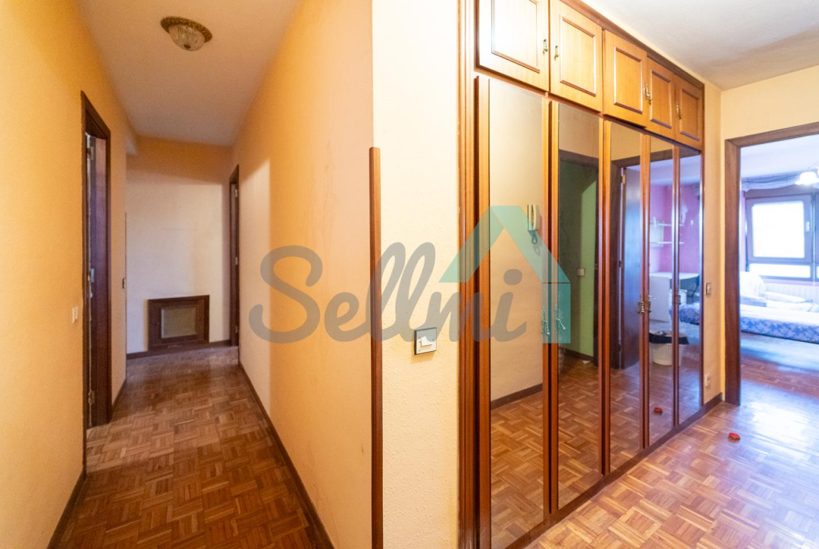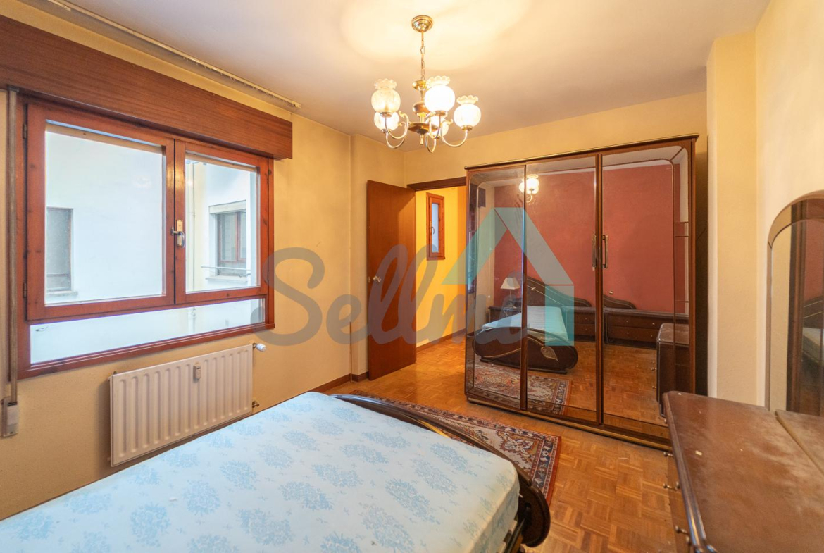 Dispone de suelos de parquet y gres, calefacción central de gasoil con contador individual, ventanas de doble acristalamiento, puerta de seguridad, etc. Es exterior y muy luminosa, con orientación este.
