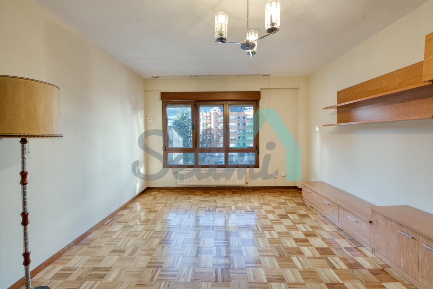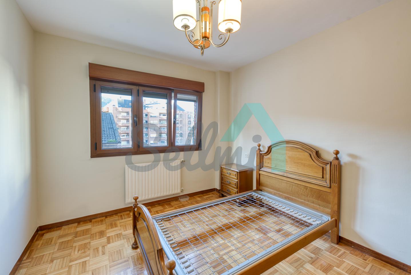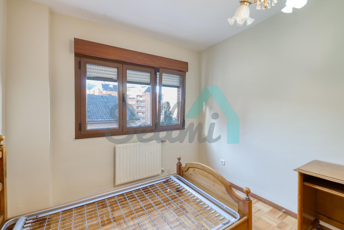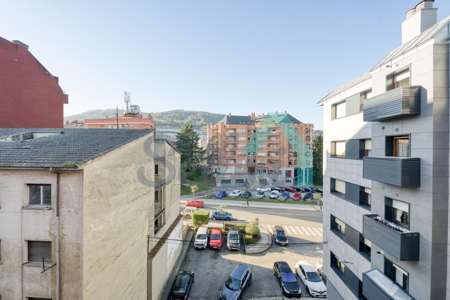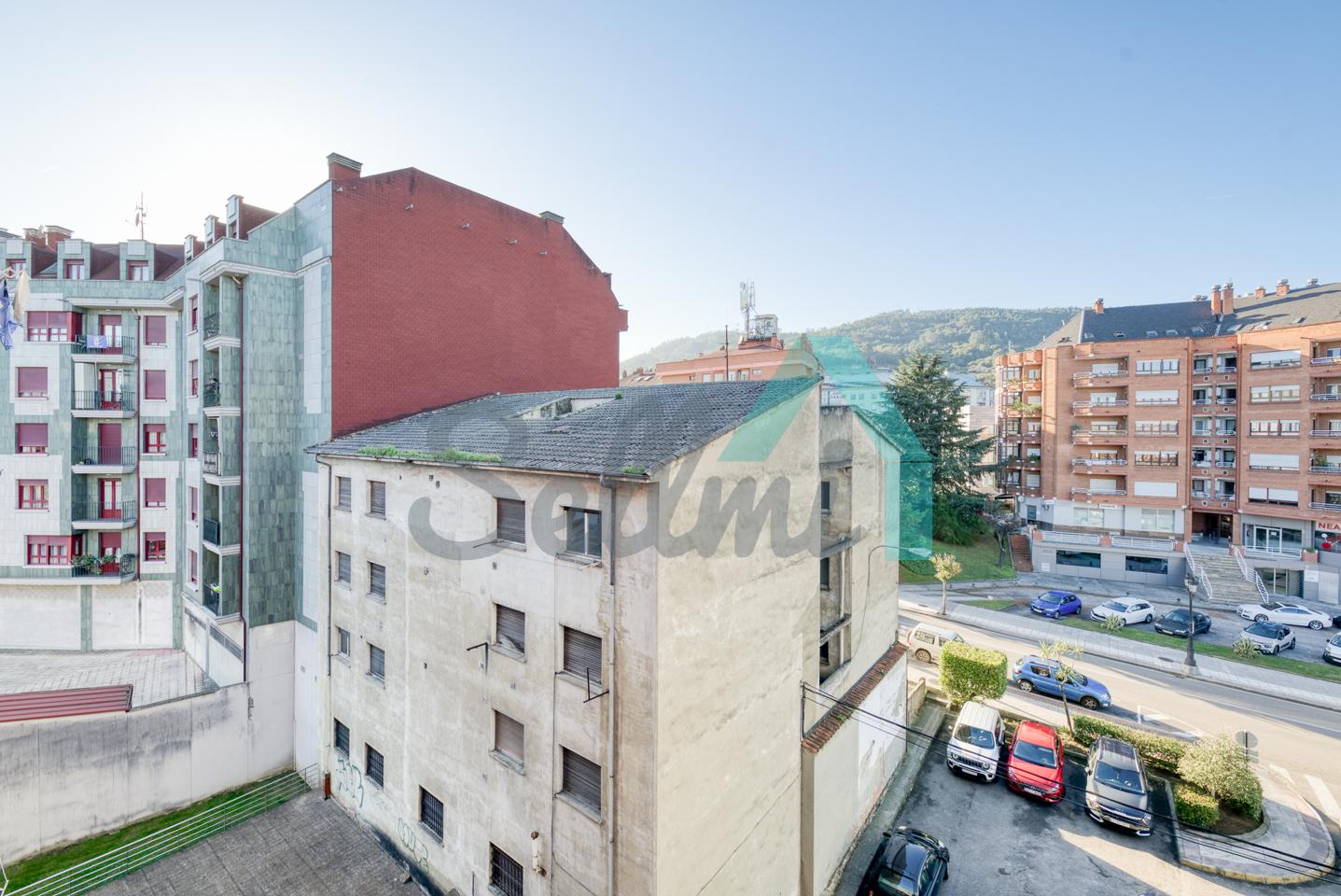 Piso en venta en La Corredoria, Oviedo. Está ubicado en la cuarta planta de un edificio construido en 1983, sin barreras arquitectónicas y que cuenta con ascensor y cuarto para guardar bicicletas. Es totalmente exterior (excepto baños) y muy luminoso, con orientación noroeste.