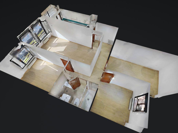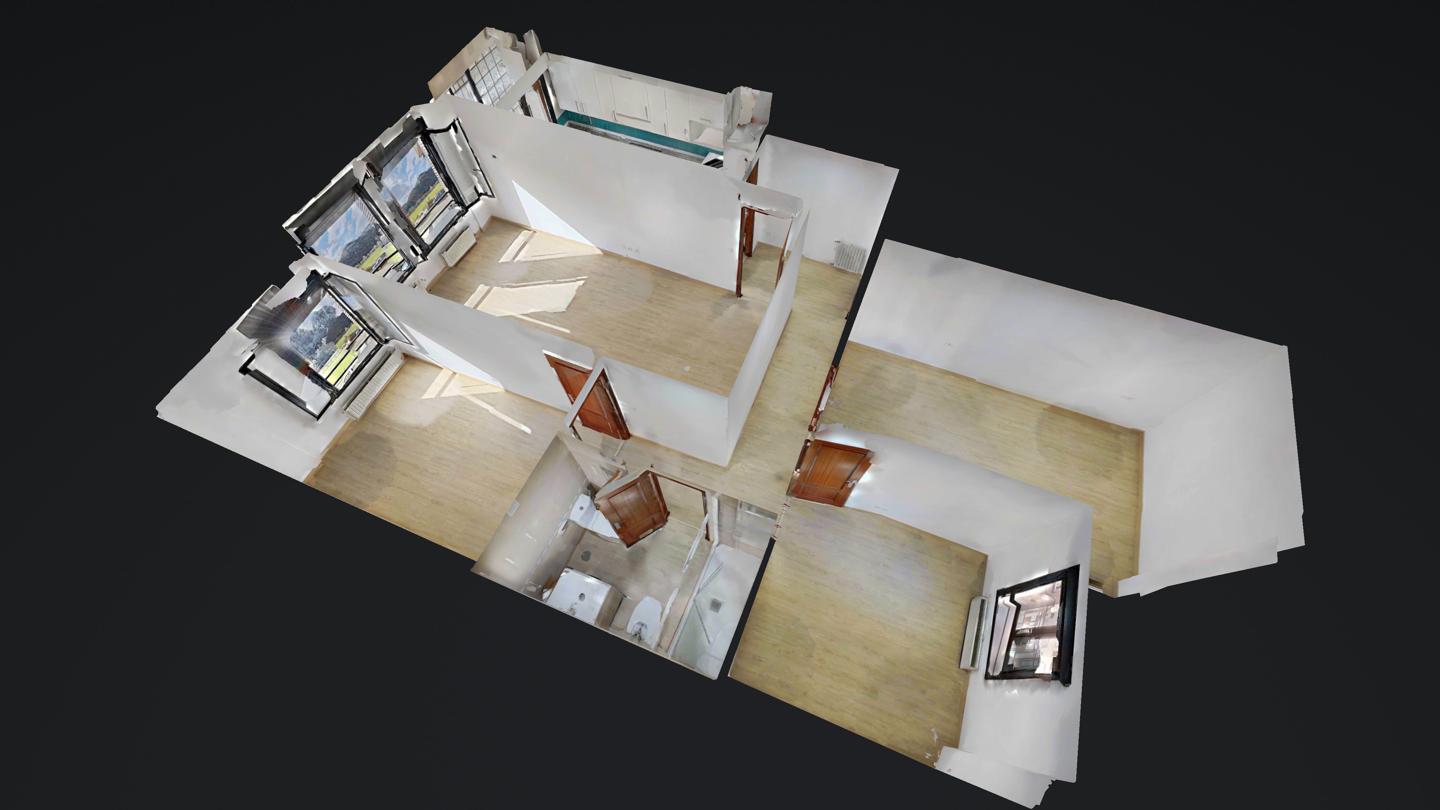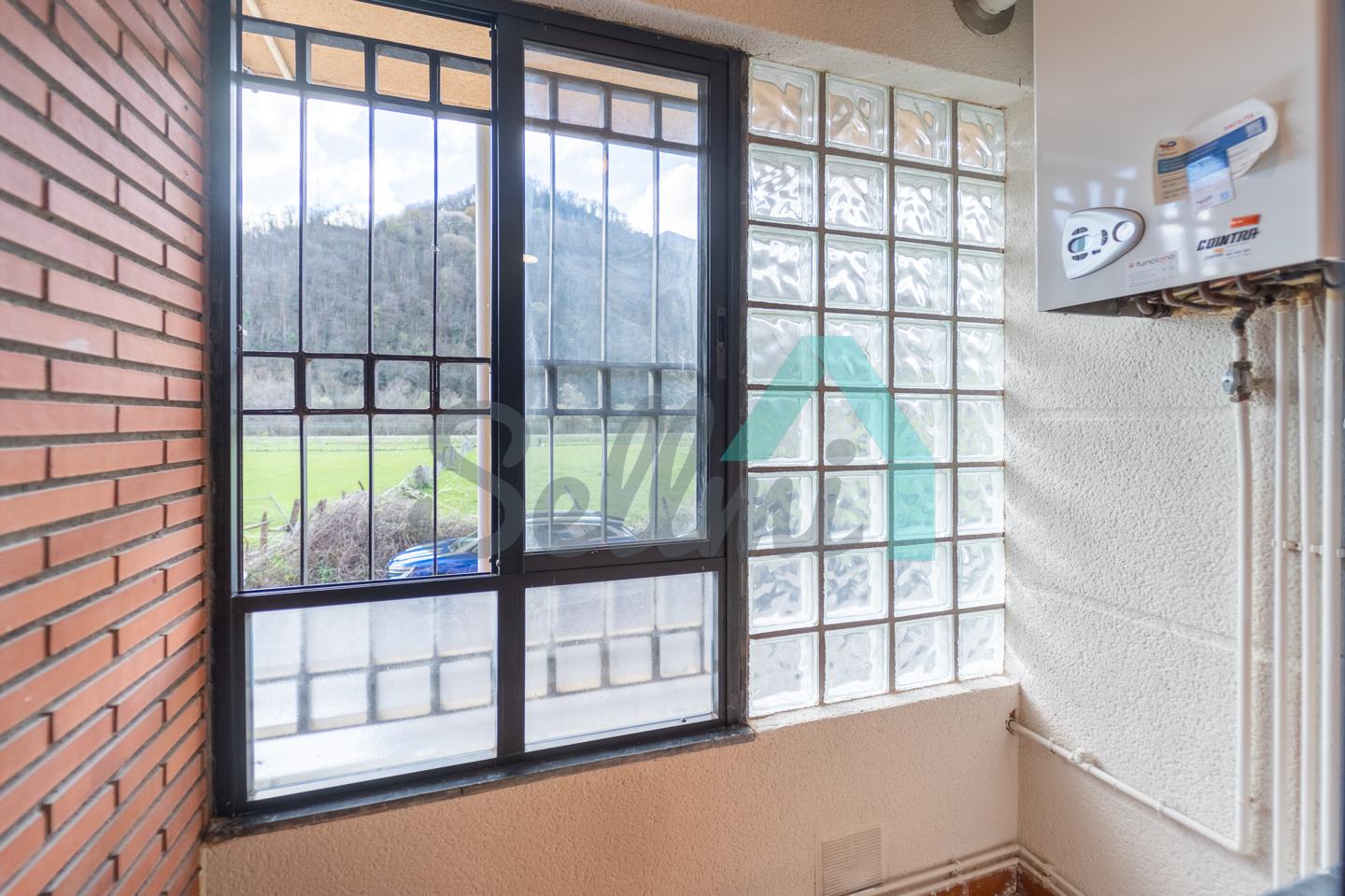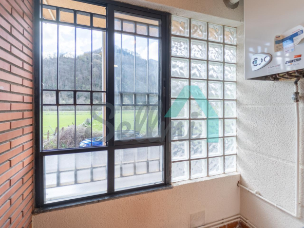 Piso en venta situado en Pola de Laviana, Asturias. Está ubicado en la planta baja de un edificio construido en 1993, sin ascensor (está prevista la instalación del ascensor y la derrama está ya pagada). Es exterior y muy luminoso, con orientación suroeste.