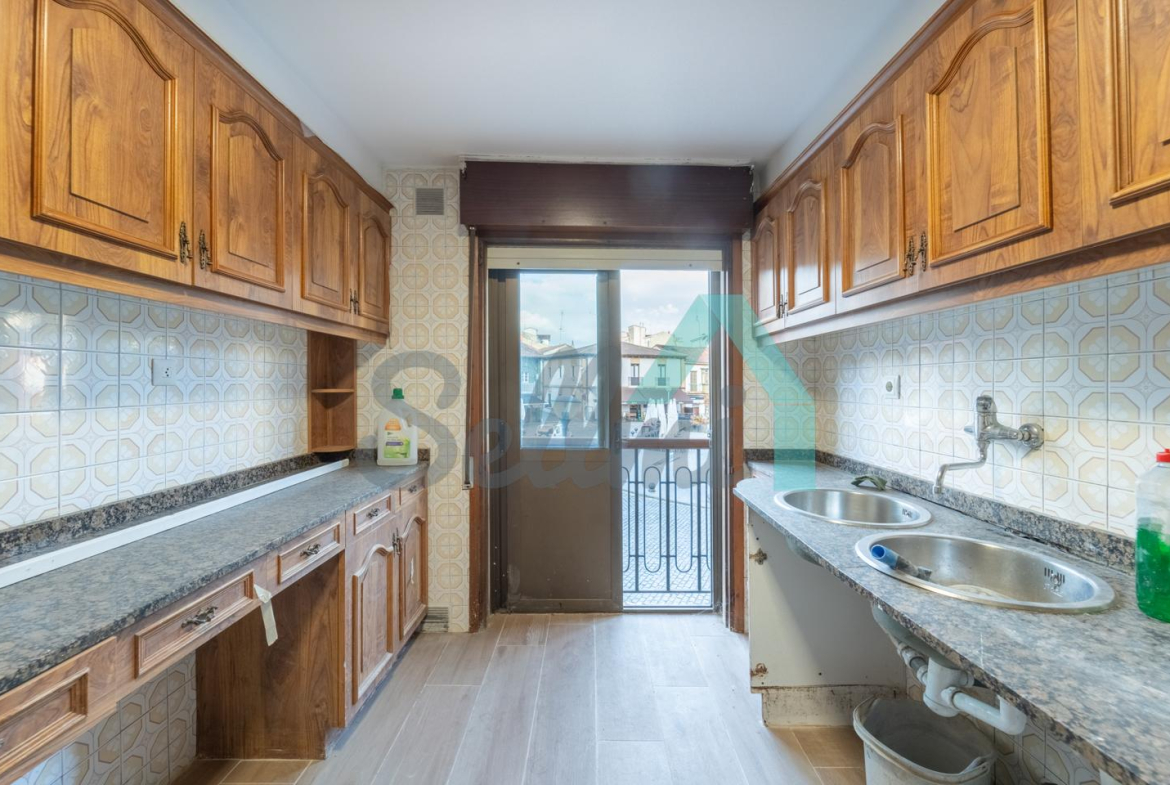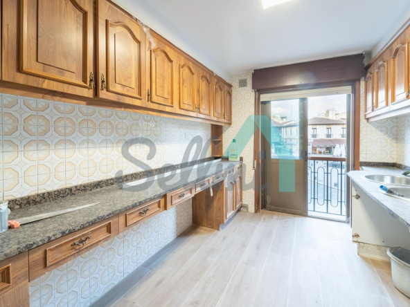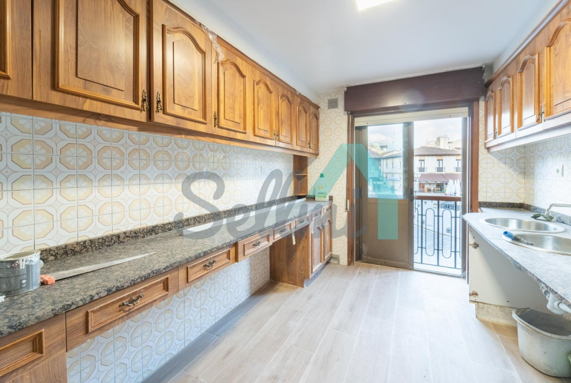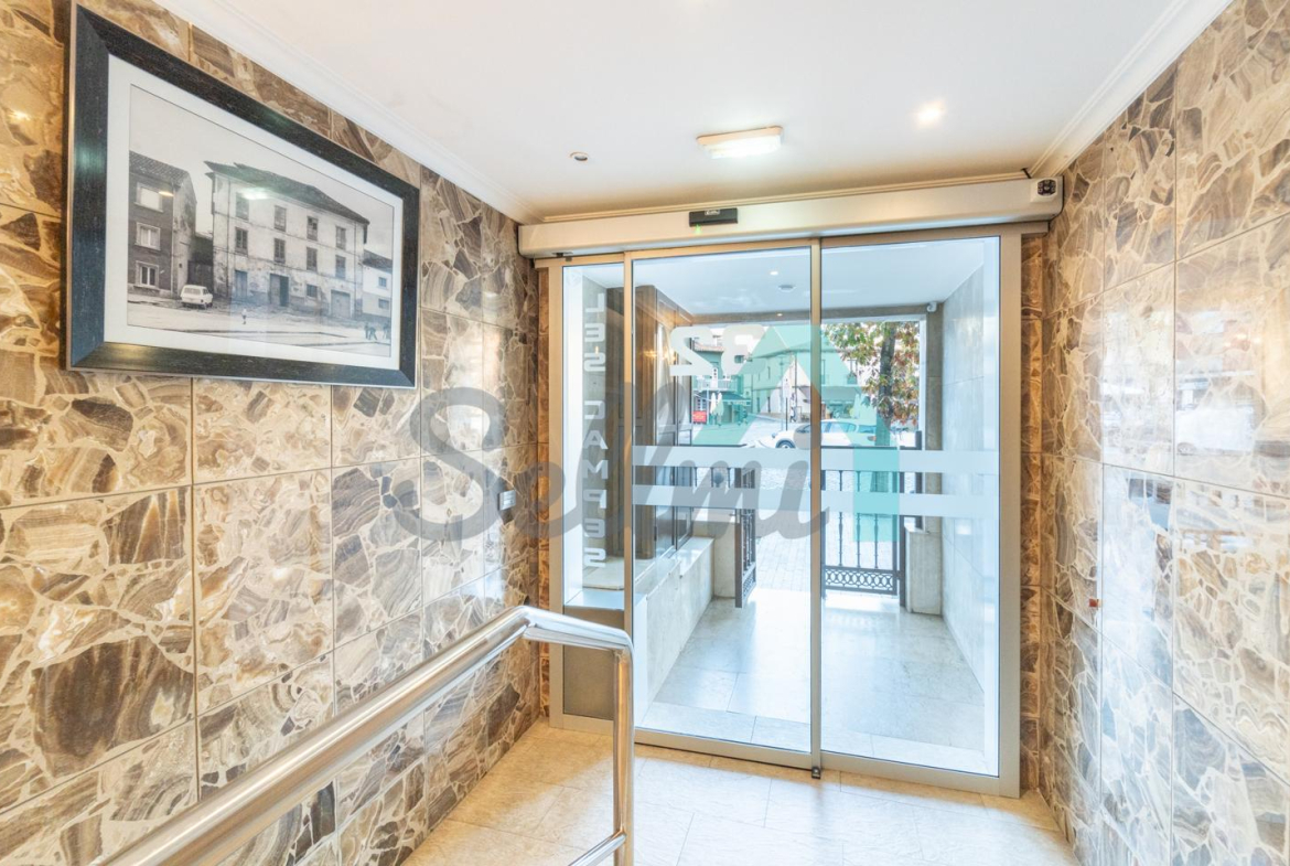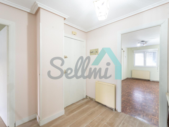 Piso en venta situado en la Plaza Les Campes, de Pola de Siero (Asturias). Se encuentra en la primera planta de un edificio construido en 1979, sin barreras arquitectónicas y que cuenta con ascensor. Es exterior y muy luminoso, con orientación noreste.