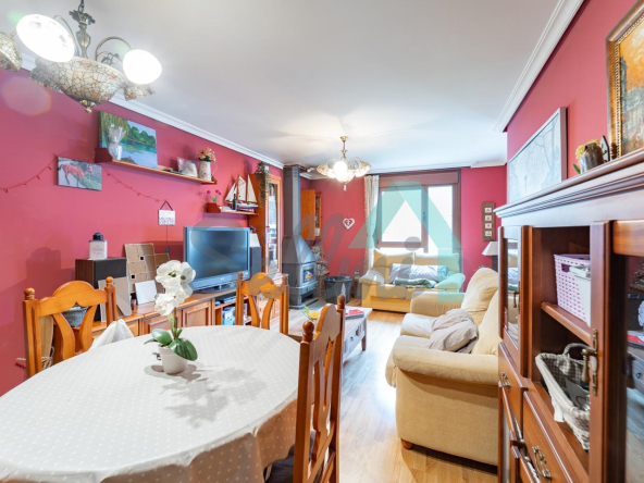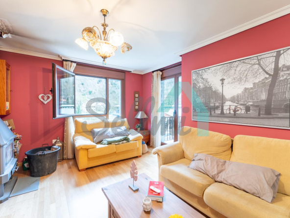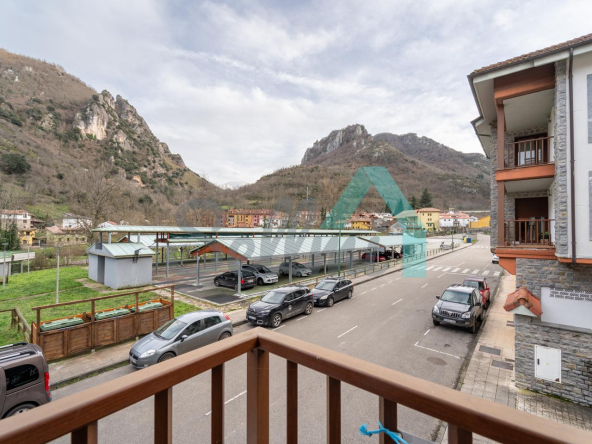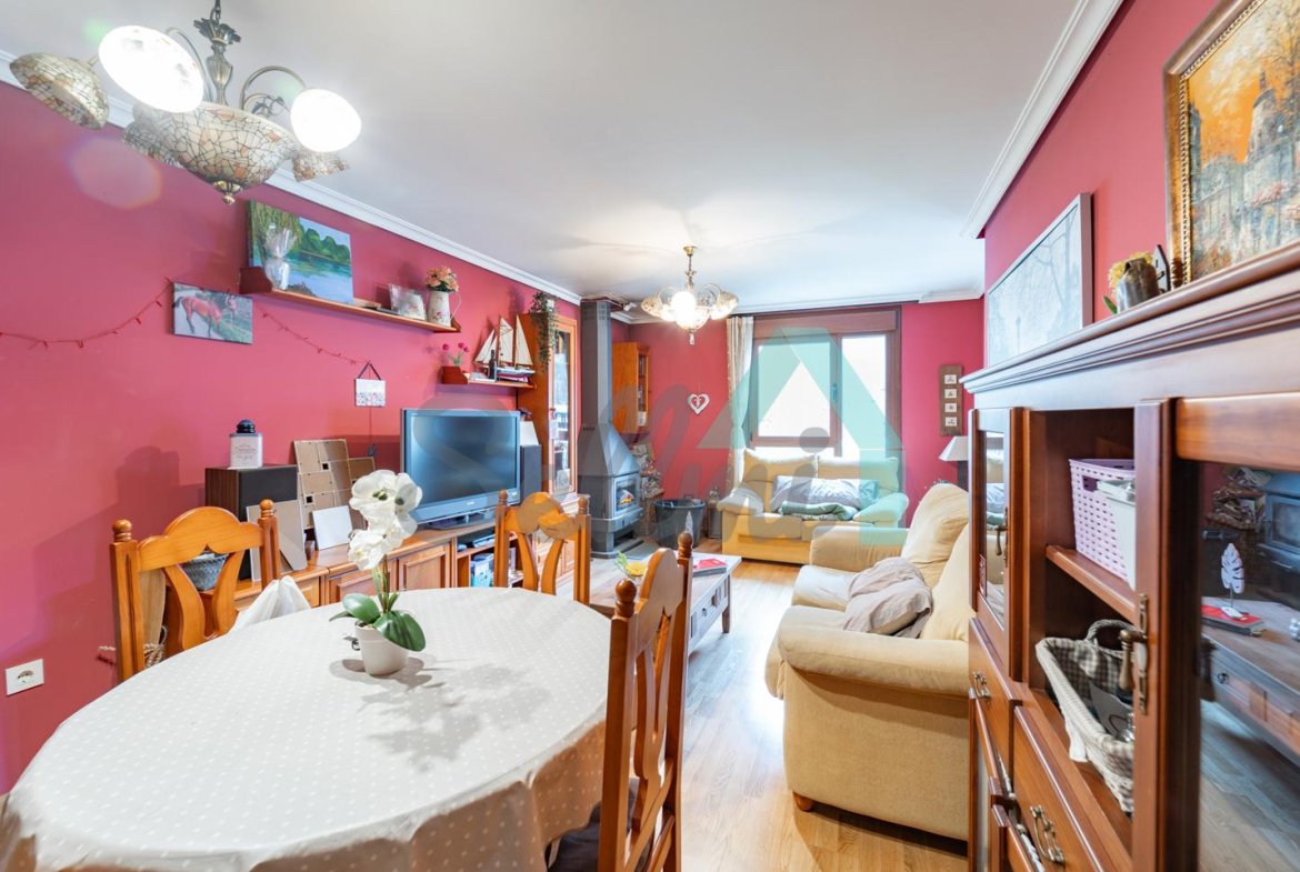 Piso en venta en Pola de Somiedo, Asturias, junto al mercado y la piscina municipal. Se ubica en la primera planta de un edificio construido en 2009, sin barreras arquitectónicas y que cuenta con ascensor. Es exterior y muy luminoso, con orientación este.