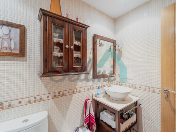 Dispone de suelos de parqué y gres, ventanas de PVC con doble acristalamiento y oscilobatientes, armarios empotrados, calefacción individual de gas natural, puerta de seguridad, videoportero, etc.